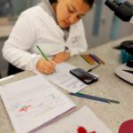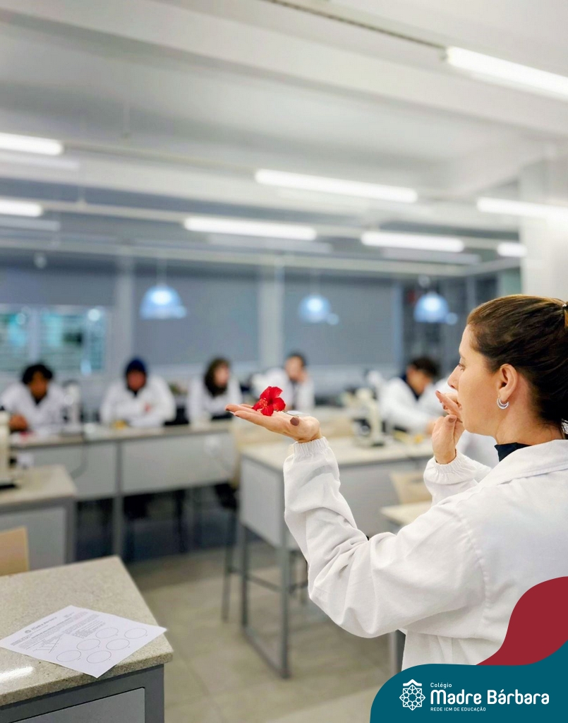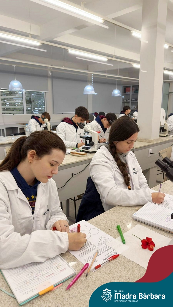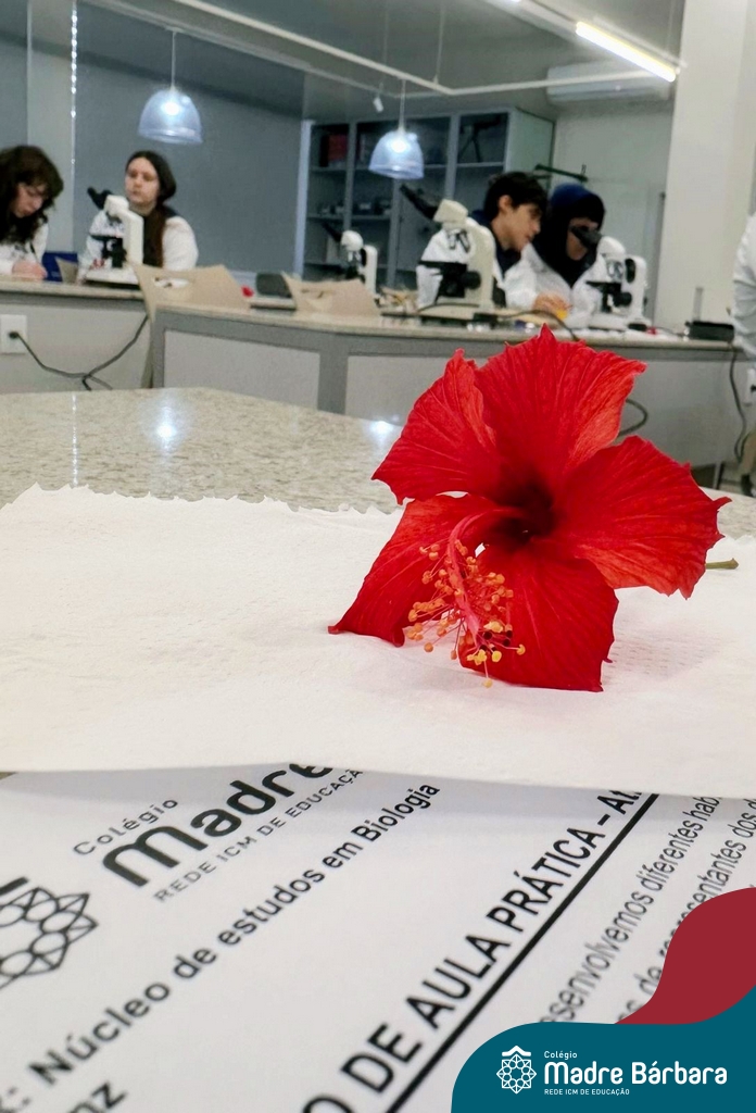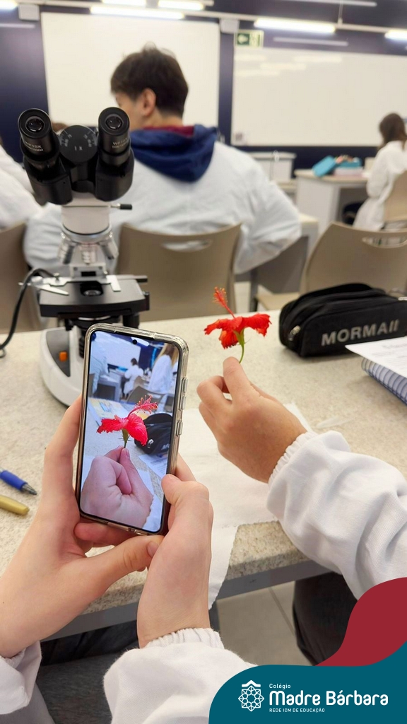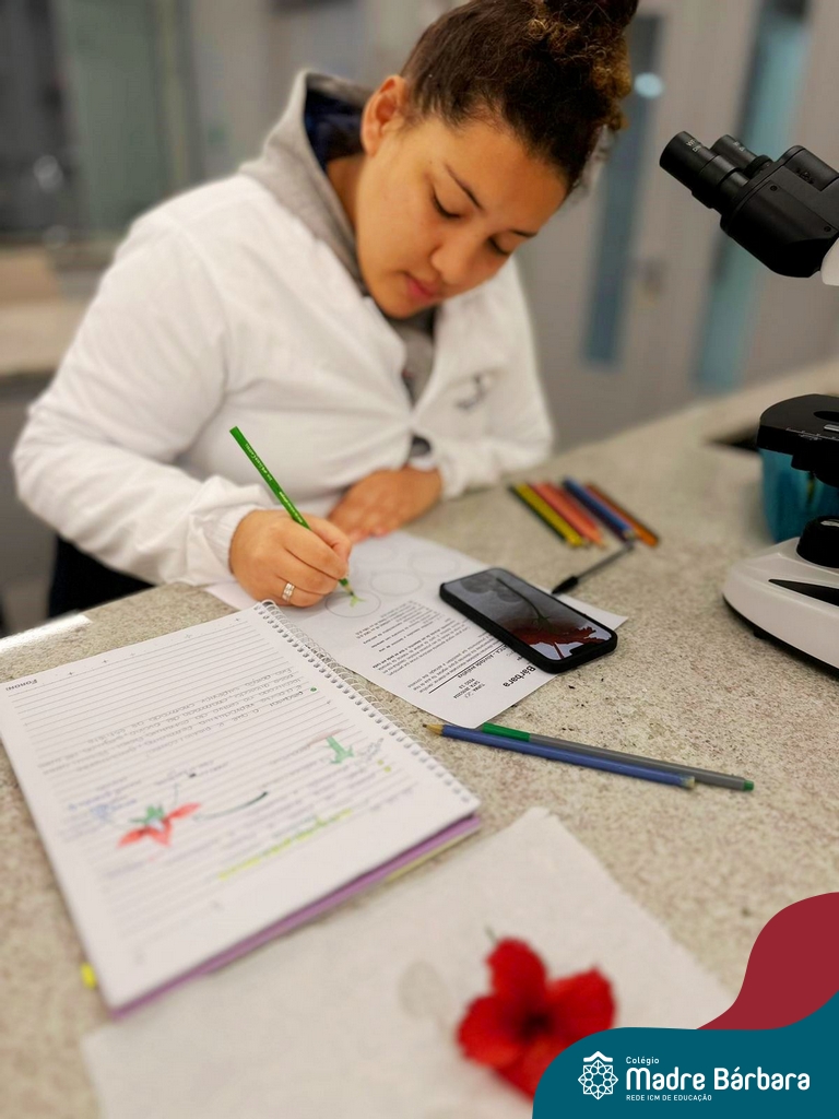 Durante as aulas de Núcleo de Estudos de Biologia, as turmas do 2º ano do Ensino Médio realizam prática de morfologia vegetal. Estames, estigmas, pólens, pétalas foram algumas das estruturas analisadas e representadas pelos estudantes. Para a Professora de Biologia Ângela Lenz, a curiosidade que desperta admiração a partir do mundo microscópico, vai muito além de proporcionar aprendizagem. É uma forma de valorizar e respeitar a vida sob todos os seus aspectos.