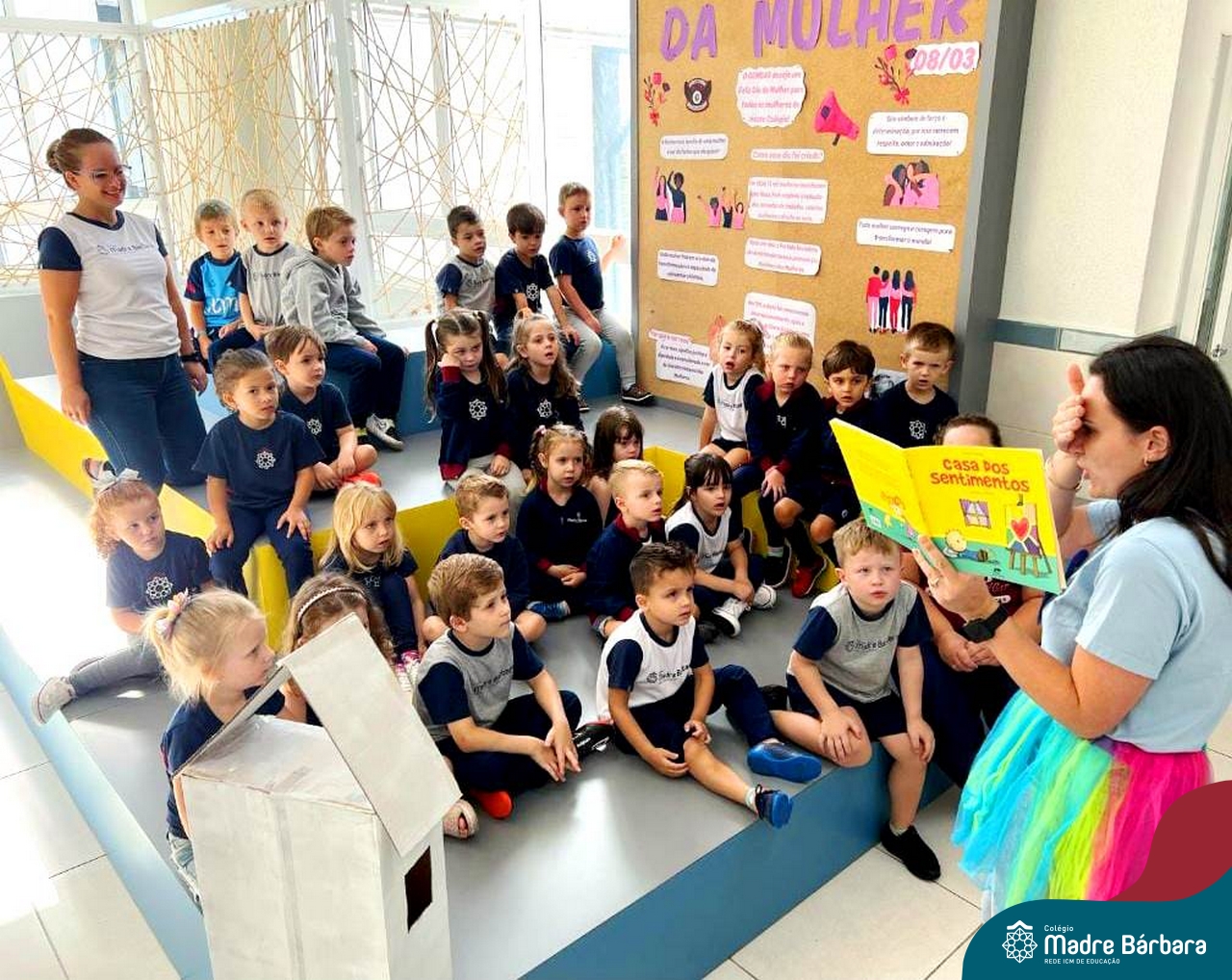Para iniciar o projeto de acolhida “Um mar de aventuras nos espera!” as turmas do Nível 4 realizaram a contação da história “A casa dos sentimentos”, de Nana Toledo. Na obra a autora explica que o coração é a casa dos sentimentos de todos nós e o quanto é importante que essa casa seja sempre visitada e bem-cuidada para ficar em harmonia.