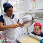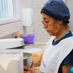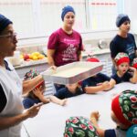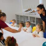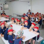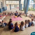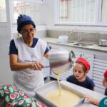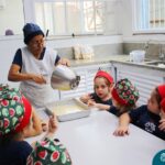Depois do chazinho de laranja, as crianças fizeram, provaram e aprovaram o bolo de laranja, acompanhados das professoras e da tia Maria, cozinheira do refeitório da Educação Infantil! Além de terem uma alimentação saudável, as crianças puderam acompanhar as etapas que envolve todo o processo do bolo. Ainda estiveram no Laboratório de Ciências, observando o mofo que criou nas cascas de laranja que haviam guardado. Curiosidade, oralidade, imaginação e protagonismo não faltaram durante essa vivência!