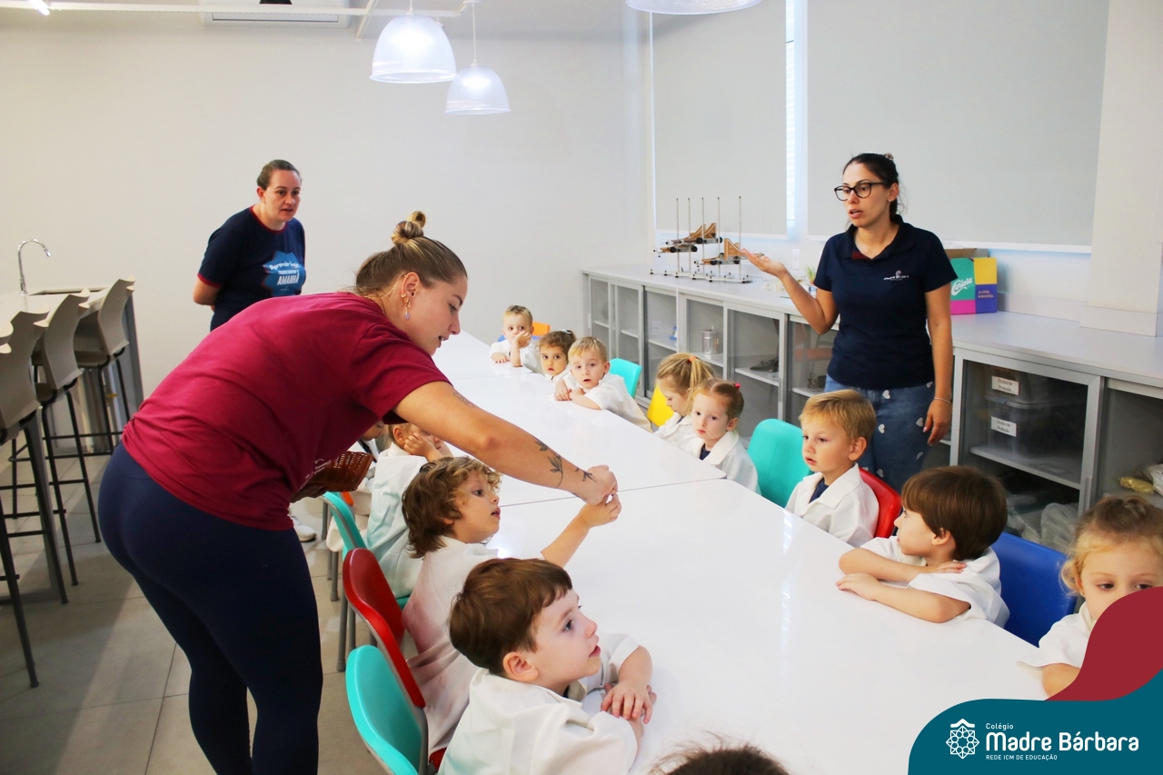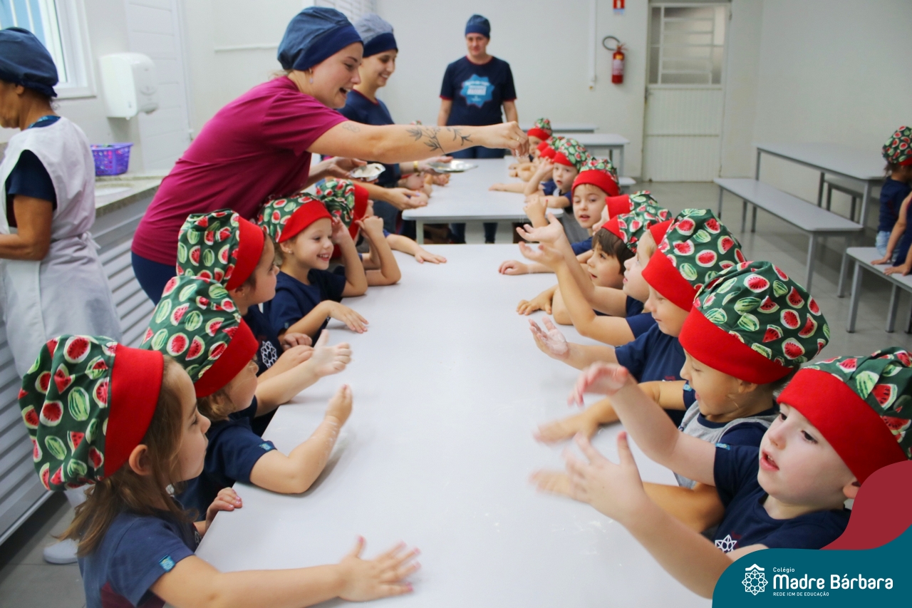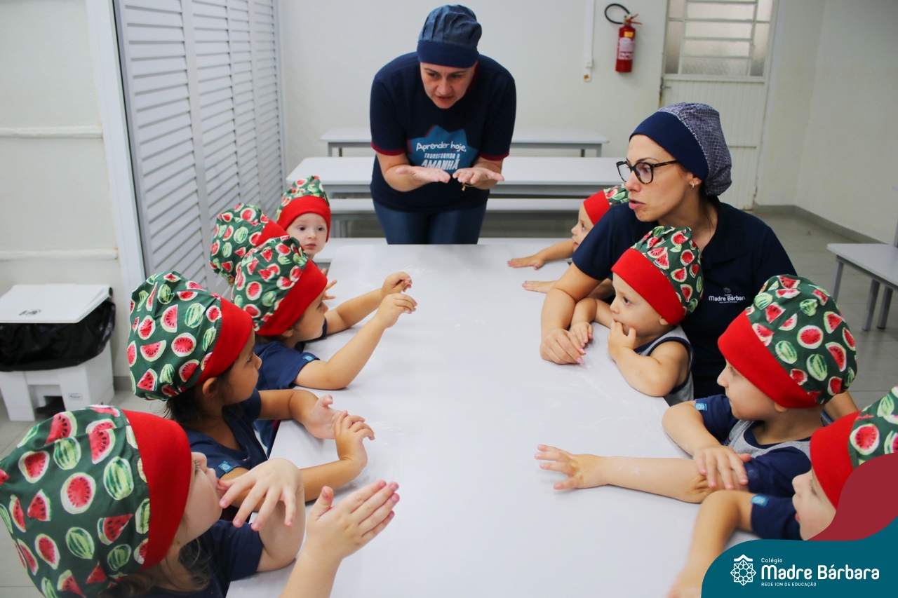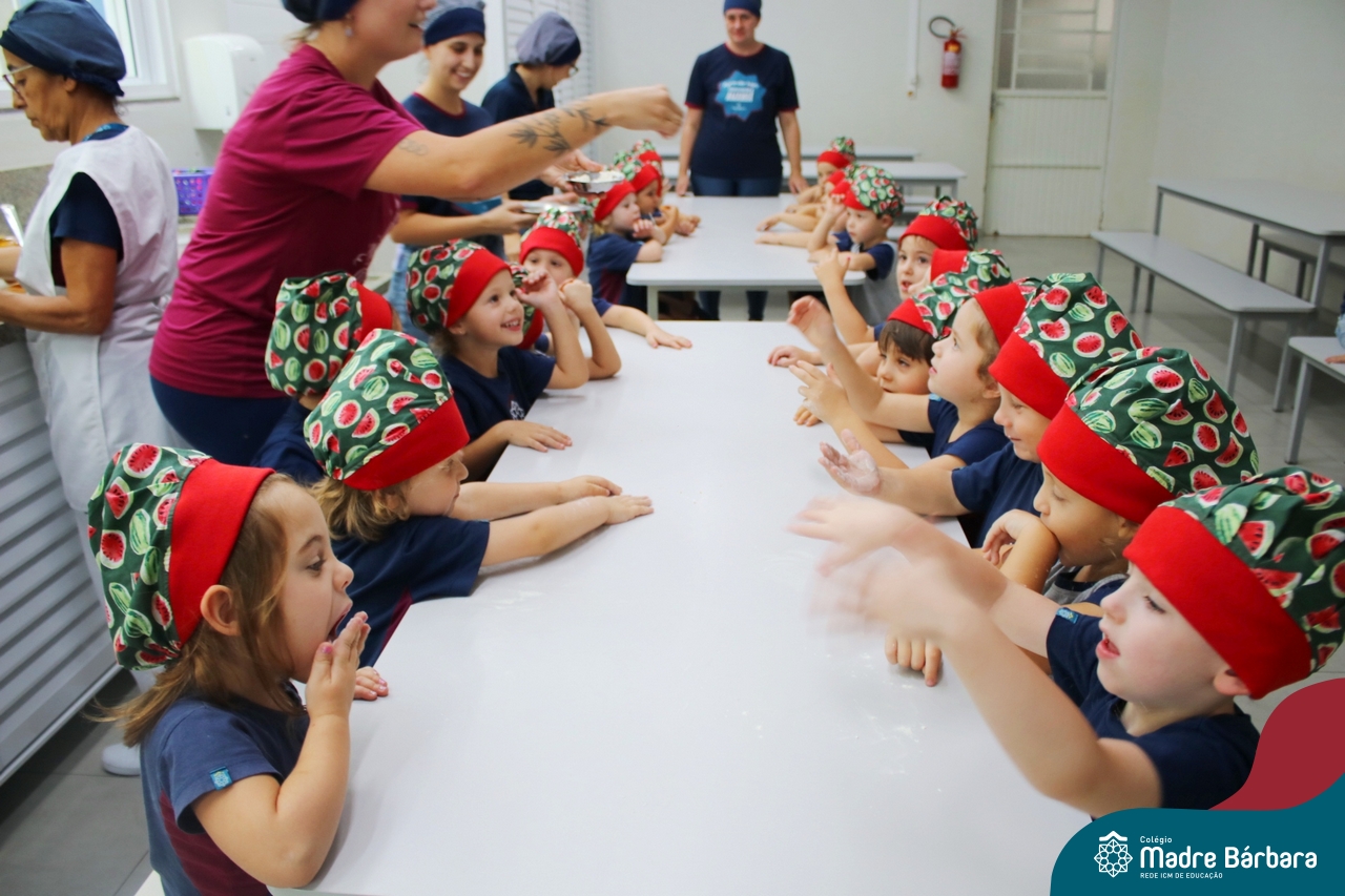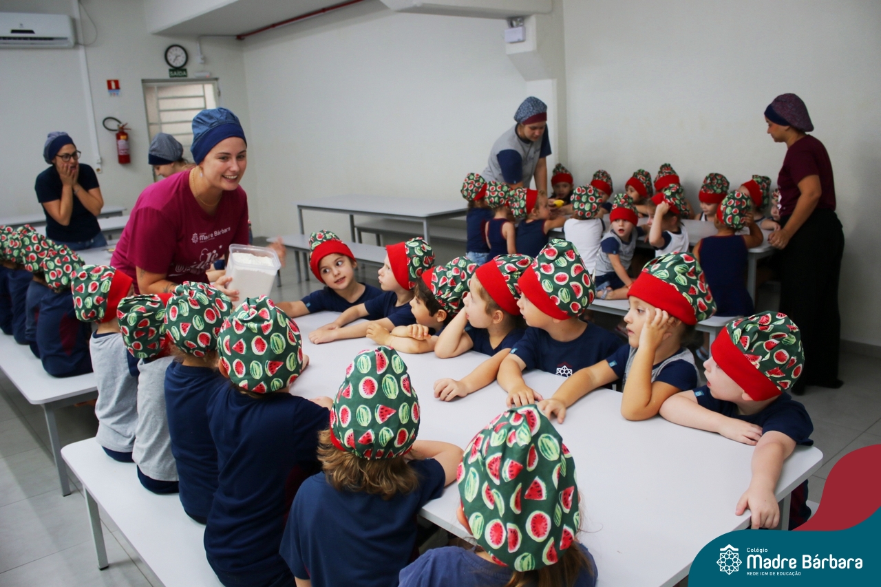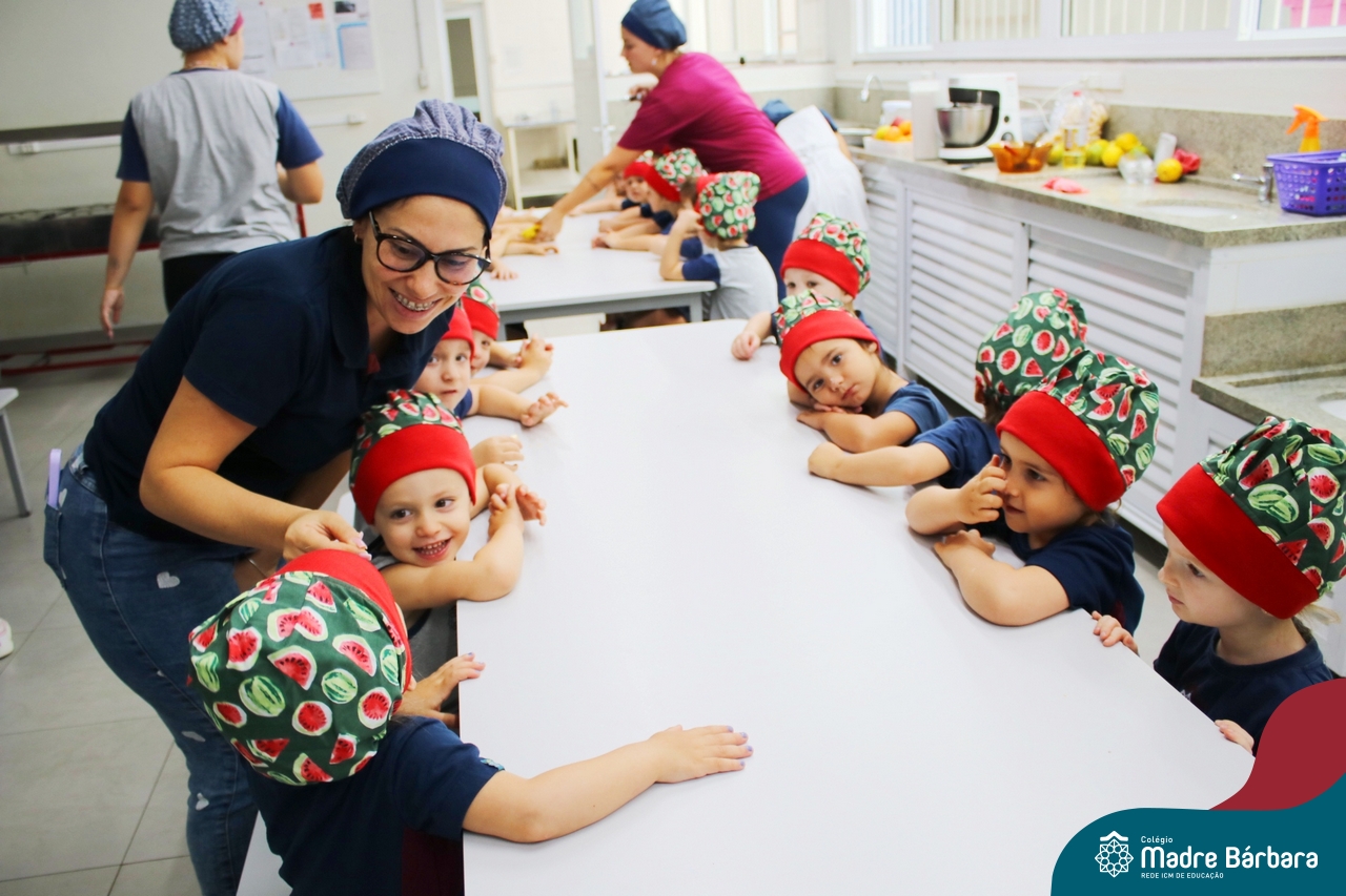 Depois do chazinho de laranja, as crianças fizeram, provaram e aprovaram o bolo de laranja, acompanhados das professoras e da tia Maria, cozinheira do refeitório da Educação Infantil! Além de terem uma alimentação saudável, as crianças puderam acompanhar as etapas que envolve todo o processo do bolo. Ainda estiveram no Laboratório de Ciências, observando o mofo que criou nas cascas de laranja que haviam guardado. Curiosidade, oralidade, imaginação e protagonismo não faltaram durante essa vivência!