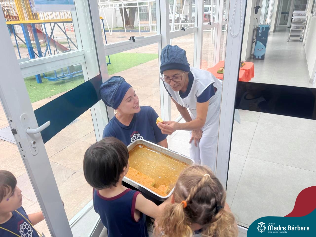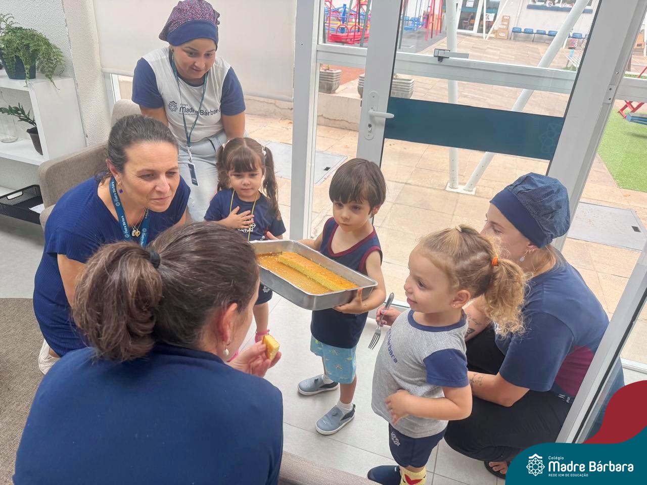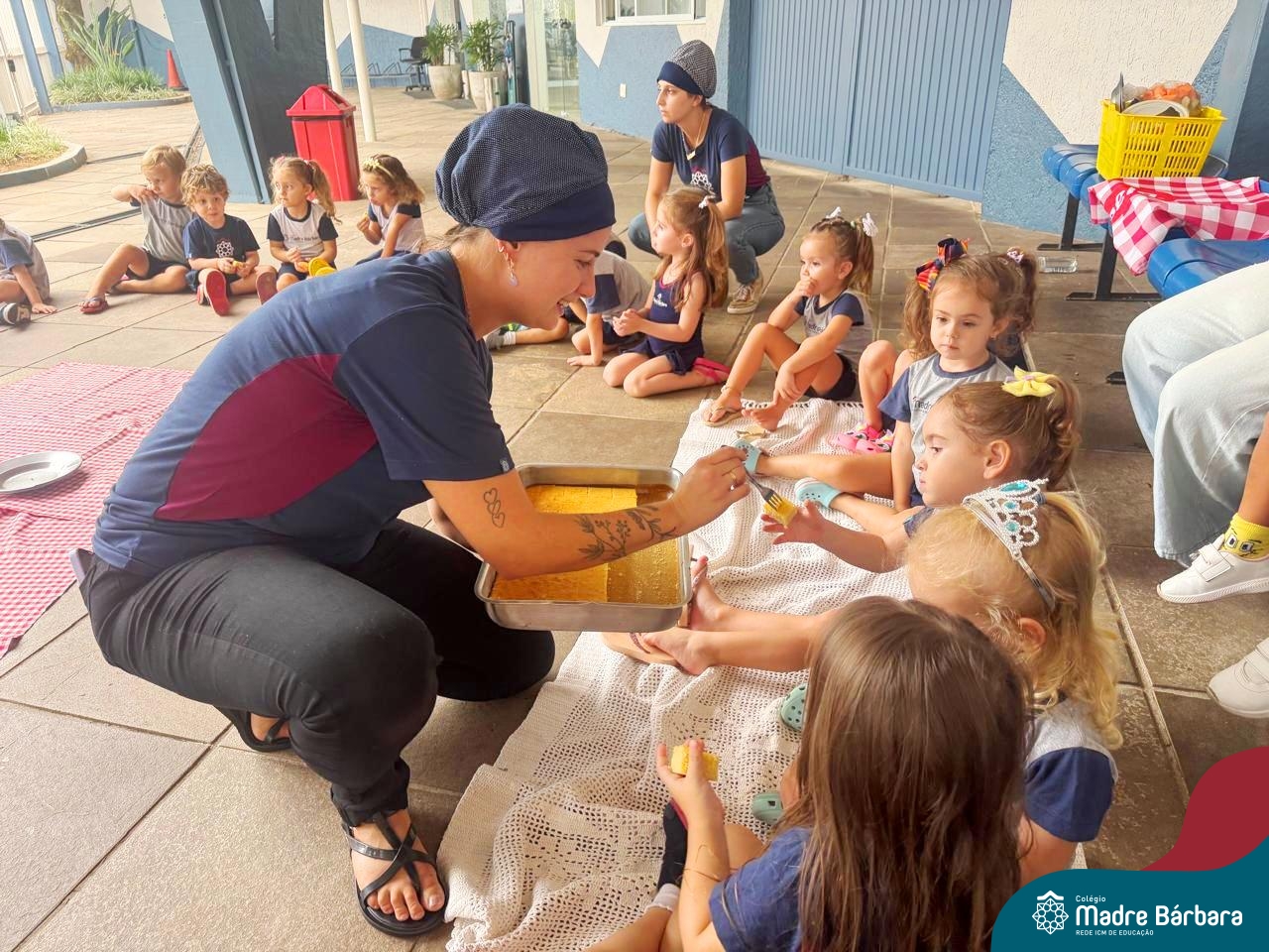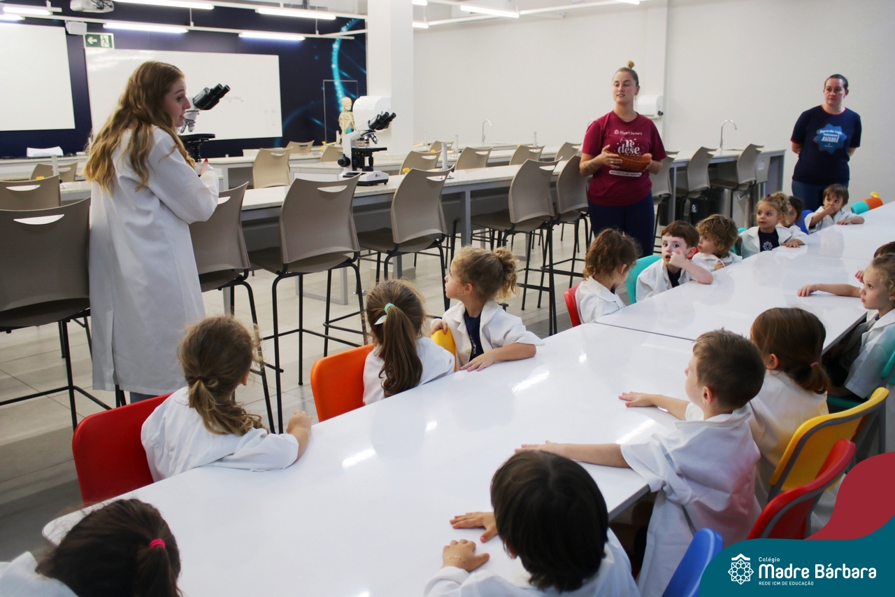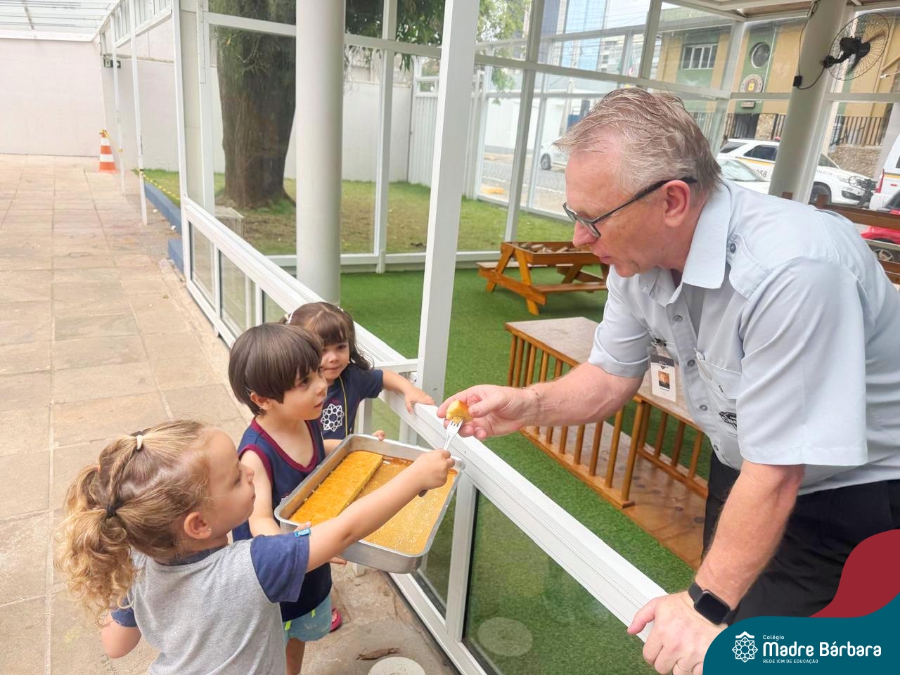 Depois do chazinho de laranja, as crianças fizeram, provaram e aprovaram o bolo de laranja, acompanhados das professoras e da tia Maria, cozinheira do refeitório da Educação Infantil! Além de terem uma alimentação saudável, as crianças puderam acompanhar as etapas que envolve todo o processo do bolo. Ainda estiveram no Laboratório de Ciências, observando o mofo que criou nas cascas de laranja que haviam guardado. Curiosidade, oralidade, imaginação e protagonismo não faltaram durante essa vivência!