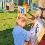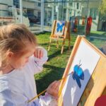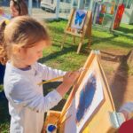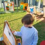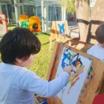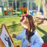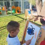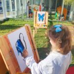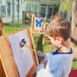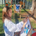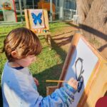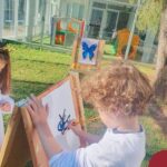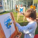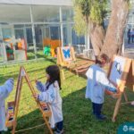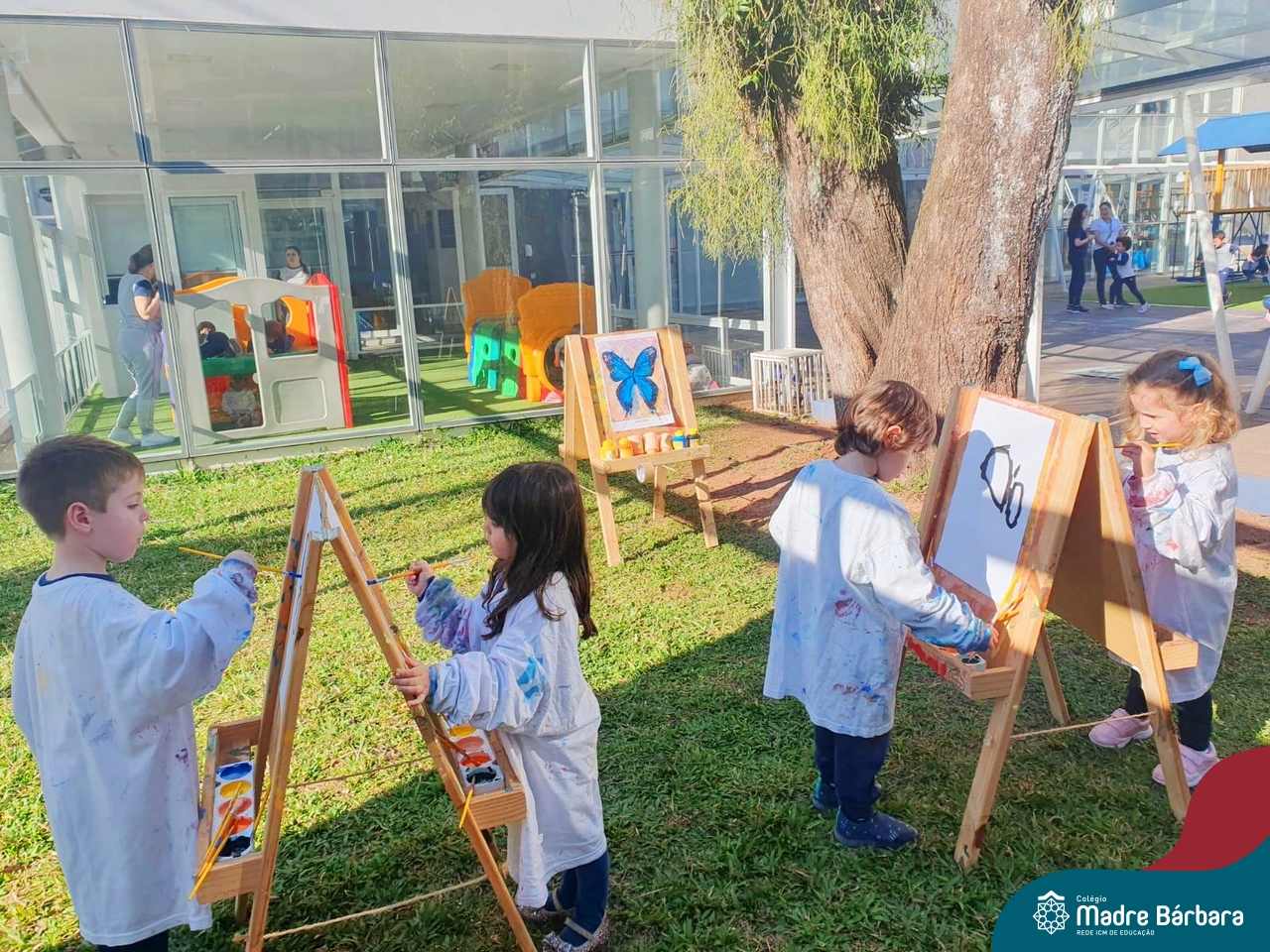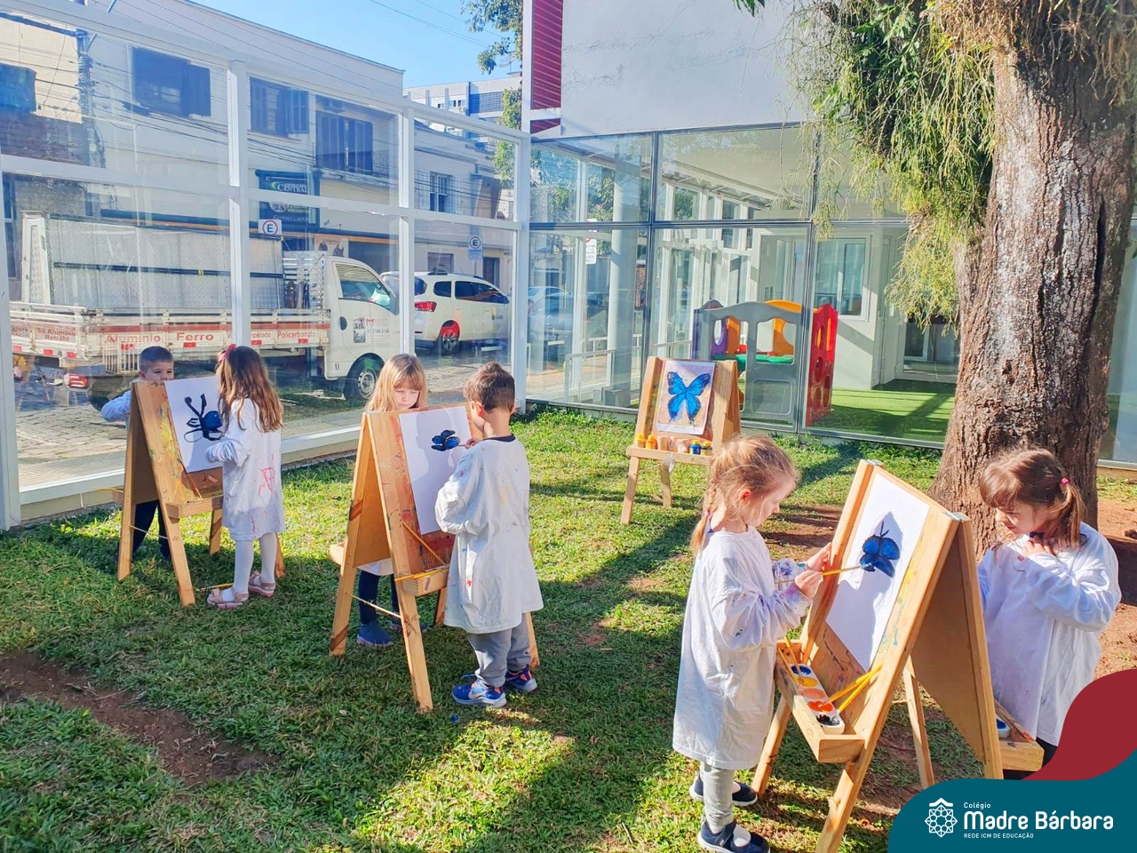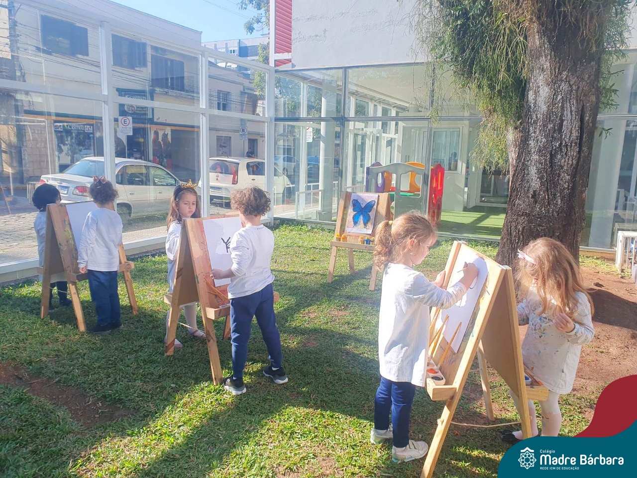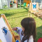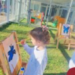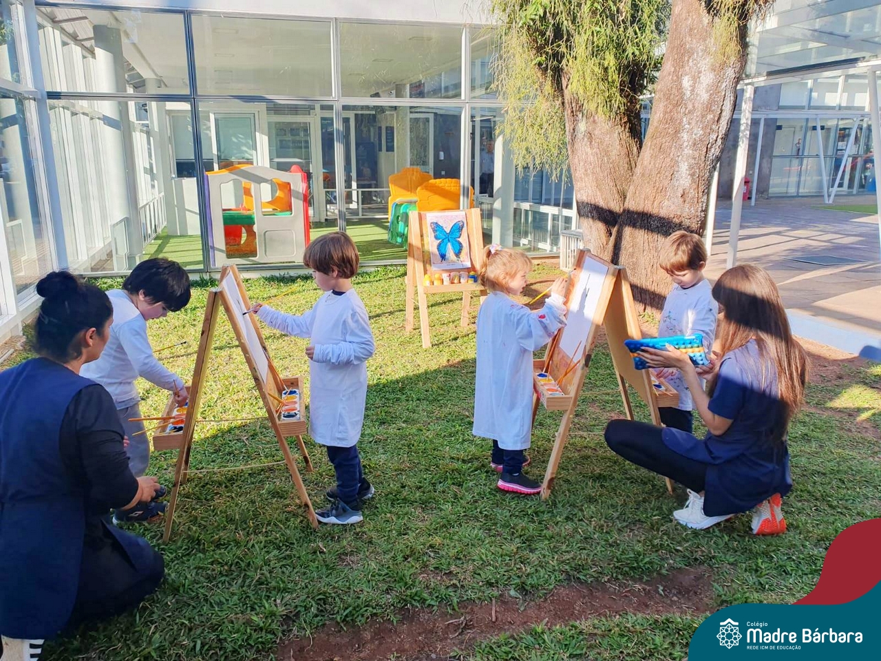 Numa linda tarde ensolarada, com olhares atentos e muita concentração, as crianças do Nível 4C, juntamente com a professora Fabiani e monitoras Cristiane e Gabriele, realizaram a releitura da obra de Glenda Brown. Observando as formas, traços e cores desenharam uma linda borboleta azul. Essa situação de aprendizagem enriqueceu ainda mais o projeto da turma: “A magia da transformação: um voo pelo mundo encantado das borboletas.” Foi um momento muito significativo e especial!