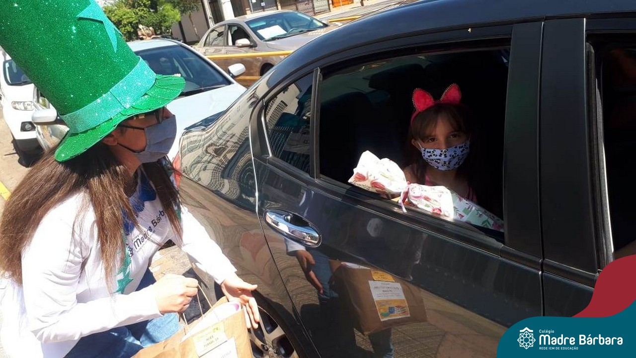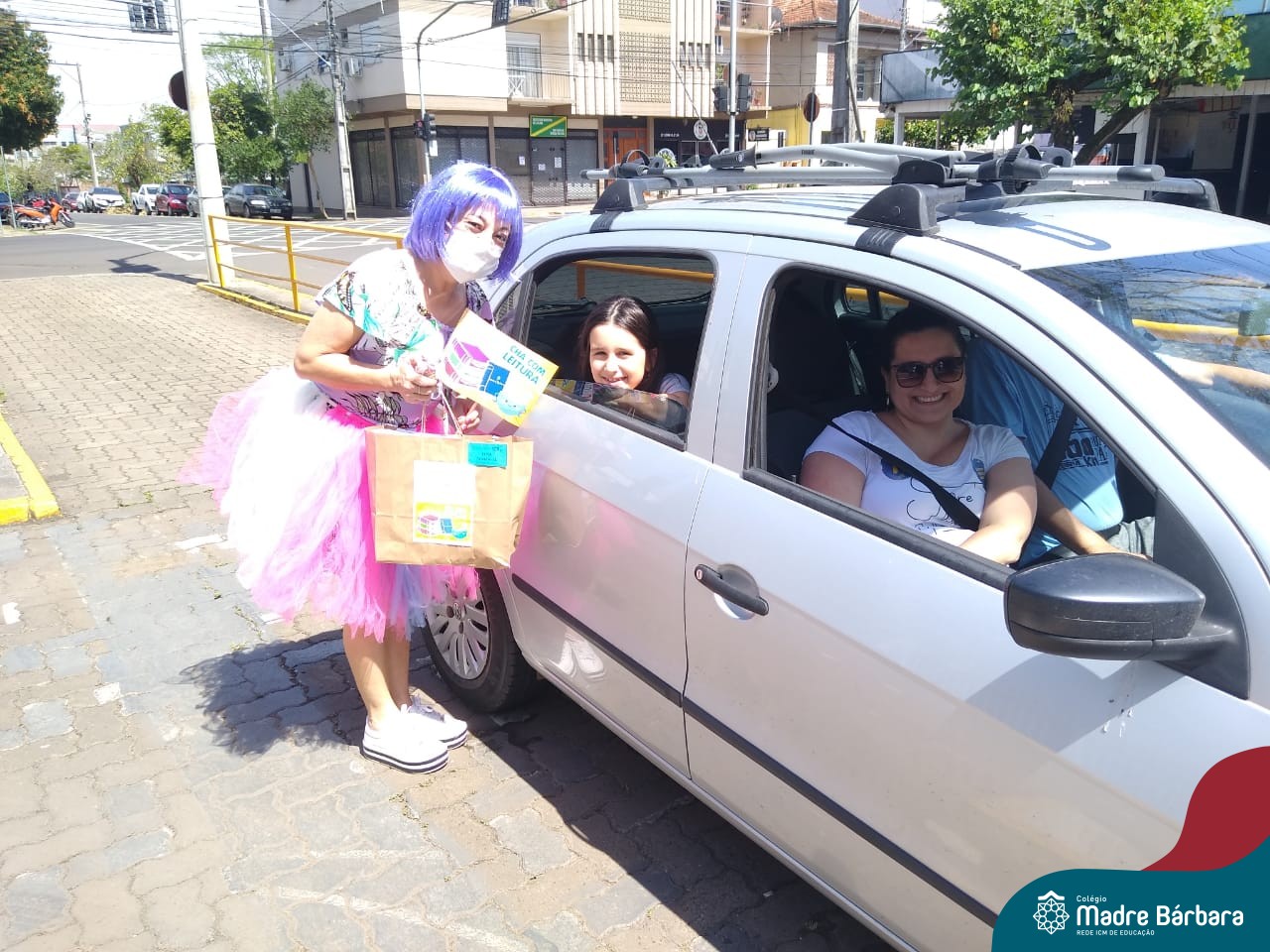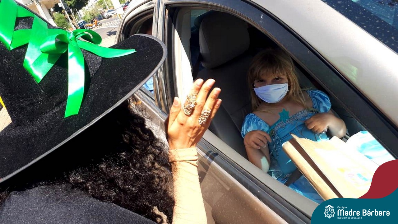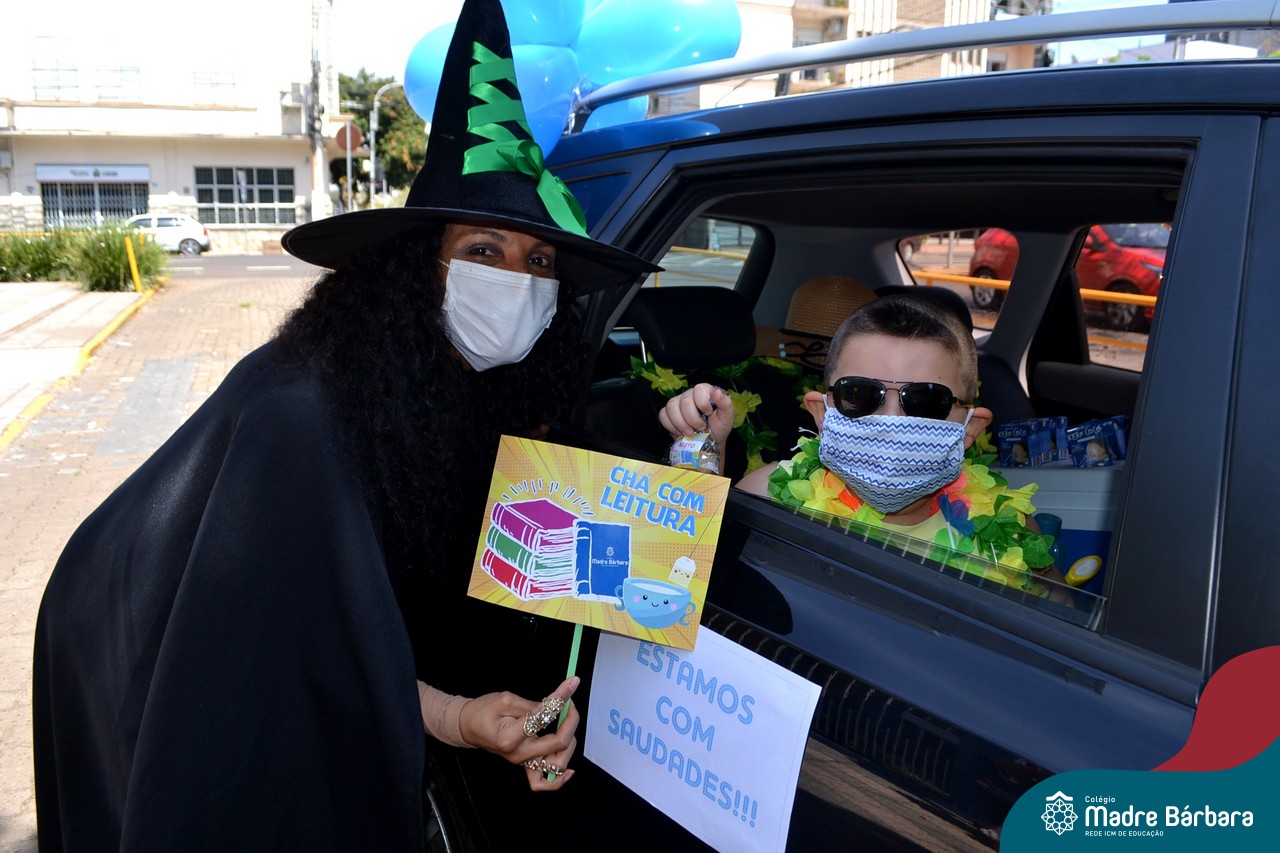 Foi então que o livro “O Chá das Maravilhas” entrou em cena. As professoras se inspiraram na história para trazer os alunos novamente a escola. Fantasiadas com personagens dos livros, elas os receberam com muito carinho, seguindo os protocolos de segurança e higienização, e entregaram fichas de leitura, jogos educativos e um cupcake. A partir disso, elas irão trabalhar com esses materiais nas próximas aulas.