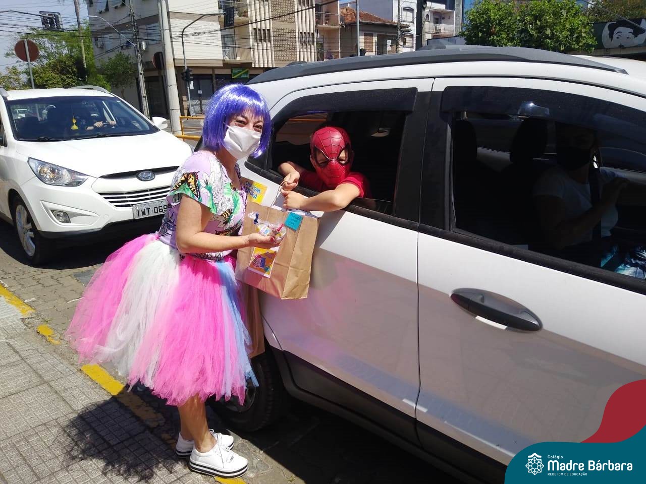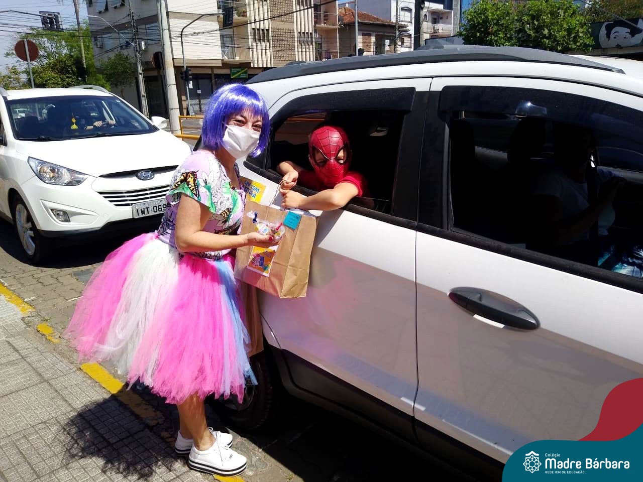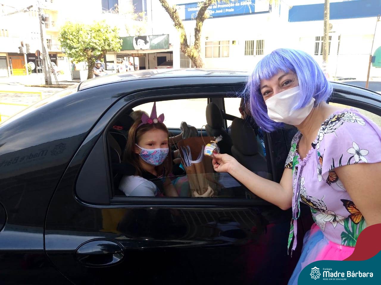 Foi então que o livro “O Chá das Maravilhas” entrou em cena. As professoras se inspiraram na história para trazer os alunos novamente a escola. Fantasiadas com personagens dos livros, elas os receberam com muito carinho, seguindo os protocolos de segurança e higienização, e entregaram fichas de leitura, jogos educativos e um cupcake. A partir disso, elas irão trabalhar com esses materiais nas próximas aulas.