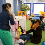 As crianças assistiram o teatro que envolveu a história: “A Margarida Friorenta”, de Fernanda Lopes de Almeida. As crianças ficaram encantadas com o desenrolar da história que teve o objetivo de trazer encantamento, carinho e afeto. Ao final da apresentação, assim como fez a Margarida, todos foram convidados a abraçar os colegas. Foi um momento lindo, repleto de carinho e amor.