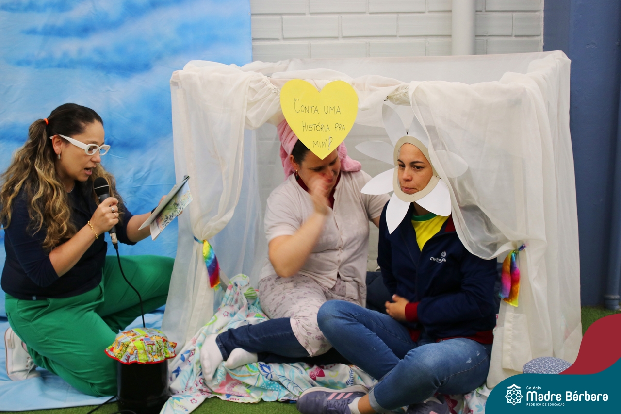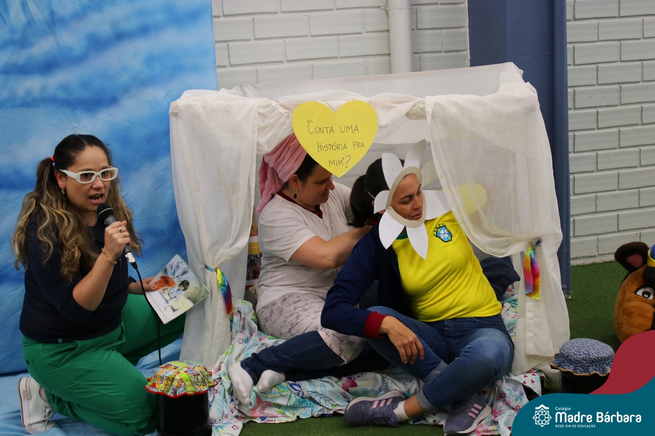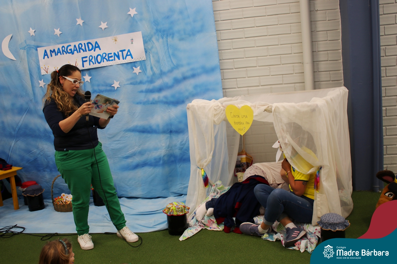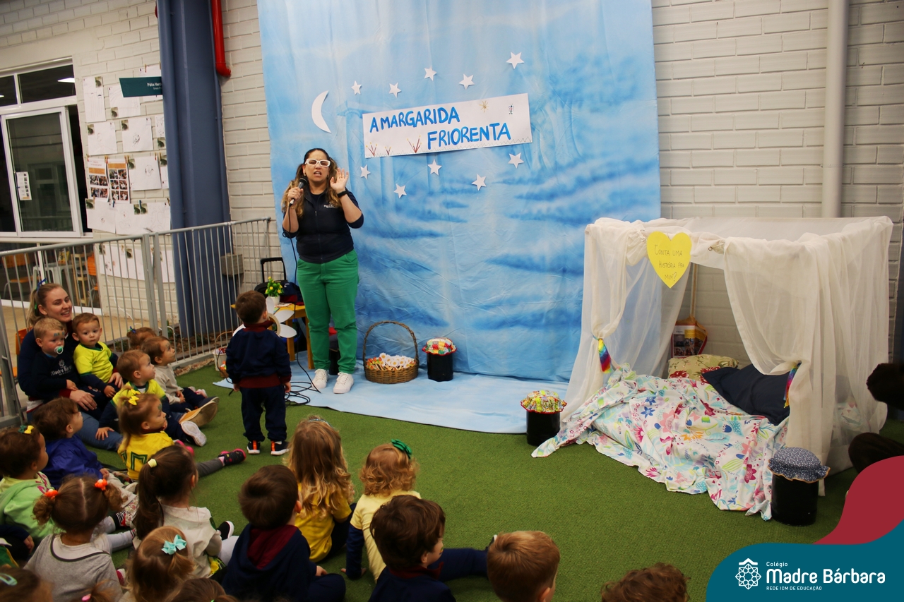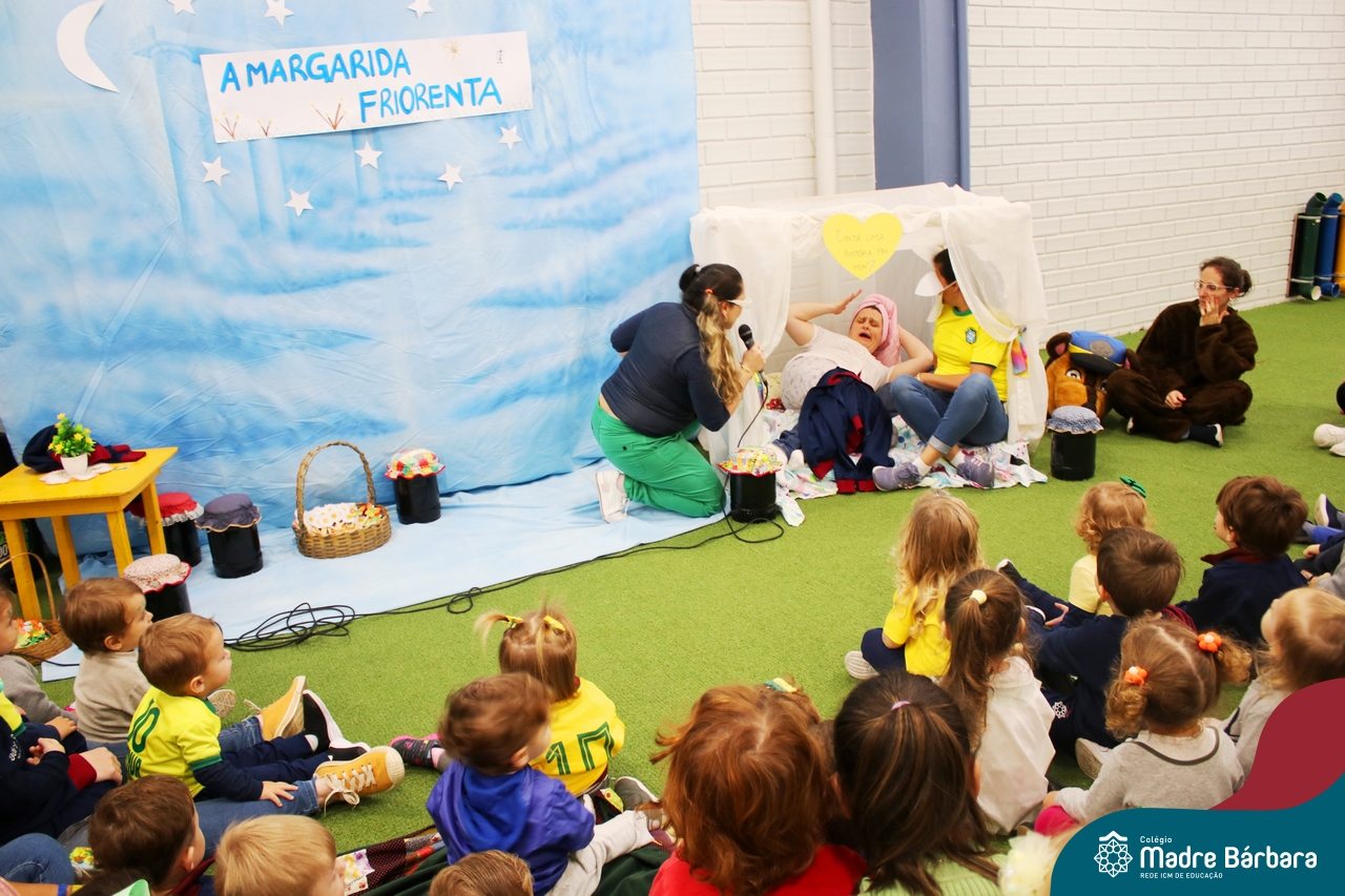 As crianças assistiram o teatro que envolveu a história: “A Margarida Friorenta”, de Fernanda Lopes de Almeida. As crianças ficaram encantadas com o desenrolar da história que teve o objetivo de trazer encantamento, carinho e afeto. Ao final da apresentação, assim como fez a Margarida, todos foram convidados a abraçar os colegas. Foi um momento lindo, repleto de carinho e amor.