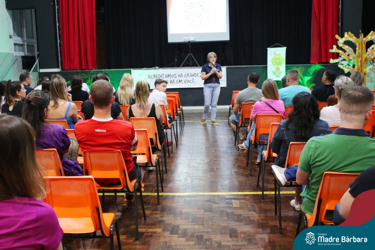 Na noite desta quinta-feira (30.11) o Colégio Madre Bárbara – Rede ICM realizou um encontro para as famílias do Ensino Fundamental – Anos Iniciais sobre “O papel da família no desenvolvimento socioemocional” com o palestrante Ênio Correa da Silva Junior. Acolhidas por estudantes que fazem parte da Equipe Farol Mirim, as famílias puderam entender mais sobre “A sinergia entre escola e família: Formação Integral do Ser”. Segundo Ênio, foi momento de construir a sinergia, apresentar aspectos sobre o que a escola e a família ganham com isso, sem jamais um olhar de repressão, mas sim, trazendo resultados. “Quando há sinergia quais ganhos temos. É importante fazermos uma parceria em prol do aluno, dando sequência ao trabalho feito na escola e também com as famílias, para que falem a mesma linguagem e olhem na mesma direção o desenvolvimento, tanto socioemocional, quando emocional, quanto desenvolvimento como um todo, não somente o acadêmico”.
