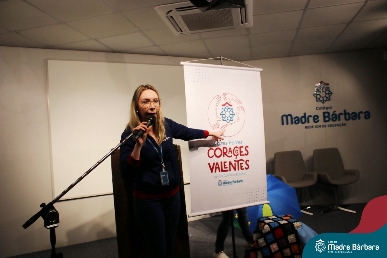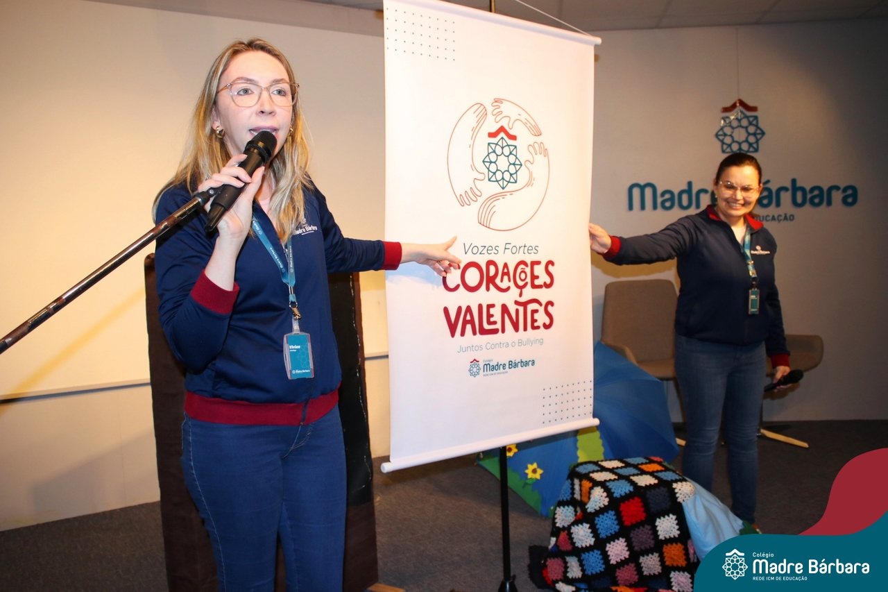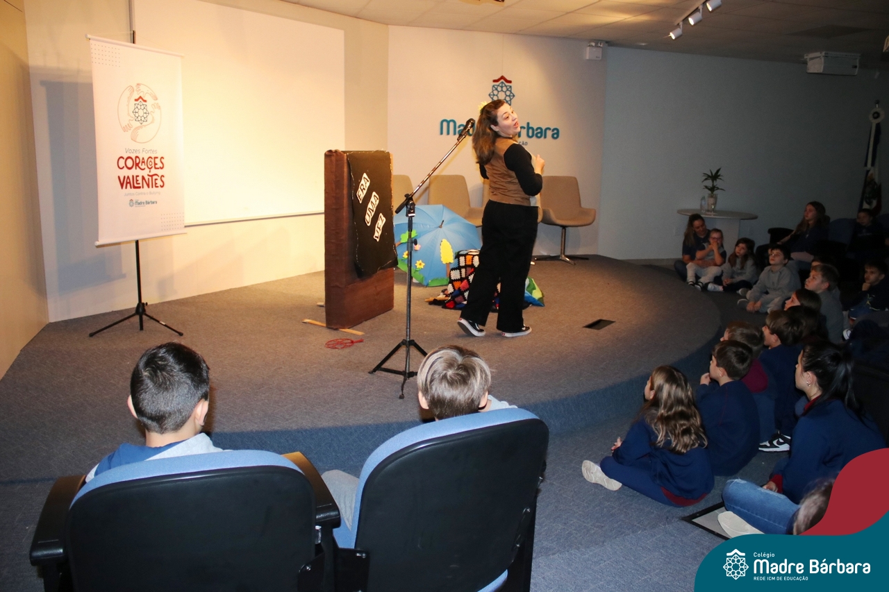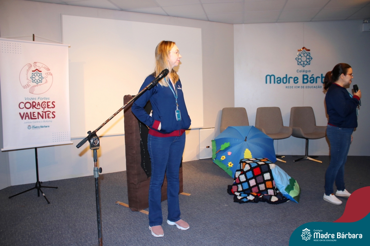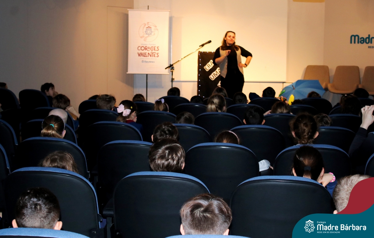 Nesta semana, os Serviços de Psicologia Escolar, Orientação Educacional e Serviço Social do Colégio, tiveram a oportunidade de realizar a abertura do Programa de Prevenção e Enfrentamento ao Bullying com os estudantes dos Anos Iniciais. A equipe formalizou as ações que já vinham sendo desenvolvidas ao longo dos anos, através da elaboração de um programa permanente de Prevenção ao Bullying. Foi apresentado aos estudantes, a marca oficial do programa, criada pelo marketing da Rede ICM de Educação, com o slogan: “Vozes Fortes Corações Valentes – Juntos contra o Bullying”. Contamos com a parceria da professora e atriz, Tatiana Linhares, abrilhantando este momento especial, realizando contação de histórias contemplando o tema do programa, interagindo e envolvendo todas as turmas.