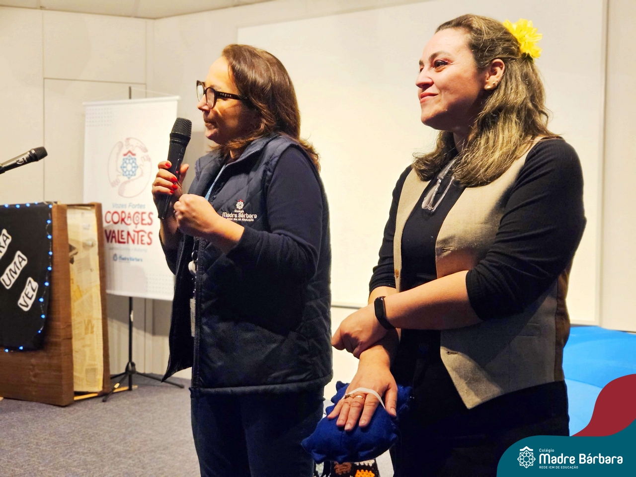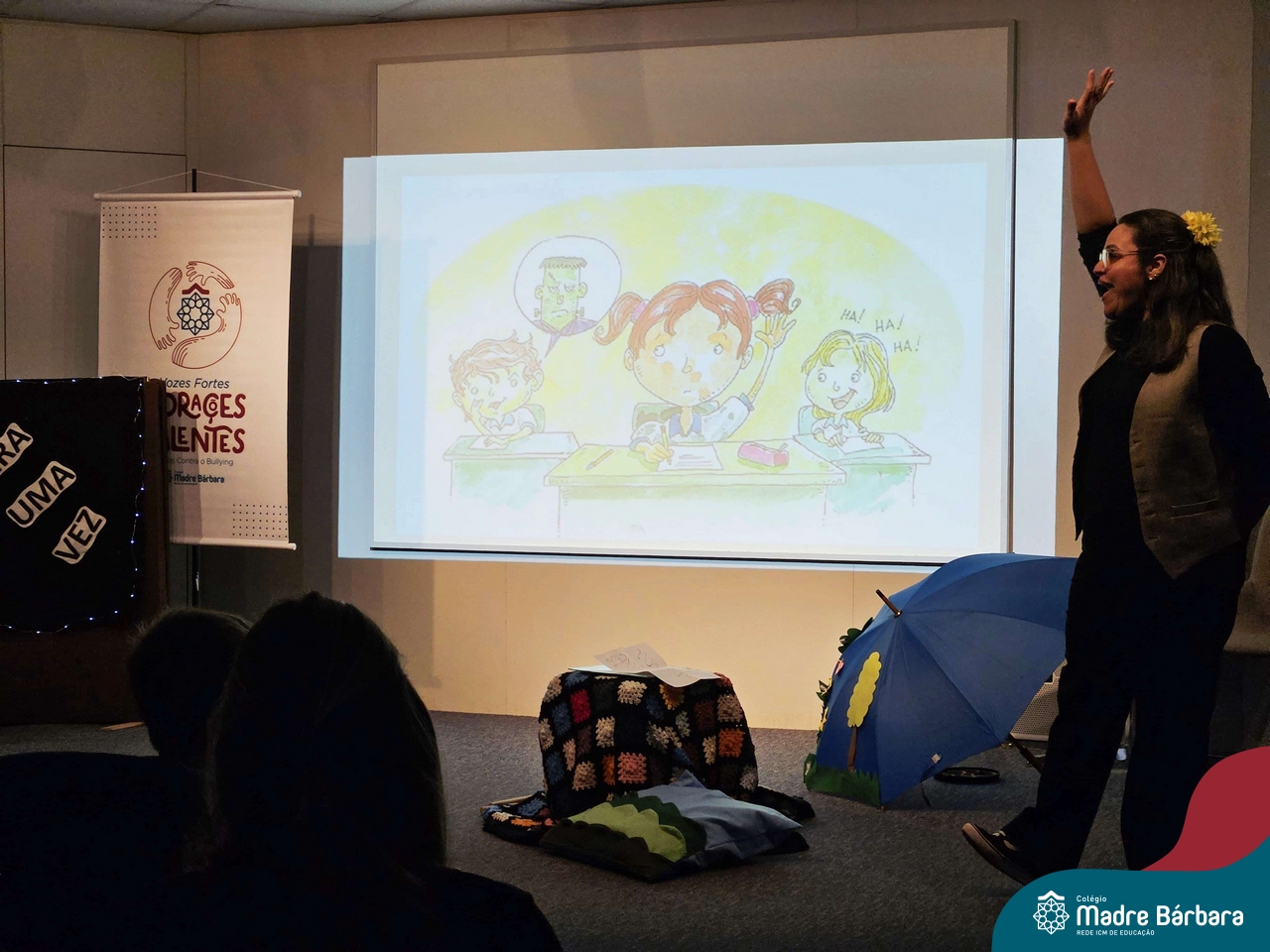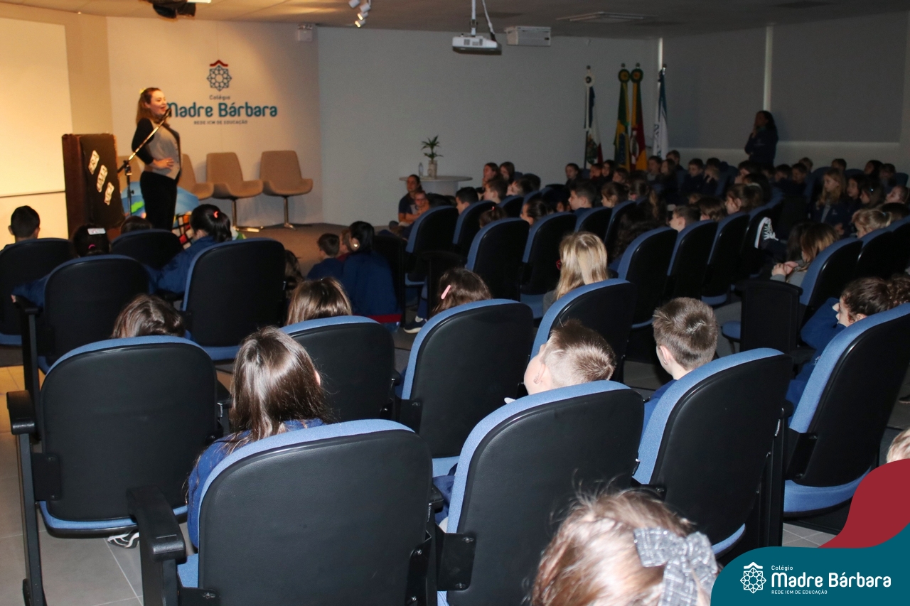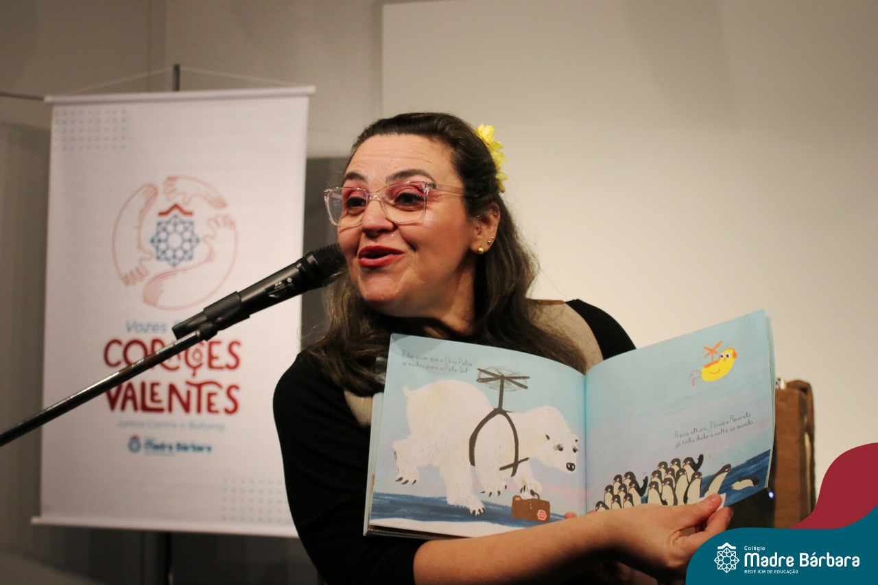 Nesta semana, os Serviços de Psicologia Escolar, Orientação Educacional e Serviço Social do Colégio, tiveram a oportunidade de realizar a abertura do Programa de Prevenção e Enfrentamento ao Bullying com os estudantes dos Anos Iniciais. A equipe formalizou as ações que já vinham sendo desenvolvidas ao longo dos anos, através da elaboração de um programa permanente de Prevenção ao Bullying. Foi apresentado aos estudantes, a marca oficial do programa, criada pelo marketing da Rede ICM de Educação, com o slogan: “Vozes Fortes Corações Valentes – Juntos contra o Bullying”. Contamos com a parceria da professora e atriz, Tatiana Linhares, abrilhantando este momento especial, realizando contação de histórias contemplando o tema do programa, interagindo e envolvendo todas as turmas.