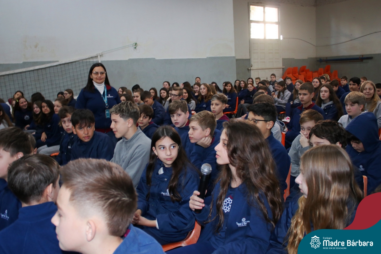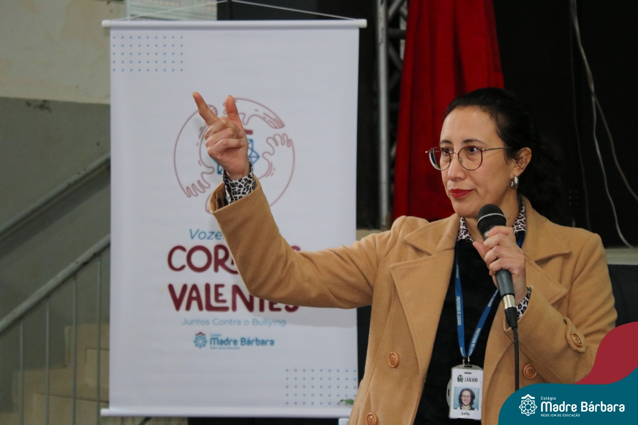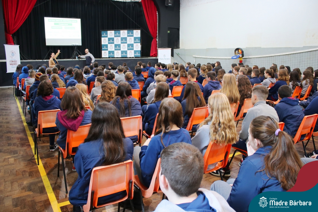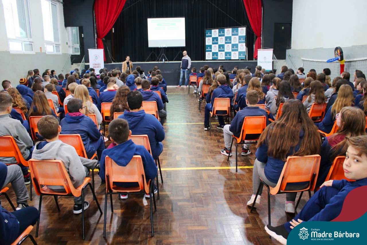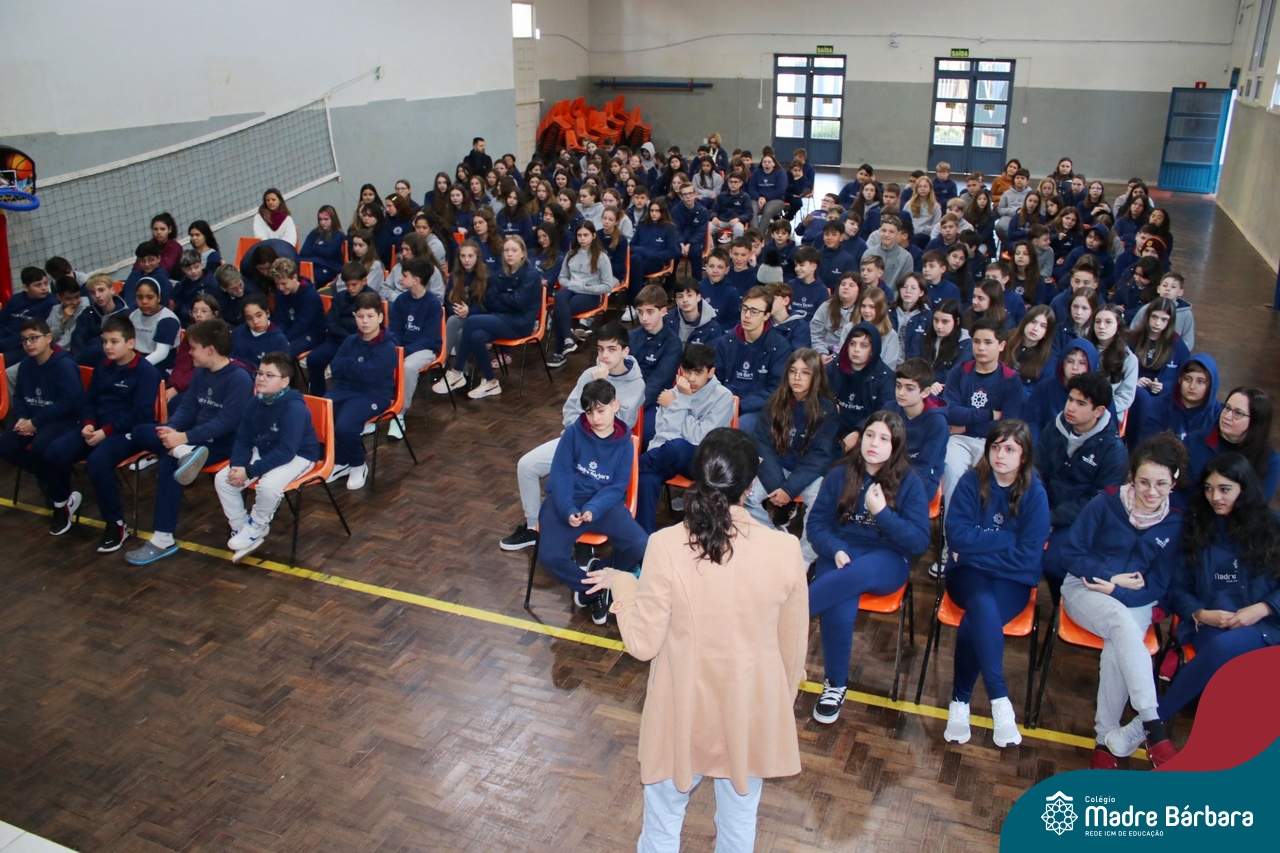 Nesta manhã de quarta-feira (31), os Serviços de Psicologia Escolar, Orientação Educacional e Serviço Social do Colégio Madre Bárbara – Rede ICM, realizaram a Abertura do Programa de Prevenção e Enfrentamento ao Bullying com os estudantes do Ensino Fundamental, de 6º ao 9ª ano do Ensino Fundamental – Anos Finais. Neste ano, a equipe formalizou as ações que já vinham sendo desenvolvidas, através da elaboração de um programa permanente de Prevenção ao Bullying. Na oportunidade foi apresentado aos estudantes, a nova marca oficial do programa, criado pelo marketing da Rede ICM de Educação, com o slogan: “Vozes Fortes Corações Valentes – Juntos contra o bullying”.