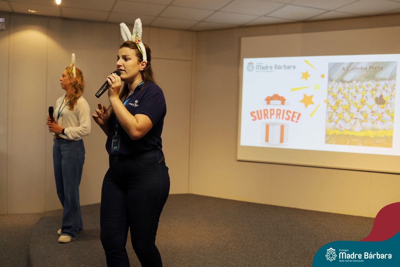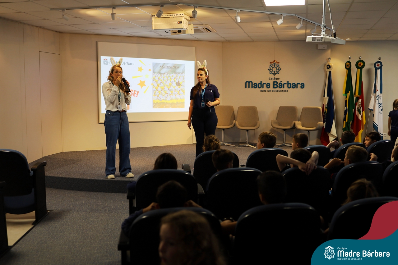Com a bibliografia “A Galinha preta” de Martina Schlossmacher e Iskender Gider. Foi abordado de forma sensível e lúdica a temática das diferenças, estimulando a empatia, o respeito e a valorização da diversidade. A atividade permitiu aos estudantes reconhecerem, através do enredo e dos personagens, a importância de acolher o outro em suas particularidades, reforçando o verdadeiro significado da Páscoa enquanto celebração de amor, solidariedade e união. O momento foi enriquecido com reflexões e trocas de experiências, proporcionando aos alunos vivências significativas de inclusão, alinhadas ao trabalho desenvolvido no Atendimento Educacional Especializado (AEE).