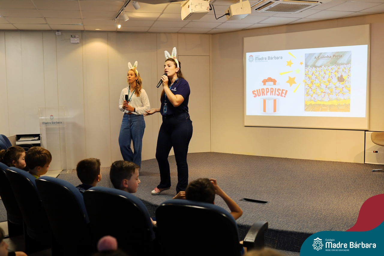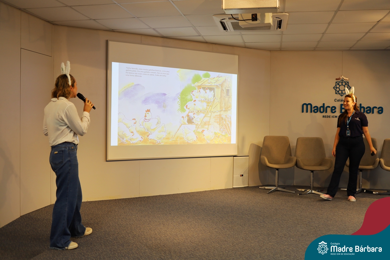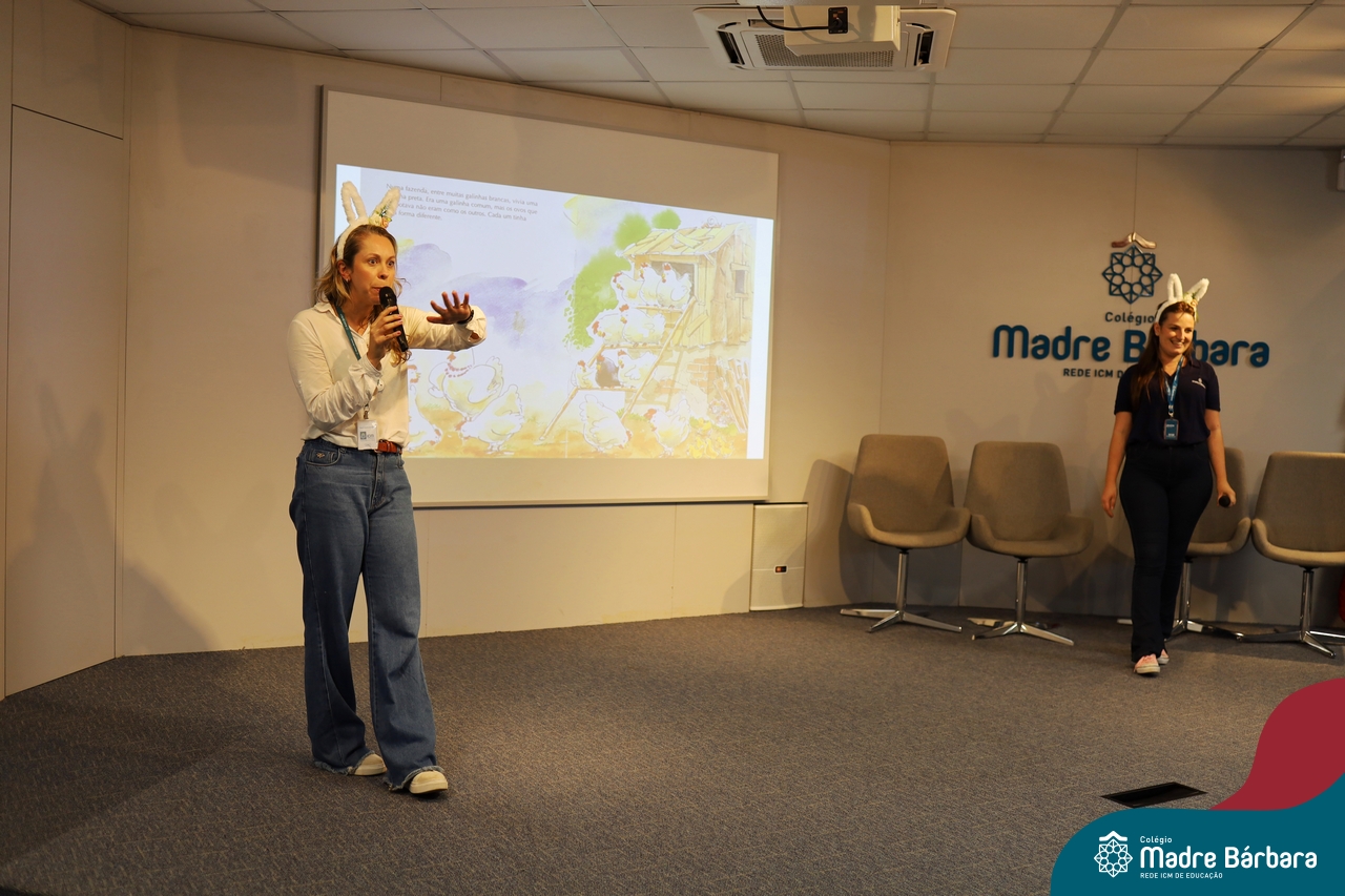 Com a finalidade de conscientizar, sentir, ser parte, uma série de reflexões tem dado origem a um novo projeto: Narrativas que unem, experiências que incluem. Nesta terça feira (15.04), as turmas dos Anos Iniciais, participaram de uma contação de história, em preparação para a Páscoa, mas que também envolveu a temática: diferenças.