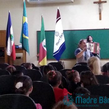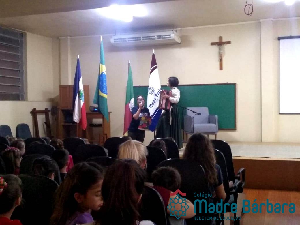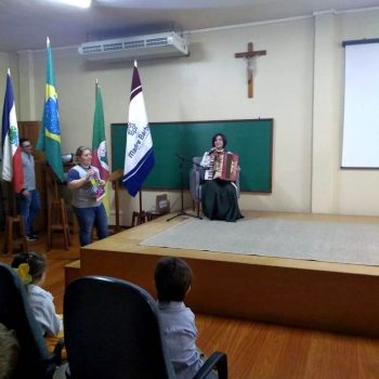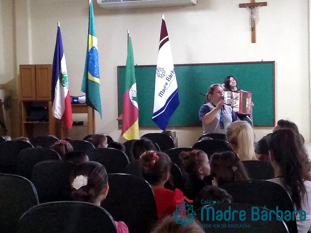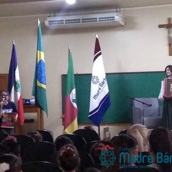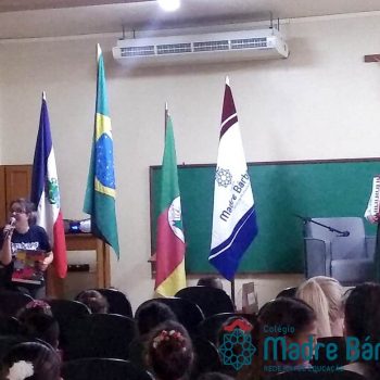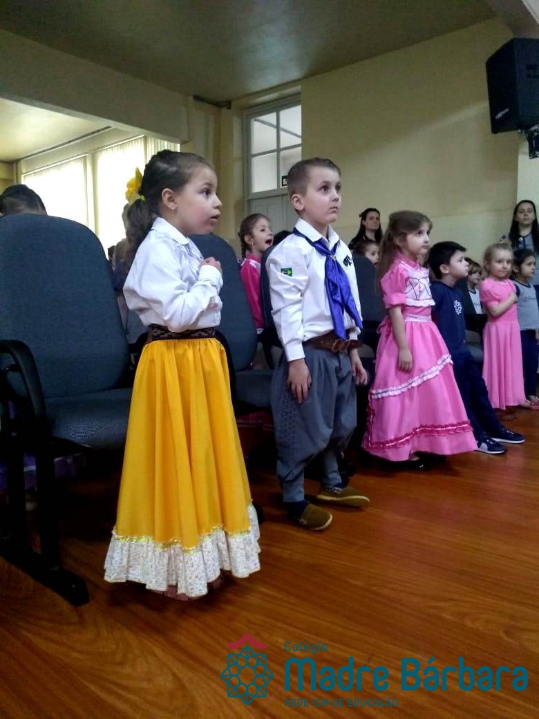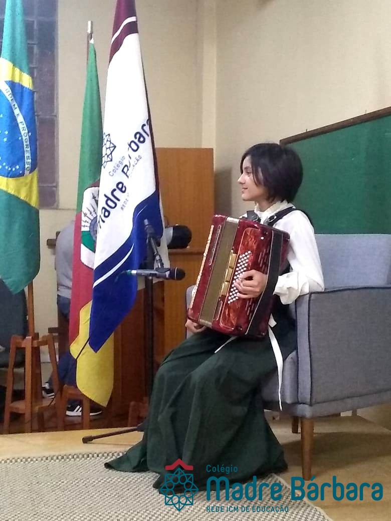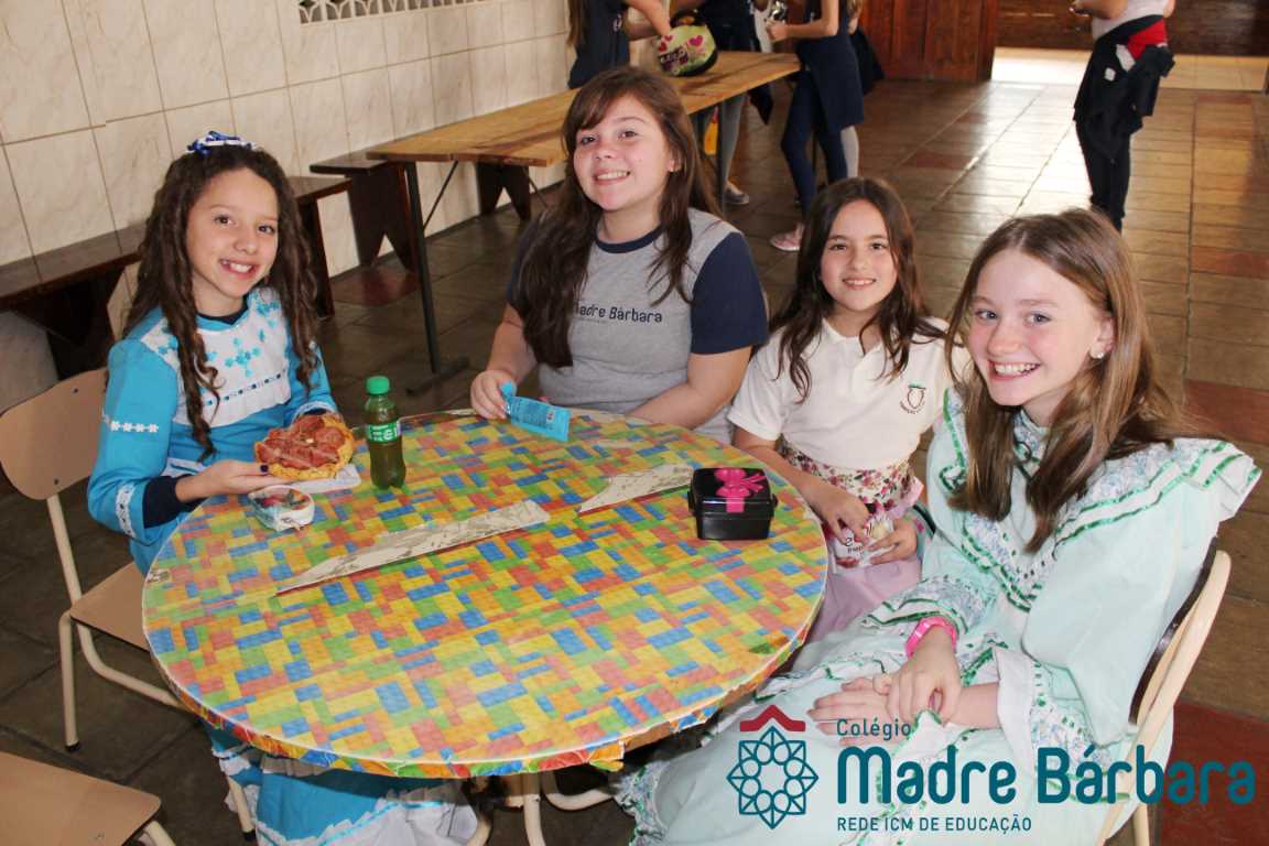 Na manhã dessa segunda-feira (16.09) os alunos, professores e funcionários do Colégio Madre Bárbara – Rede ICM participaram da Abertura da Semana Farroupilha. No primeiro momento, todos cantaram o hino rio-grandense e após a mensagem da professora de história Juciane Sehn, a aluna Amanda Medeiros tocou músicas gauchescas com a gaita. A presidente do Grêmio Estudantil, Laura Prass Schossler falou sobre o Concurso do Gembar que está sendo realizado durante a Semana Farroupilha e premiará a melhor prenda, o melhor gaúcho, a melhor cuia ornamentada e também a melhor fotografia. Durante a manhã também aconteceu a mateada das turmas, nas salas de aula e no pátio.