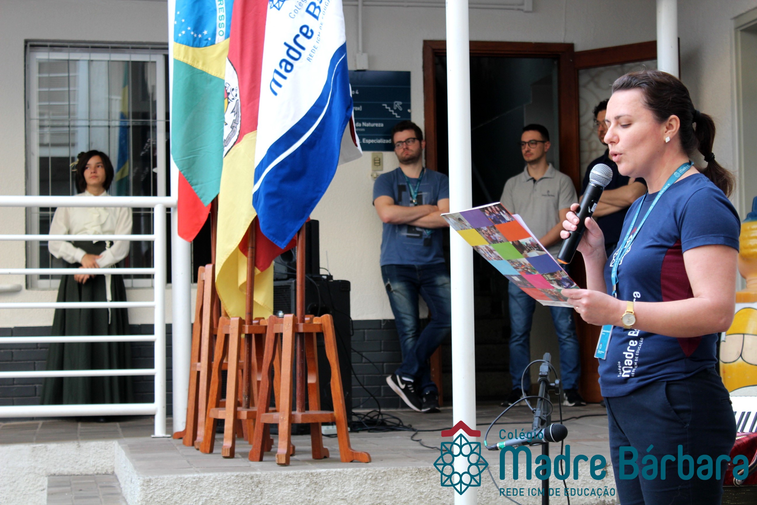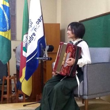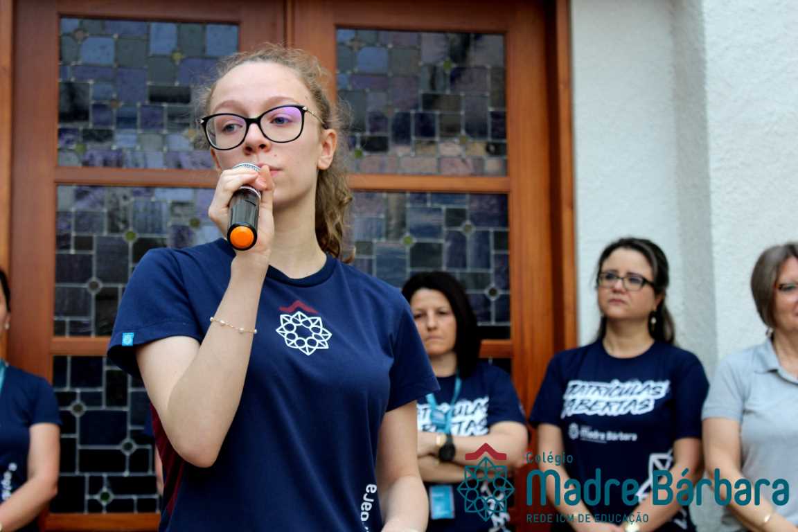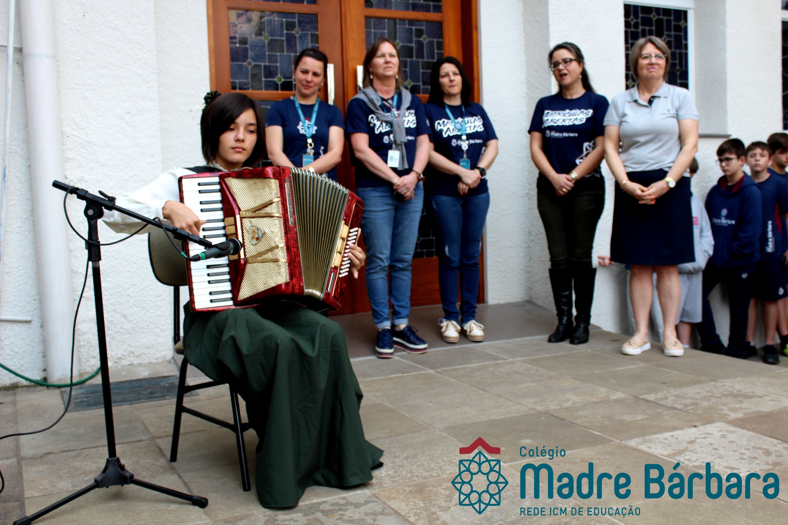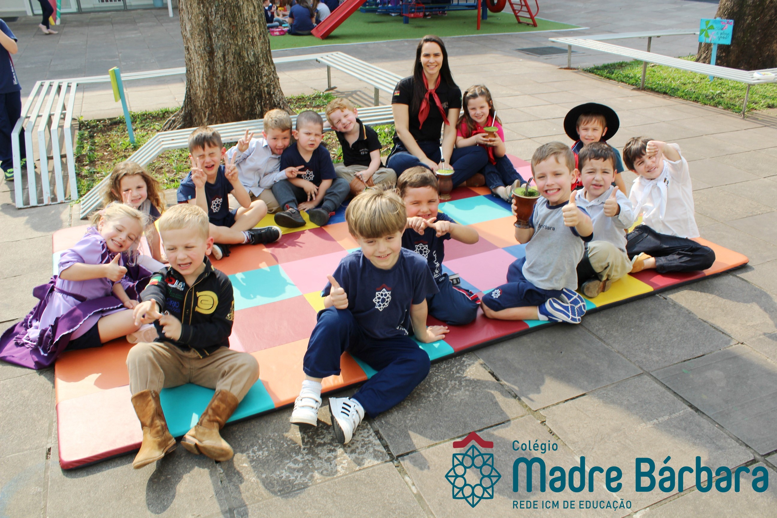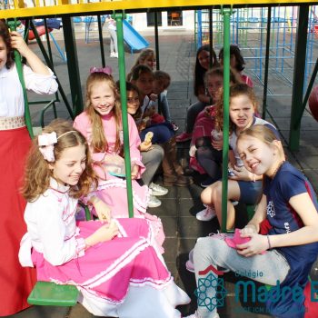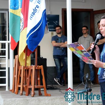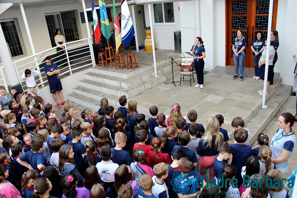 Na manhã dessa segunda-feira (16.09) os alunos, professores e funcionários do Colégio Madre Bárbara – Rede ICM participaram da Abertura da Semana Farroupilha. No primeiro momento, todos cantaram o hino rio-grandense e após a mensagem da professora de história Juciane Sehn, a aluna Amanda Medeiros tocou músicas gauchescas com a gaita. A presidente do Grêmio Estudantil, Laura Prass Schossler falou sobre o Concurso do Gembar que está sendo realizado durante a Semana Farroupilha e premiará a melhor prenda, o melhor gaúcho, a melhor cuia ornamentada e também a melhor fotografia. Durante a manhã também aconteceu a mateada das turmas, nas salas de aula e no pátio.
