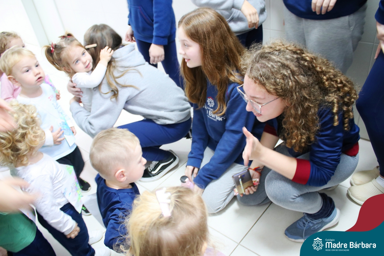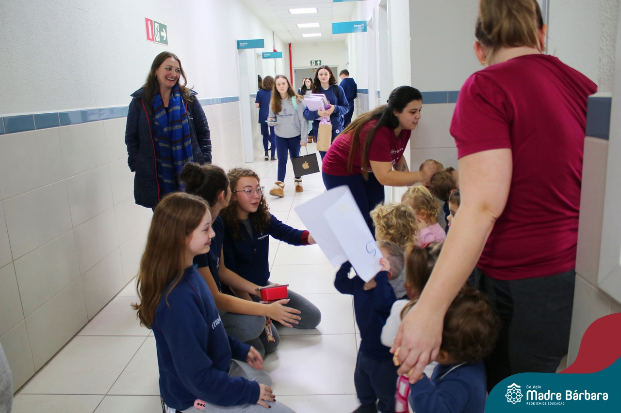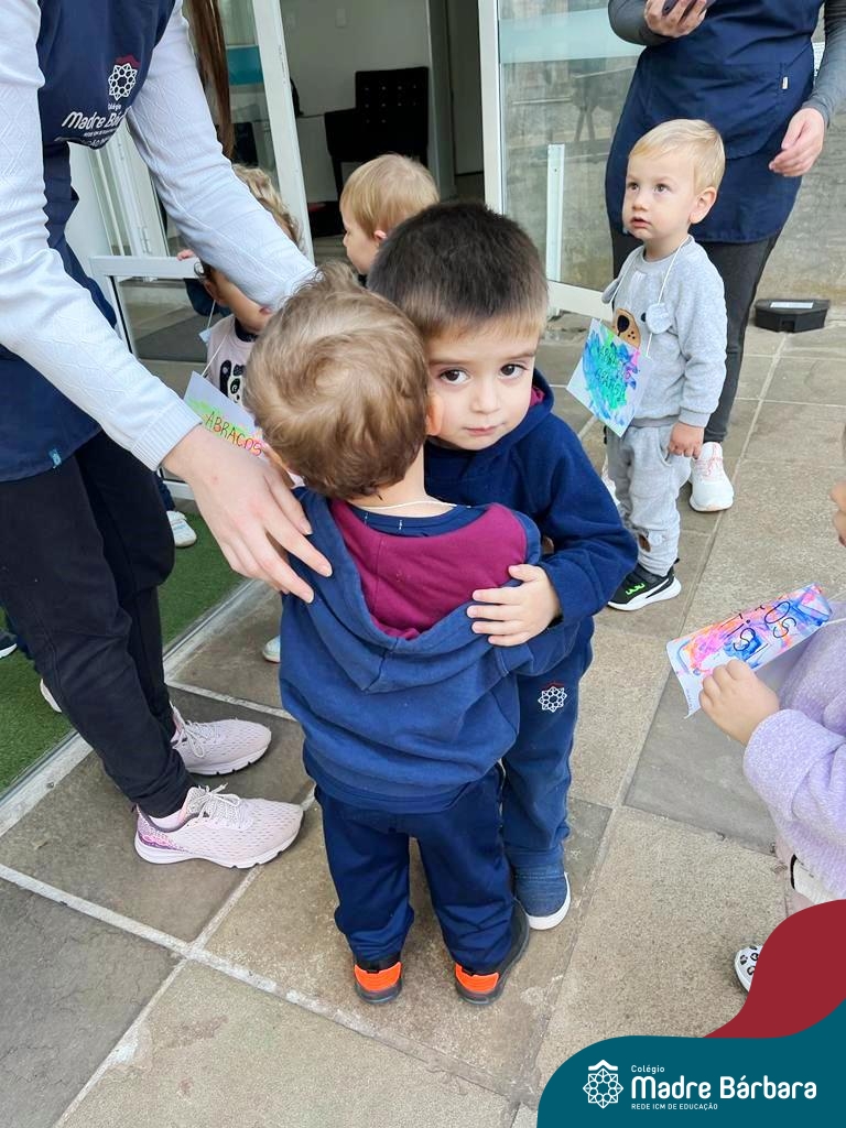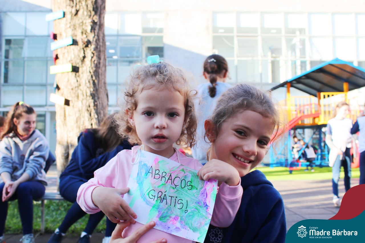 A partir do projeto “O que meu corpinho consegue fazer?” as crianças do nível 1D, turno da tarde, passearam por todo o Colégio Madre Bárbara – Rede ICM distribuindo “Abraços grátis”! Foram diversos dias em que alunos, professores e funcionários se encantaram em receber abraços carinhosos e as crianças puderam demonstrar carinho, amor e felicidade. Afinal, nosso corpinho pode ser muito afetuoso.