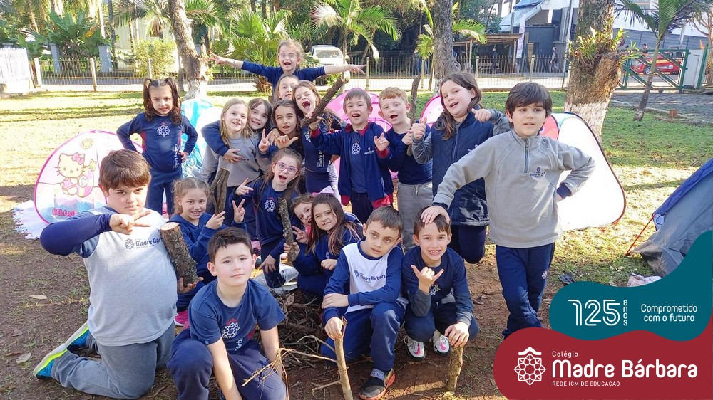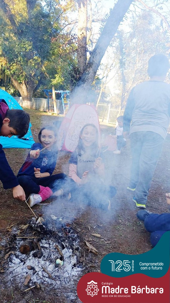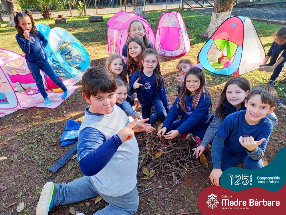 Na quarta-feira, dia 15.06, a turma do 2º ano do Ensino Fundamental – Anos Iniciais do Turno Extracurricular realizou um acampamento no Espaço de Formação Rede ICM. Foram montadas barracas e o encontro contou com música, brincadeiras, fogueira e marshmallow. Uma atividade lúdica que proporcionou o desenvolvimento cognitivo, afetivo e social das crianças.