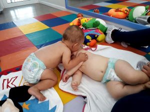 Durante o desenvolvimento do projeto sobre a Linguagem da Adaptação e Acolhida, “Acolhendo com Afetividade”, a turma do nível 1A Manhã vivenciou momentos significativos com muito afeto, envolvendo toque corporal através da massagem com óleo. São momentos e espaços preparados especialmente para nossos bebês, estimulando além da construção de vínculos de afetos, tranquilidade, segurança e a interação com o toque.