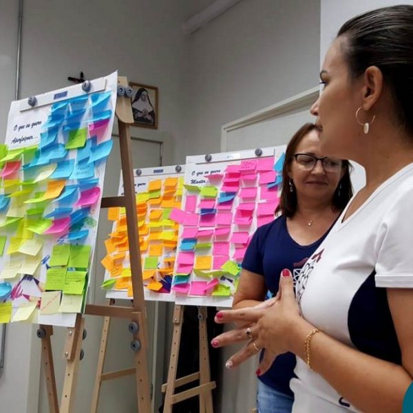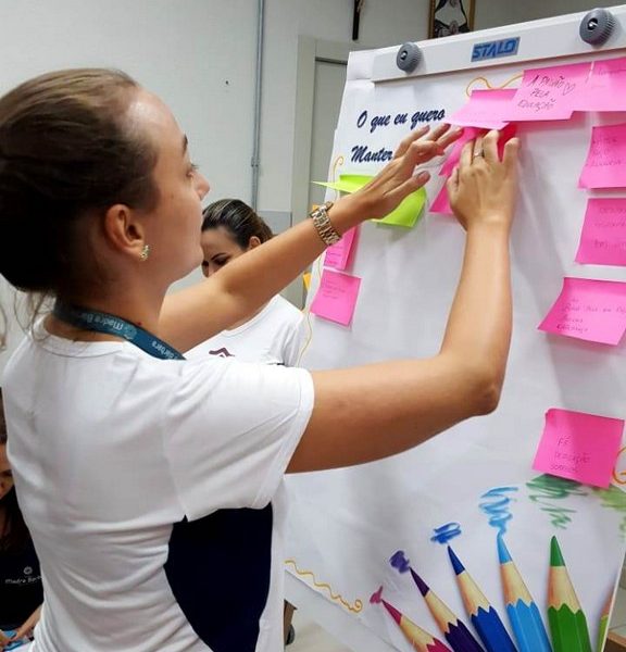 Durante a semana, dentro da programação da Jornada Pedagógica 2020 do Colégio Madre Bárbara – Rede ICM, o Serviço de Orientação Educacional (SOE) desenvolveu com os professores uma dinâmica para acolhida e reflexões dos objetivos e metas para este ano. Entre as atividades realizadas, as orientadores Anice Nunes e Odete Spessatto, fizeram questionamentos para que o grupo pudesse pensar em situações do seu fazer pedagógico, seu papel enquanto educador e seus desafios, instigando o grupo a fortalecer a missão de promover a educação de excelência.