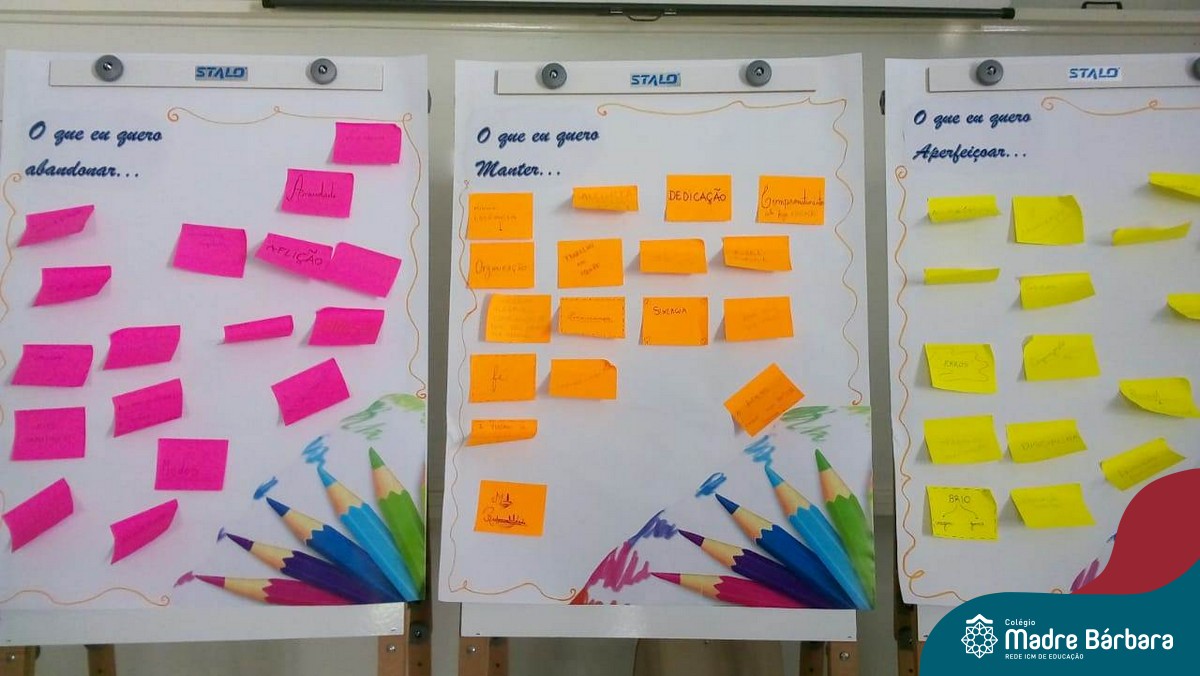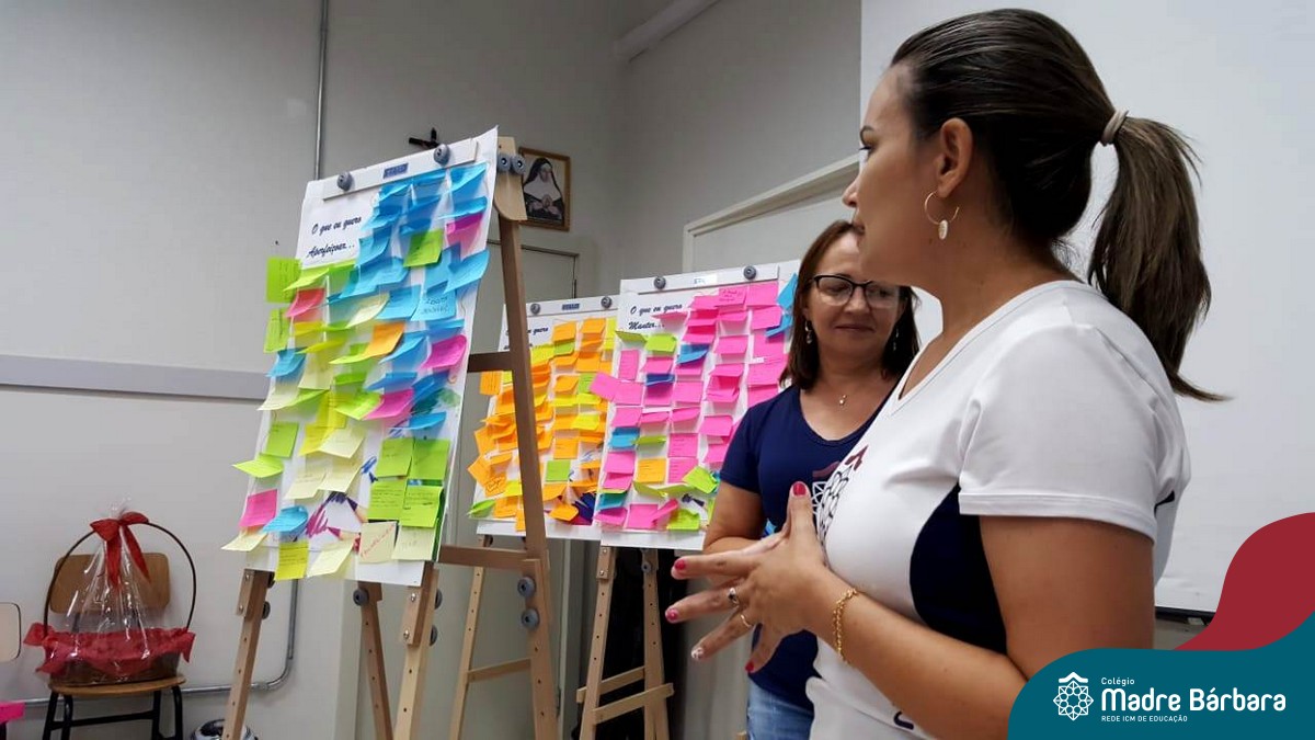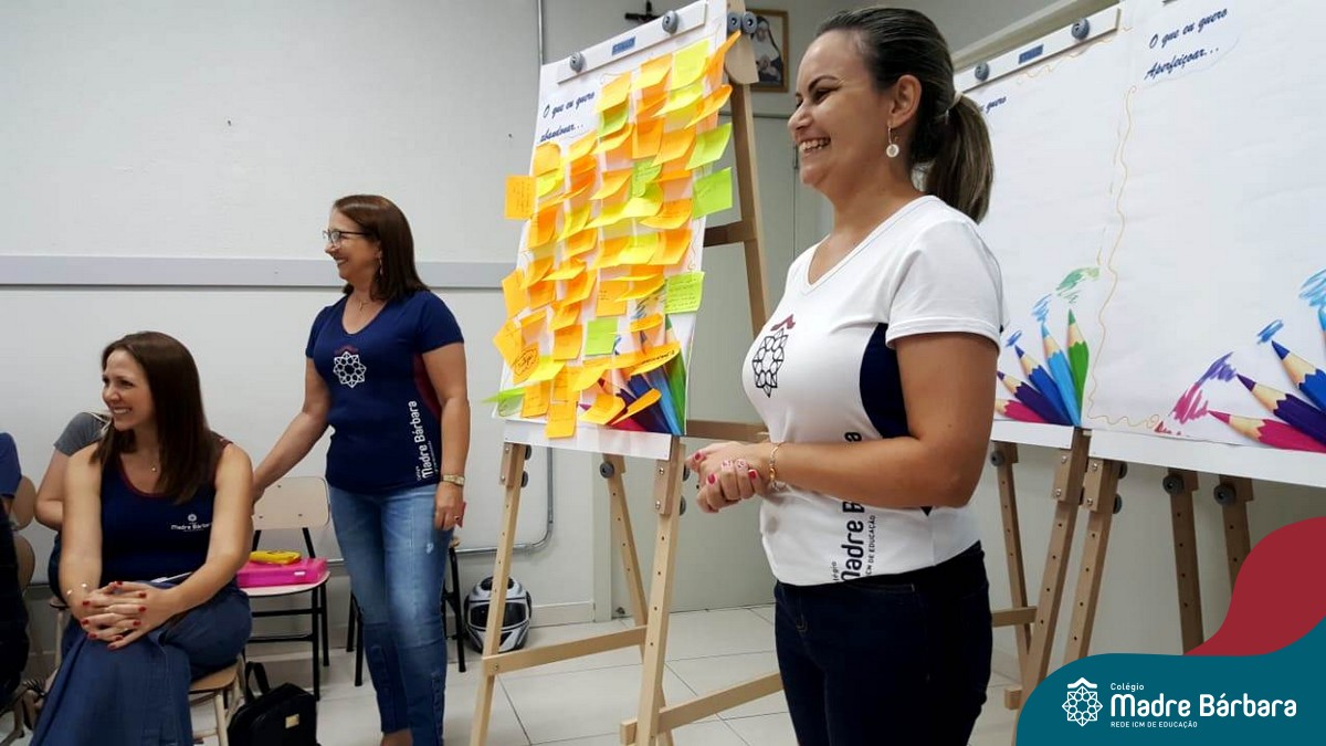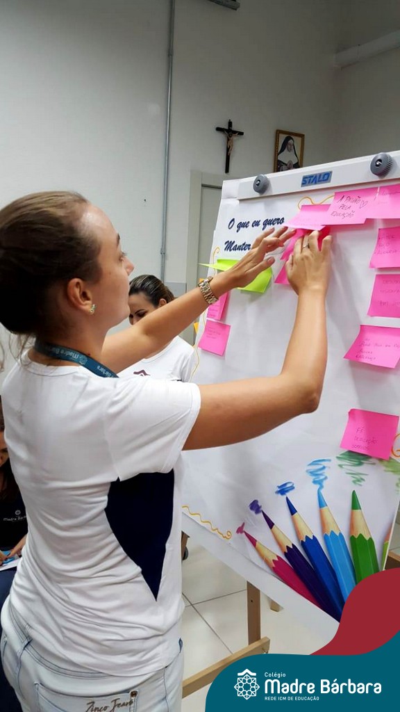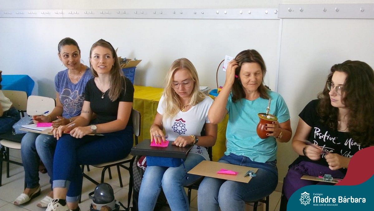 Durante a semana, dentro da programação da Jornada Pedagógica 2020 do Colégio Madre Bárbara – Rede ICM, o Serviço de Orientação Educacional (SOE) desenvolveu com os professores uma dinâmica para acolhida e reflexões dos objetivos e metas para este ano. Entre as atividades realizadas, as orientadores Anice Nunes e Odete Spessatto, fizeram questionamentos para que o grupo pudesse pensar em situações do seu fazer pedagógico, seu papel enquanto educador e seus desafios, instigando o grupo a fortalecer a missão de promover a educação de excelência.