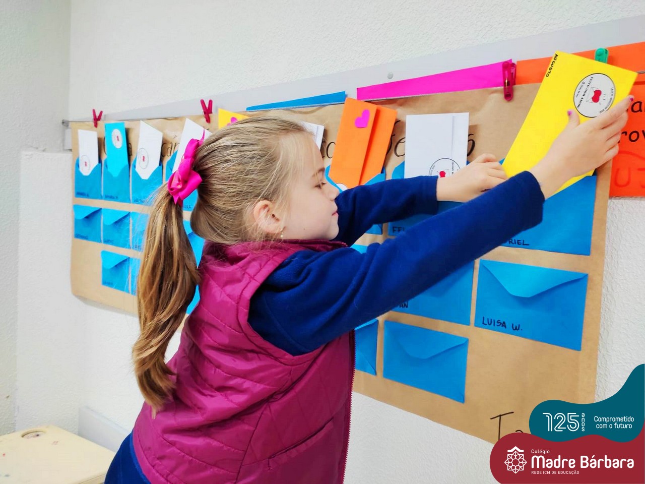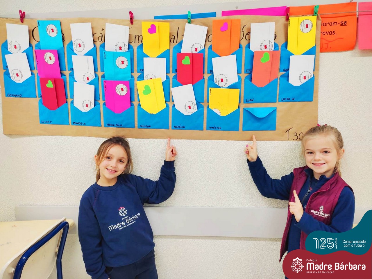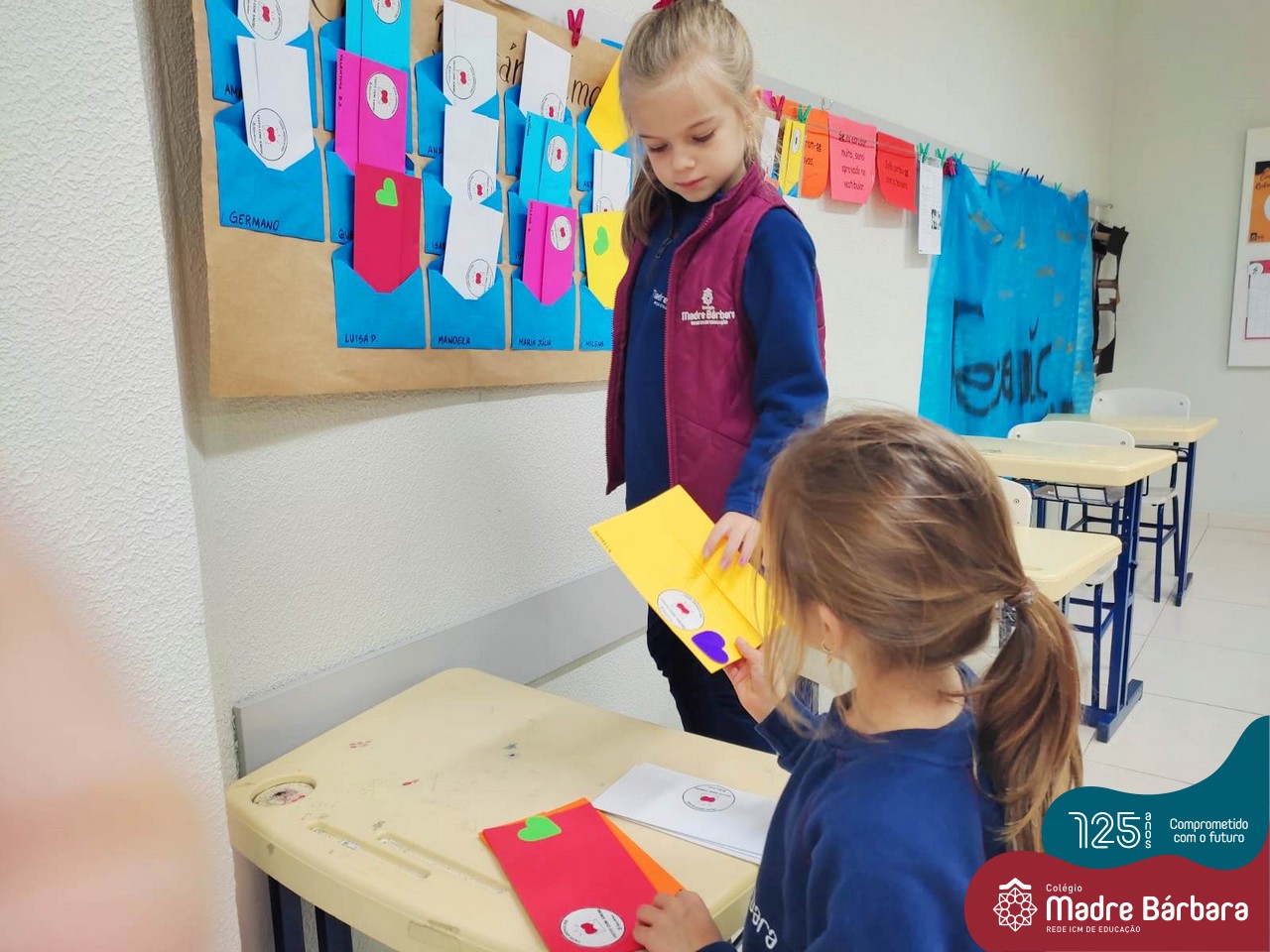 Na manhã desta quinta-feira (30.06) os alunos dos terceirões foram surpreendidos com a primeira correspondência elaborada pelos seus afilhados dos Laços Afetivos. As crianças elaboraram cartinhas expressando seu carinho para com os dindos e depositaram na conta bancária emocional, atividade que também integra o Programa do Líder Em Mim (LEM), na qual a escola trabalha nos Anos Iniciais e Finais do Ensino Fundamental. A orientadora educacional, Anice Nunes conta que é gratificante acompanhar a dedicação, carinho e envolvimento de todos a cada atividade proposta no Projeto.