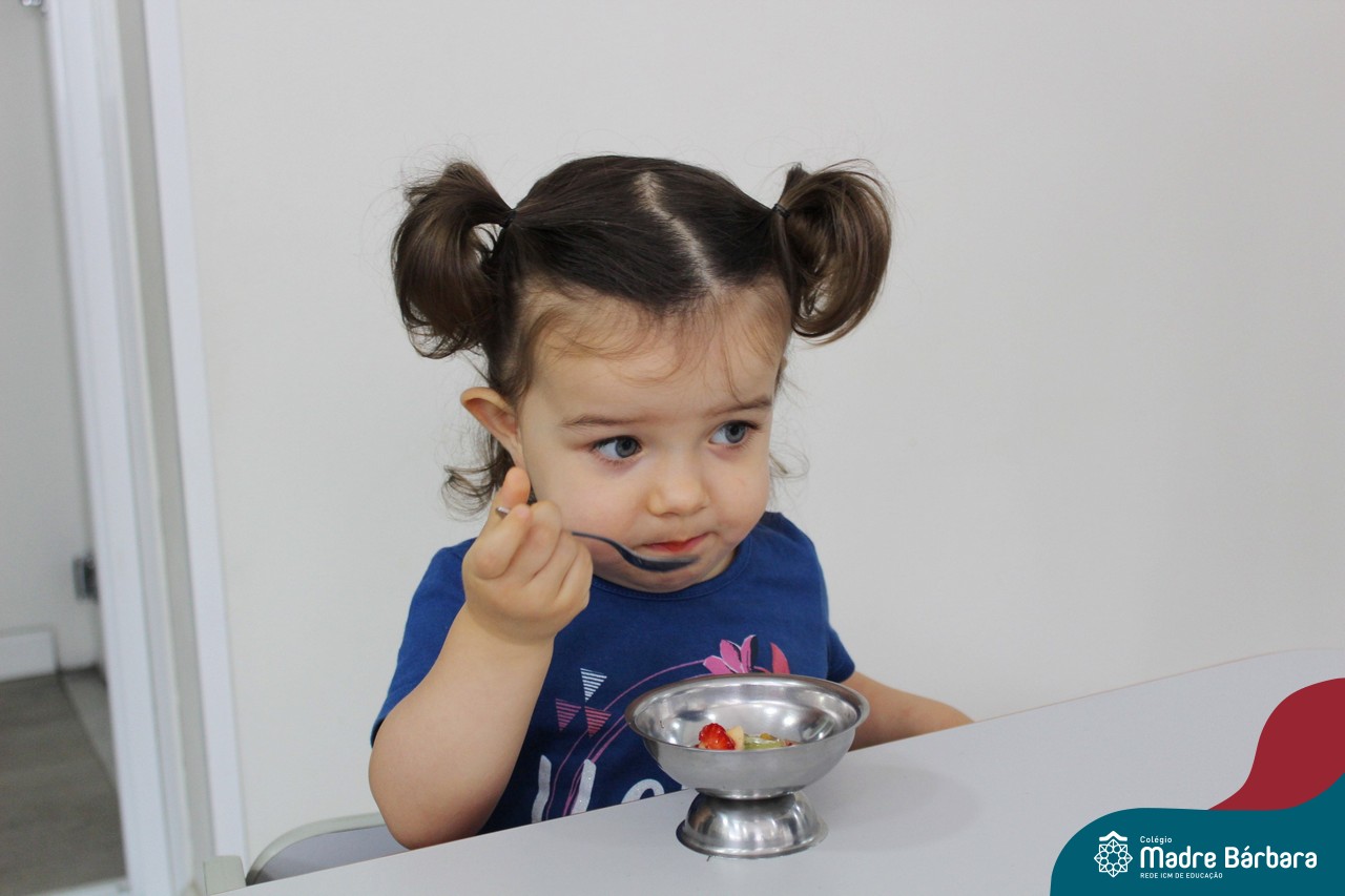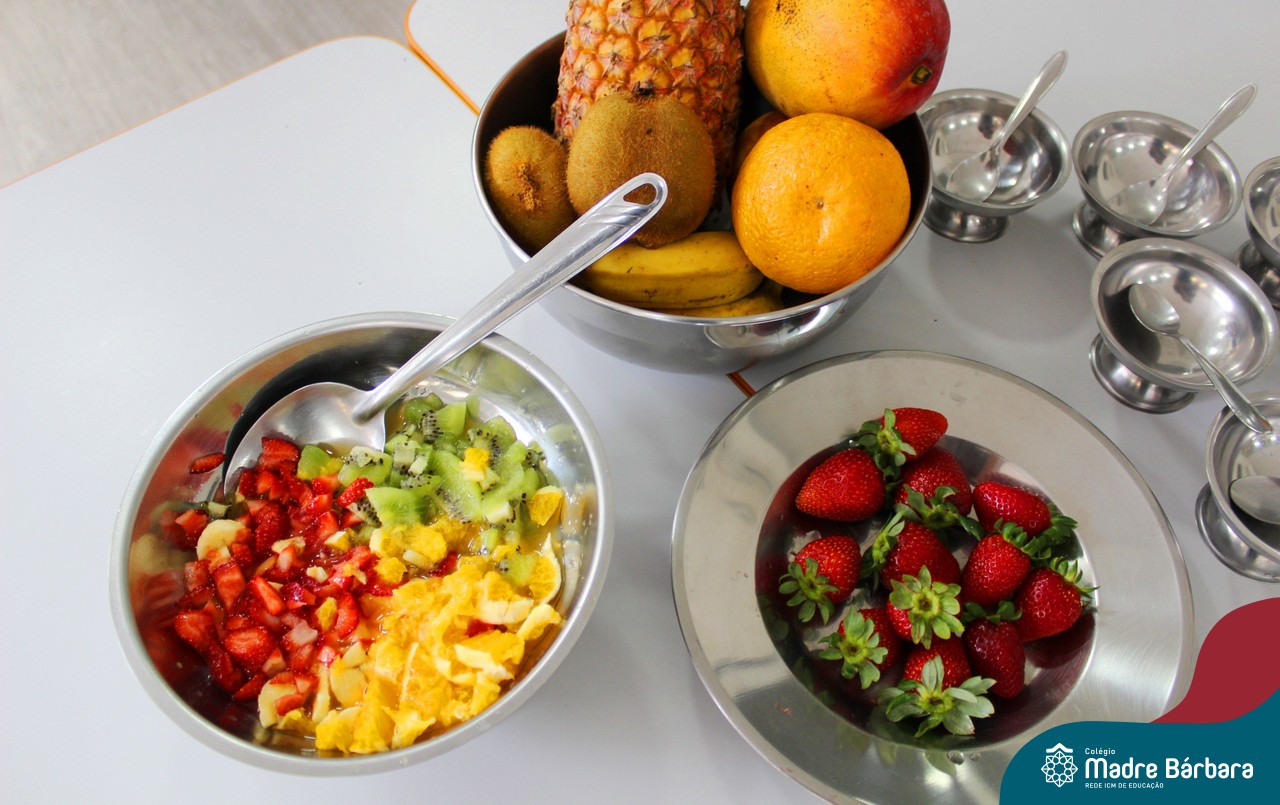 O Nível 1B juntamente com as professoras Deise e Maiara realizaram um lanche especial nesta manhã de sexta feira. Sabendo que a alimentação saudável é fundamental para o desenvolvimento e aprendizado das crianças, foi oferecida uma deliciosa salada de frutas . As crianças se envolveram explorando as texturas, cheiros e sabores das frutas.