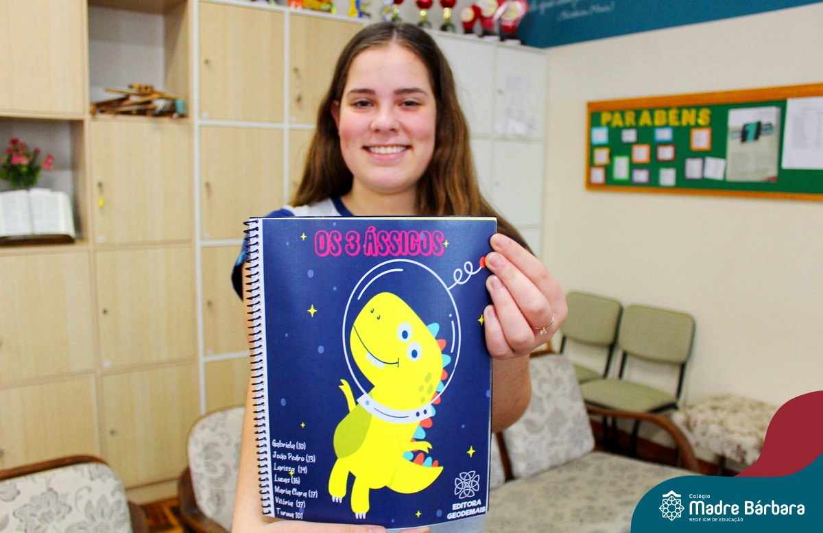 A aluna do 1º ano do Ensino Médio Maria Clara Rodrigues (15) adorou a experiência de criar um livro de história. “Pensamos o que gostávamos quando crianças, o que nos chamava mais atenção e escolhemos criar uma história com fatos reais, mesclada com a fantasia”. O grupo de Maria Clara teve como tema principal o período jurássico para atrair a curiosidade das crianças. “Fazer um trabalho prático nos permite aprender o conteúdo de uma forma diferente, facilitando ainda mais nosso aprendizado”.