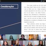 As reflexões foram feitas sobre o tema da variação linguística, parte fundamental da cultura de cada um. A professora Aline conta que antes, a forma de socializar o conhecimento produzido seria através de apresentações no espaço escolar e em tempos de pandemia, a live é uma forma de mostrar para a comunidade escolar a potencialidade dos estudos dos alunos. “Diante da qualidade das pesquisas elaboradas pelos alunos do 1º ano, a Live se constituiu como um meio para divulgar com a comunidade esses resultados. Havia o desafio, mas os alunos foram receptivos e aceitaram realizar essa apresentação nesse formato diferente”, diz a professora.