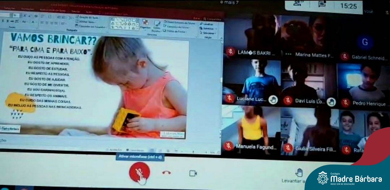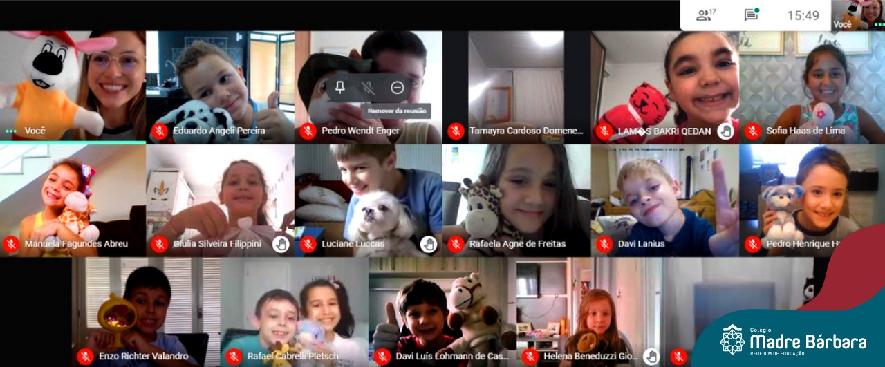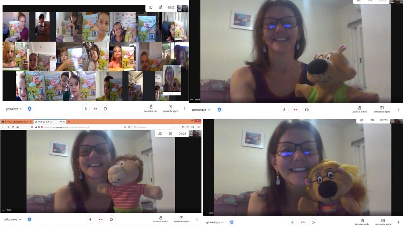 As professoras trabalharam sobre como os alunos veem, ouvem e sentem uma sala de aula feliz e inspiradora. No decorrer da aula receberam visitas muito especiais, alguns integrantes da “Turma da floresta”, vieram contribuir e alegrar a garotada, despertando o interesse na fala e na participação das crianças, tornando a nossa sala de aula virtual um ambiente acolhedor e com muita sinergia.