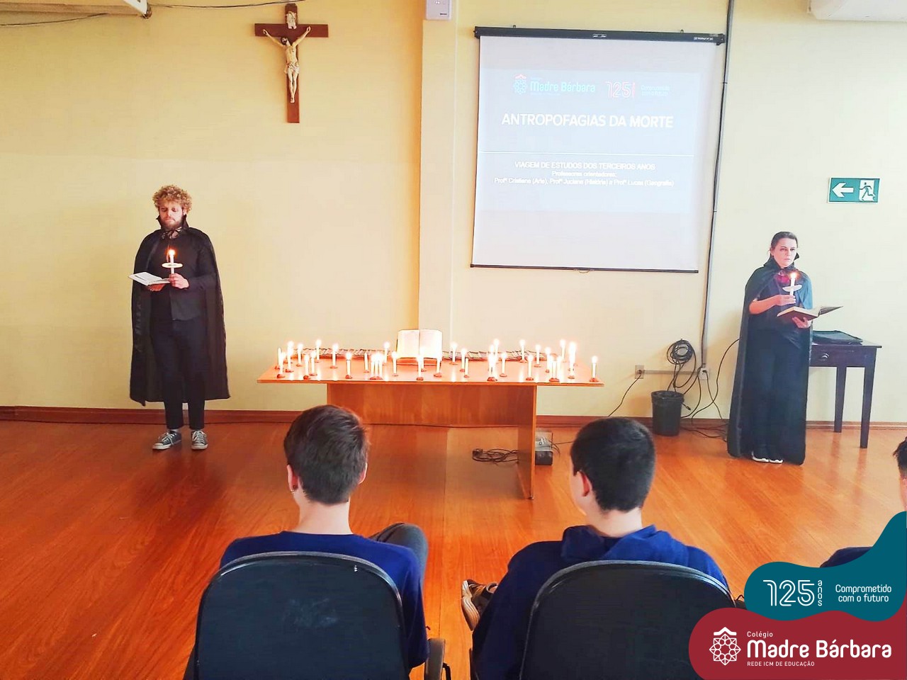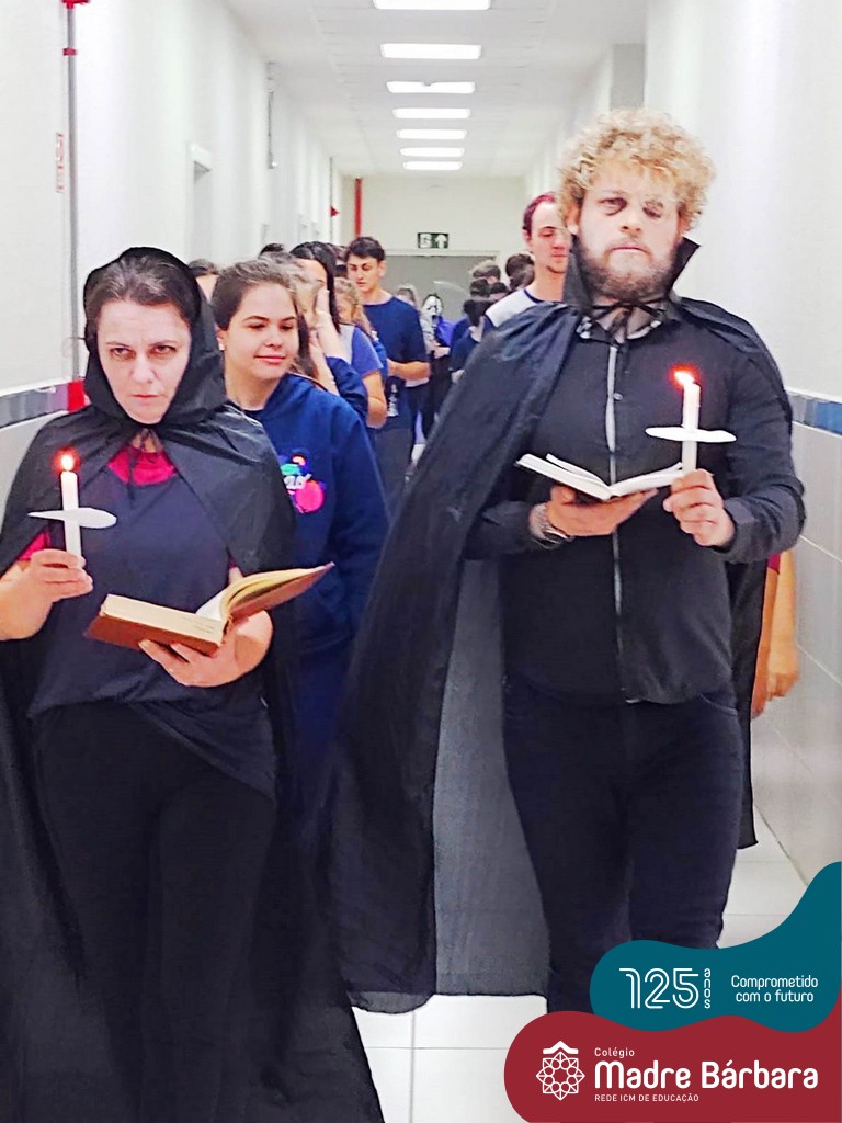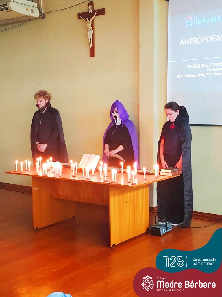 Os estudantes dos terceiros anos do ensino médio foram convidados a participar de uma jornada que se iniciou hoje: através de uma atividade proposta pelas disciplinas de Geografia, História e Arte, os professores Lucas Schneider, Juciane Sehn e Cristiane Schneider conduziram o projeto e apresentaram aos alunos à proposta “Antropofagias da Morte”, cujo objetivo é proporcionar conhecimentos e vivências do campo cemiterial Santa Casa como lócus de expressão material, simbólica, sociocultural, temporal, espacial e artística sobre a Morte.