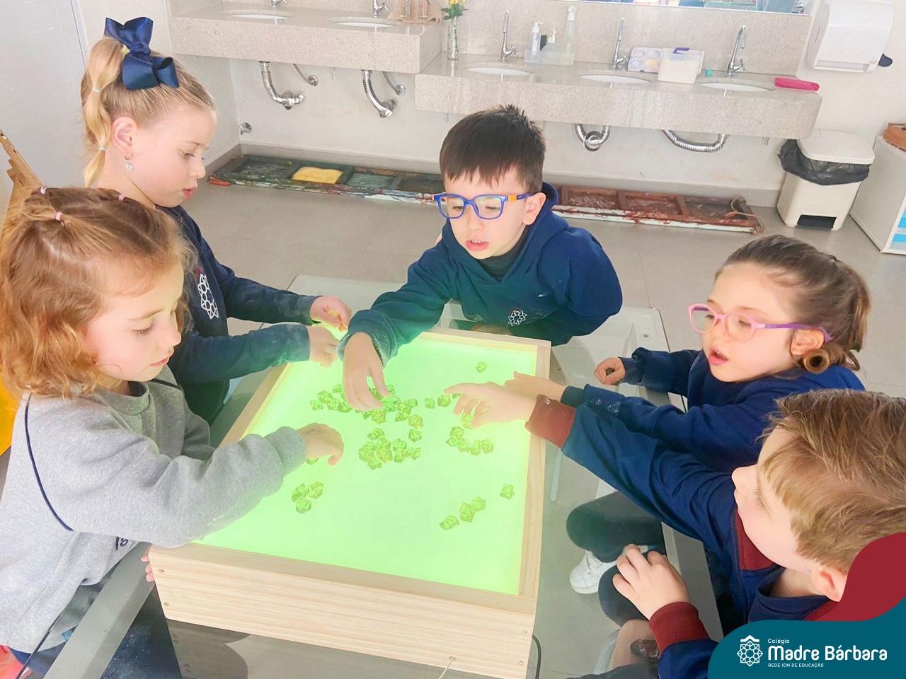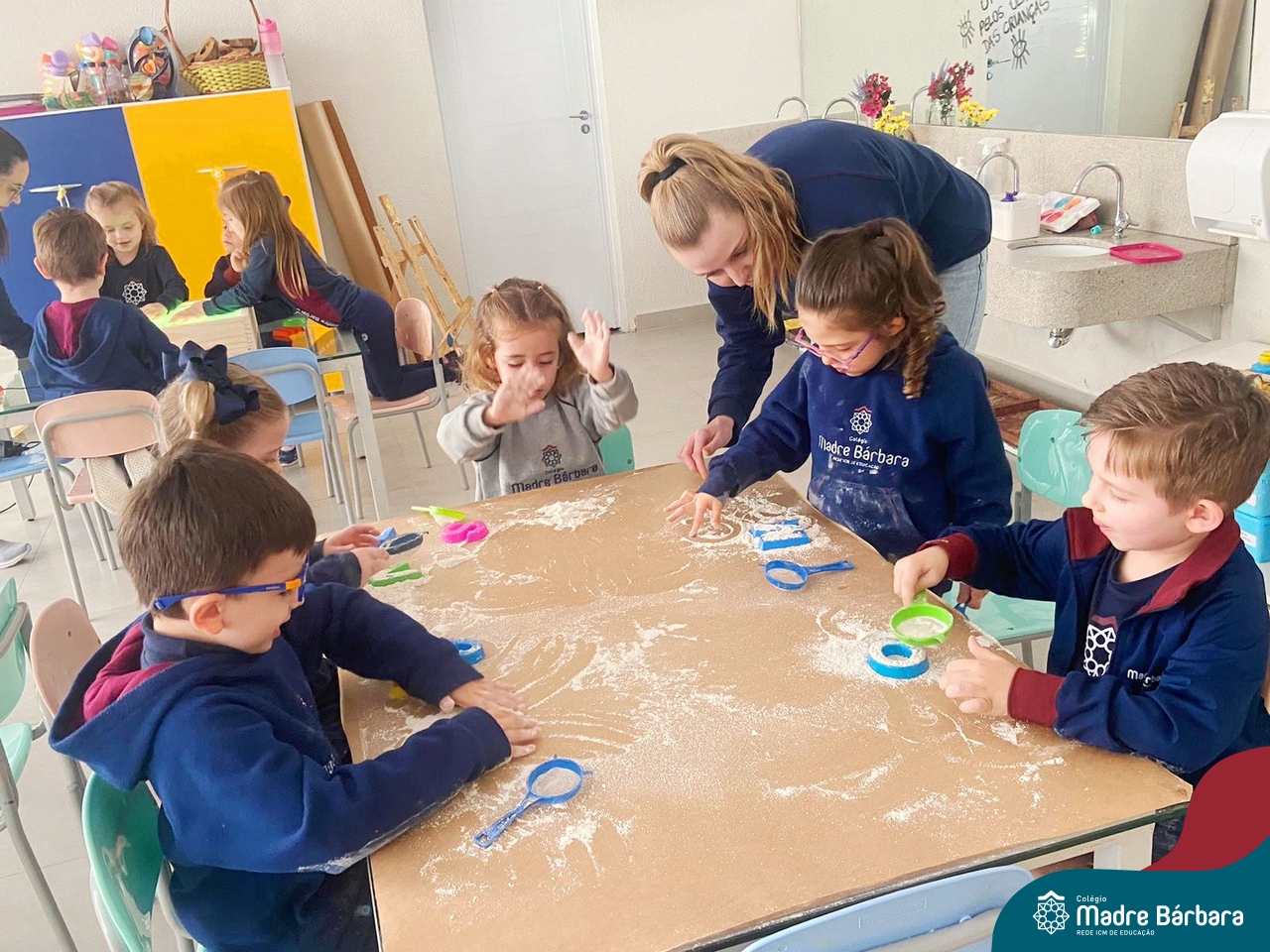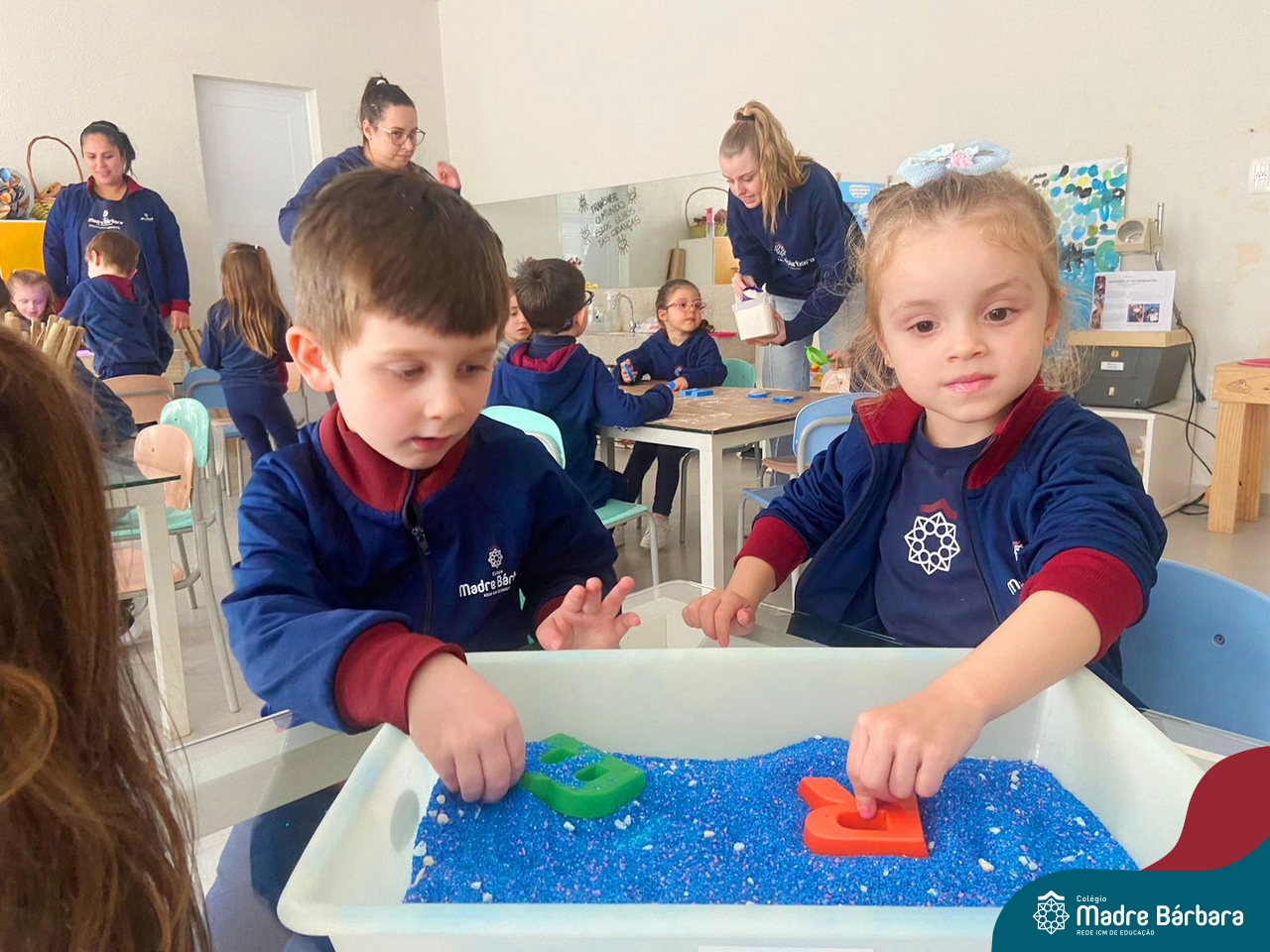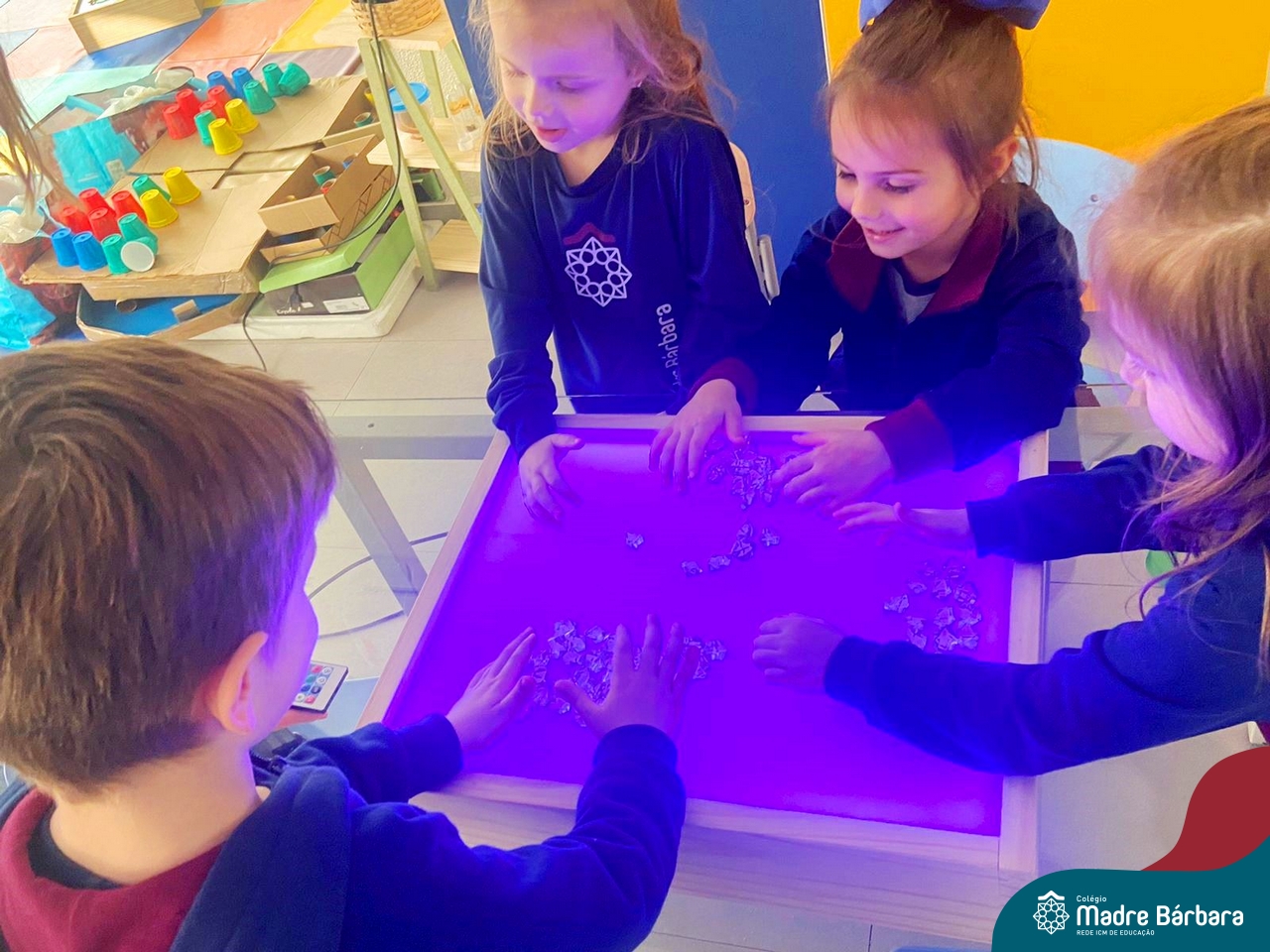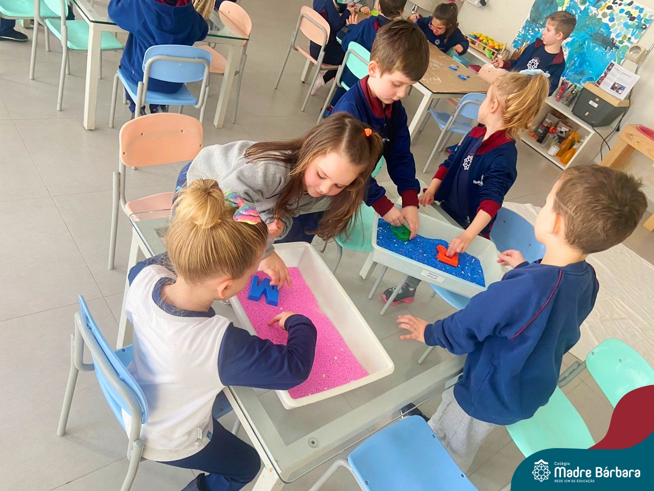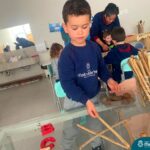 O trabalho com a primeira letra do nome é uma das muitas situações de aprendizagem desenvolvidas pelo Nível 4. As crianças das turminhas 4C e 4D exploraram, de forma lúdica, a letra inicial do seu nome e também as demais letras, no ateliê da escola. Foram momentos de encantamento e criatividade ao descobrir jeitos diferentes de construir as letras usando materiais diversos, como: elementos da natureza, areia colorida, farinha e a mesa de luz.