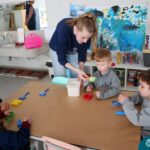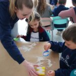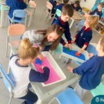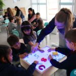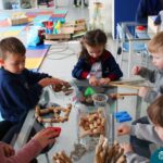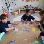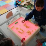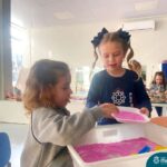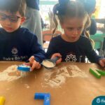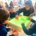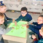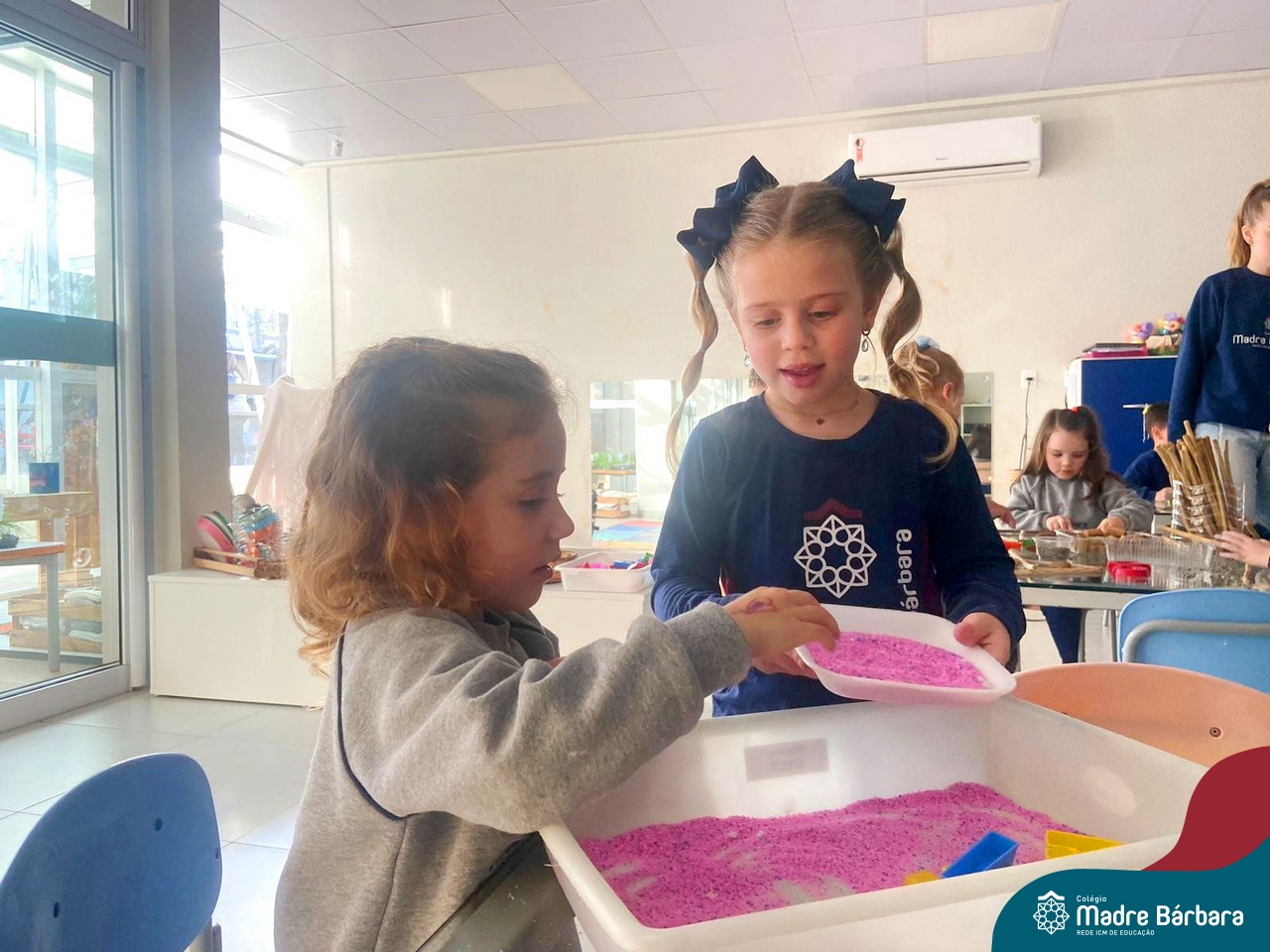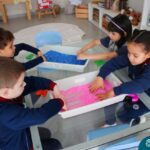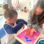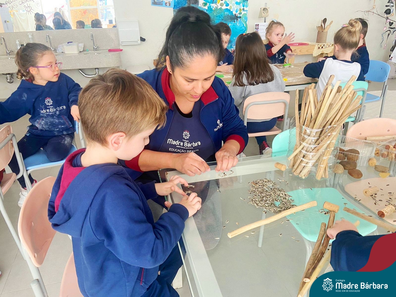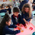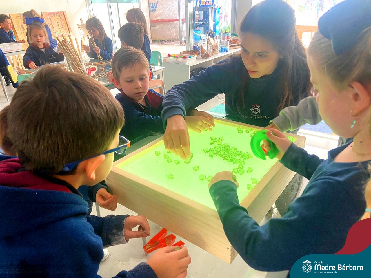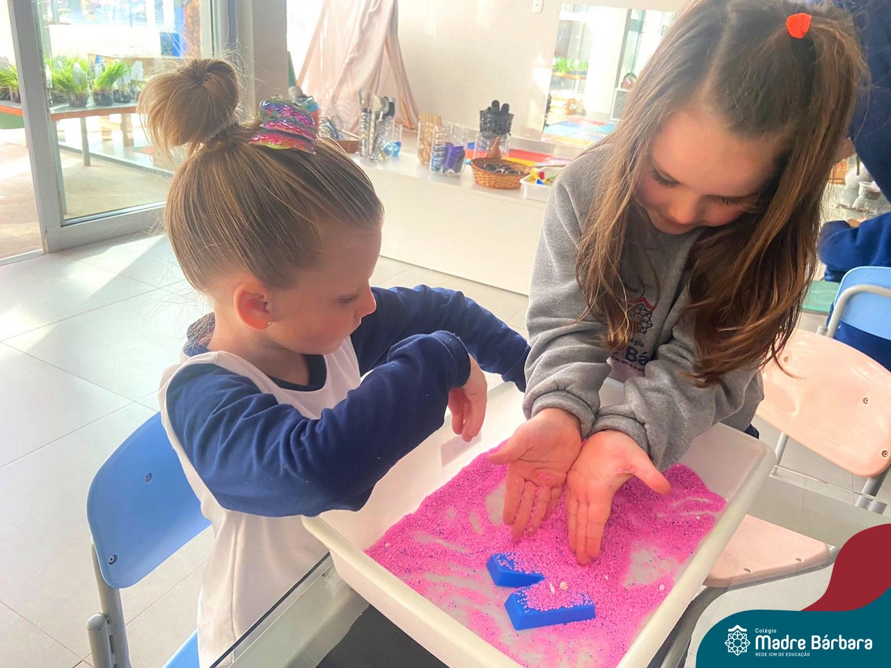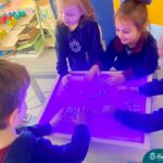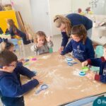 O trabalho com a primeira letra do nome é uma das muitas situações de aprendizagem desenvolvidas pelo Nível 4. As crianças das turminhas 4C e 4D exploraram, de forma lúdica, a letra inicial do seu nome e também as demais letras, no ateliê da escola. Foram momentos de encantamento e criatividade ao descobrir jeitos diferentes de construir as letras usando materiais diversos, como: elementos da natureza, areia colorida, farinha e a mesa de luz.