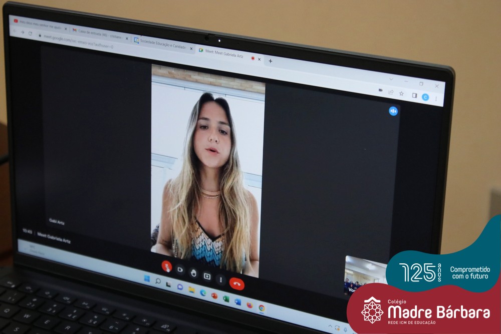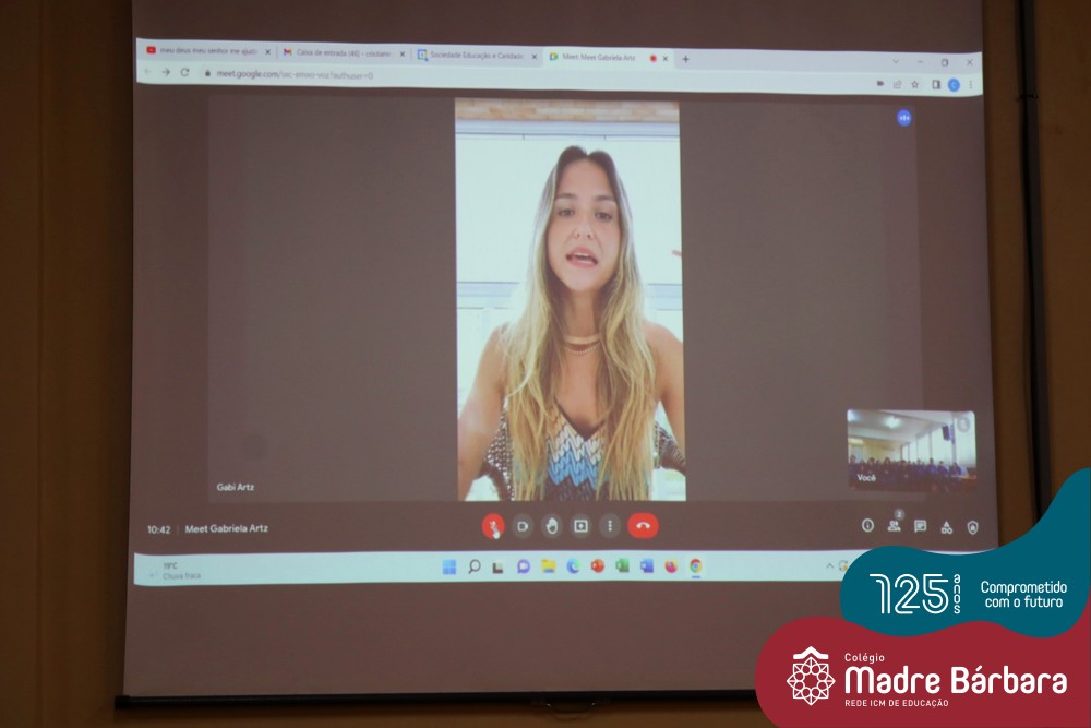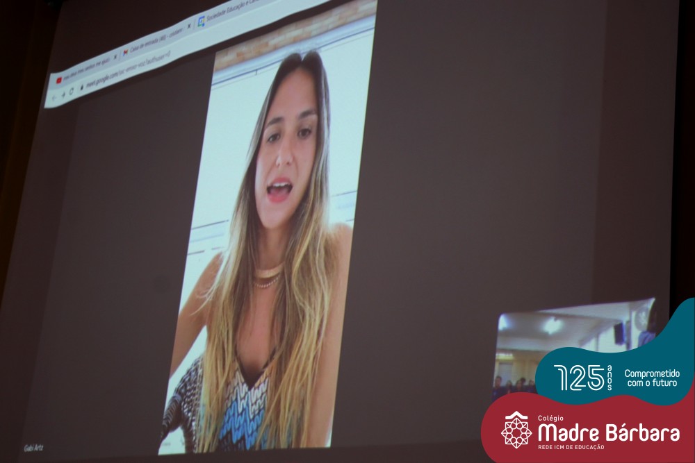 Pelo segundo ano consecutivo, os estudantes das turmas de 2ºs anos do Ensino Médio do Colégio Madre Bárbara – Rede ICM puderam participar de um encontro especial através do Google Meet com a artista Gabi Artz, que trabalha com Body Art, também conhecida como arte do corpo, onde a principal característica é utilizar o corpo como intervenção para a realização do trabalho artístico. A atividade foi proposta pela professora de arte Cristiane Schneider.