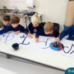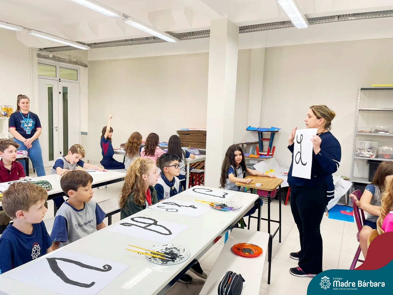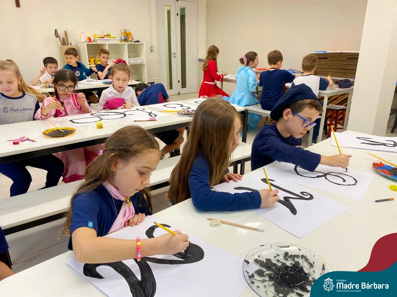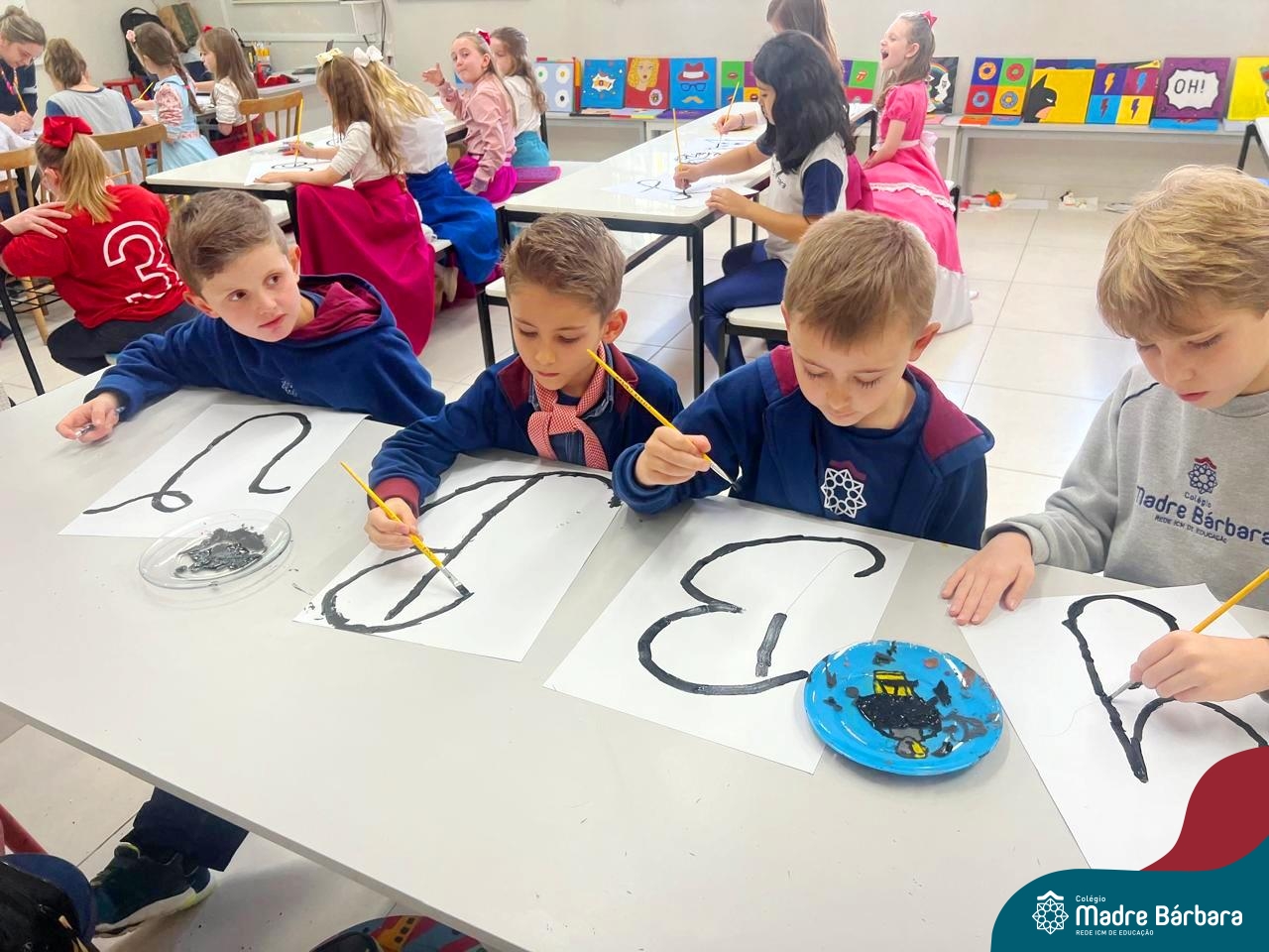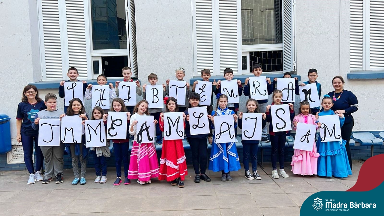 As turmas dos Segundos Anos continuam em busca de aprender mais sobre a “Origem das letras”. Para enriquecer ainda mais o trabalho para a Mostra Cientifico-Pedagógica, as professoras convidaram a professora Cristine Schneider de Artes, do Colégio Madre Bárbara, para explorar a técnica do lettering. Foi uma experiência incrível! Os alunos vivenciaram a experiência com muito proatividade e dedicação. Estavam encantados com as letras e descobriram que a tradução da palavra lettering, significa arte das letras bonitas, como realmente são. Todos realizaram a experiência de fazer a letra inicial de seu nome em folha A3 que posteriormente será decorada criando assim uma obra de arte, incentivando ainda mais a criatividade dos alunos.