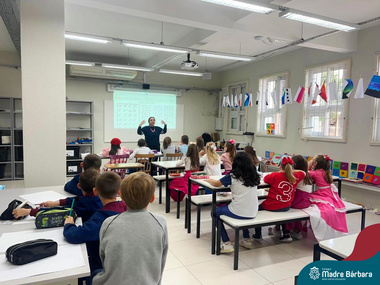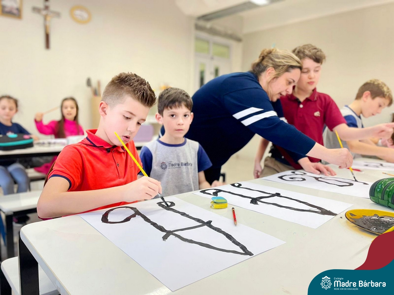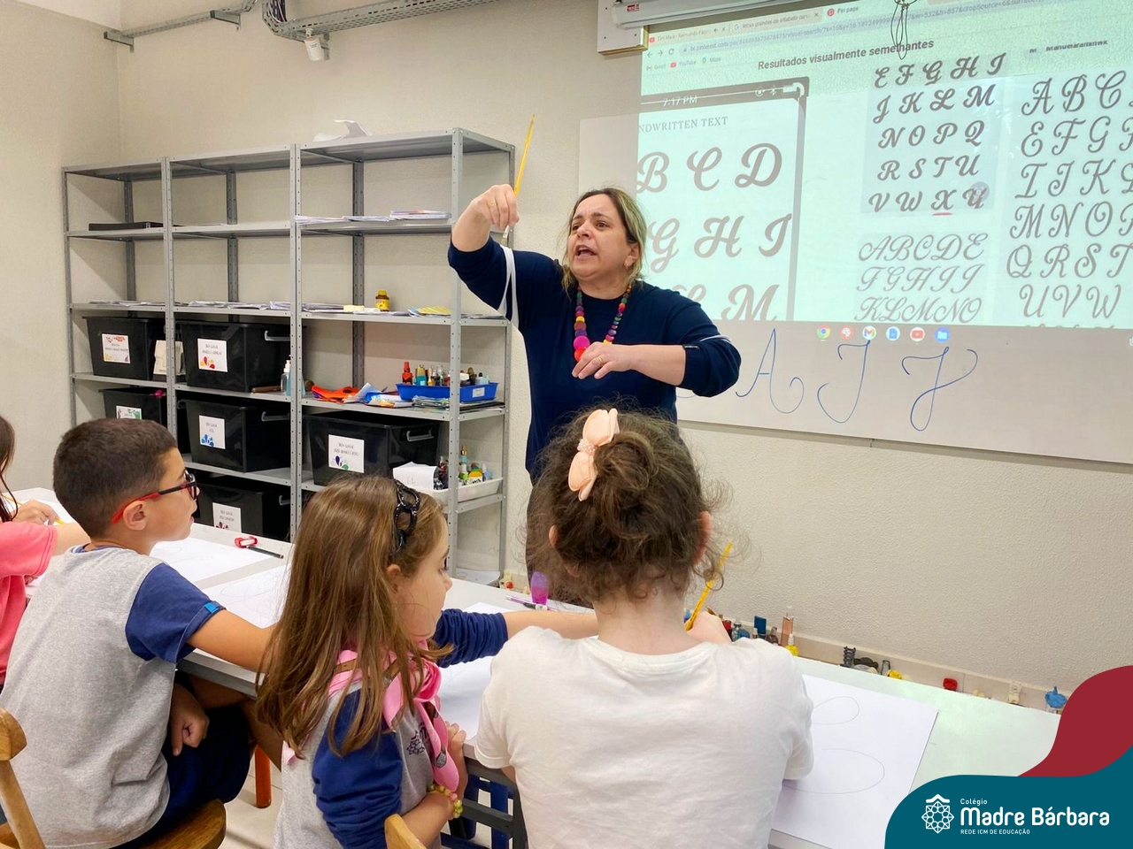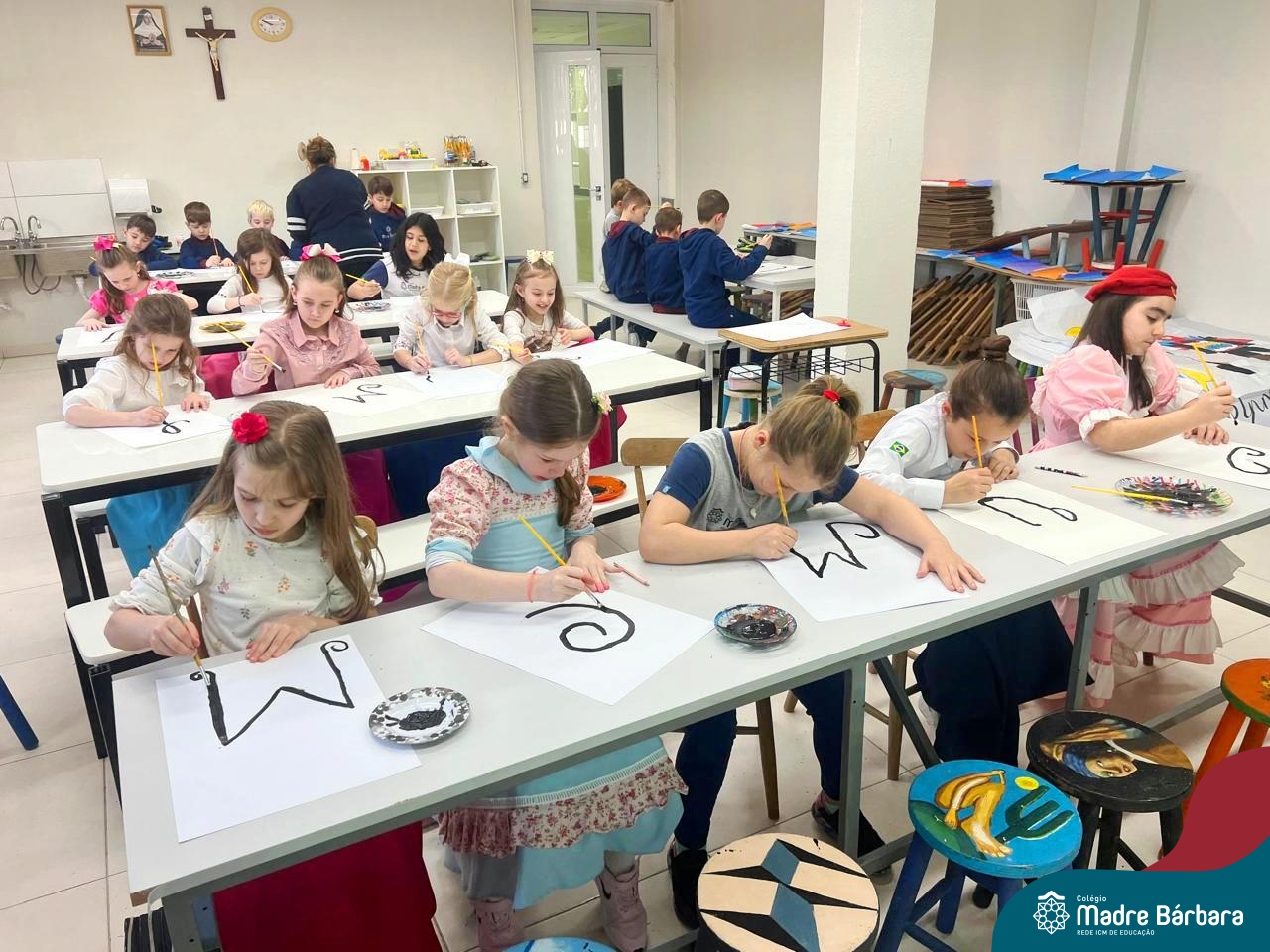 As turmas dos Segundos Anos continuam em busca de aprender mais sobre a “Origem das letras”. Para enriquecer ainda mais o trabalho para a Mostra Cientifico-Pedagógica, as professoras convidaram a professora Cristine Schneider de Artes, do Colégio Madre Bárbara, para explorar a técnica do lettering. Foi uma experiência incrível! Os alunos vivenciaram a experiência com muito proatividade e dedicação. Estavam encantados com as letras e descobriram que a tradução da palavra lettering, significa arte das letras bonitas, como realmente são. Todos realizaram a experiência de fazer a letra inicial de seu nome em folha A3 que posteriormente será decorada criando assim uma obra de arte, incentivando ainda mais a criatividade dos alunos.