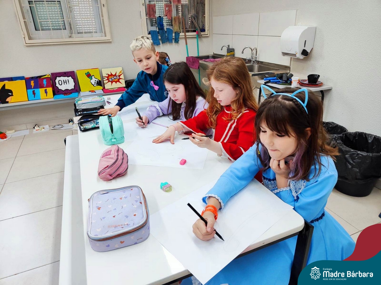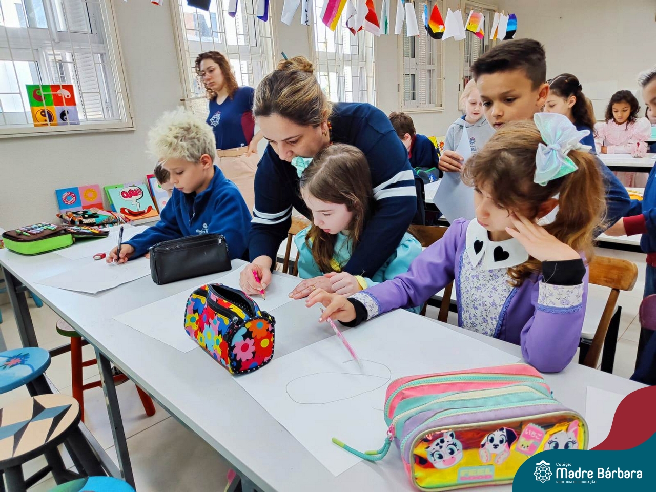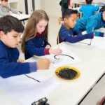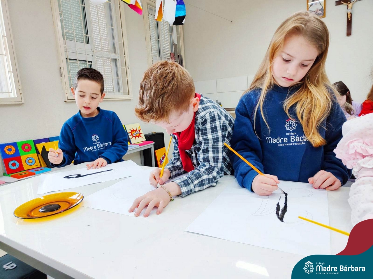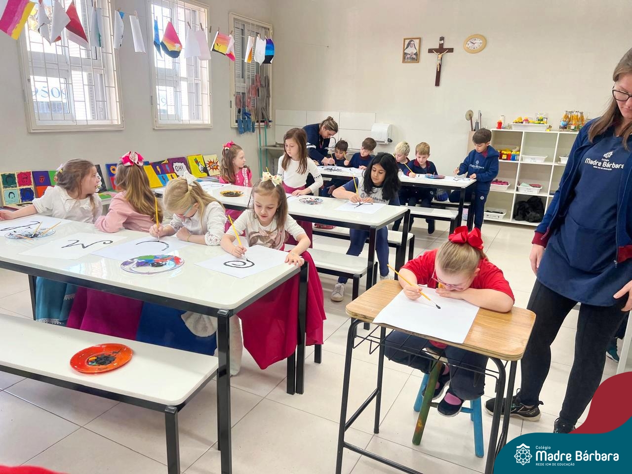As turmas dos Segundos Anos continuam em busca de aprender mais sobre a “Origem das letras”. Para enriquecer ainda mais o trabalho para a Mostra Cientifico-Pedagógica, as professoras convidaram a professora Cristine Schneider de Artes, do Colégio Madre Bárbara, para explorar a técnica do lettering. Foi uma experiência incrível! Os alunos vivenciaram a experiência com muito proatividade e dedicação. Estavam encantados com as letras e descobriram que a tradução da palavra lettering, significa arte das letras bonitas, como realmente são. Todos realizaram a experiência de fazer a letra inicial de seu nome em folha A3 que posteriormente será decorada criando assim uma obra de arte, incentivando ainda mais a criatividade dos alunos.