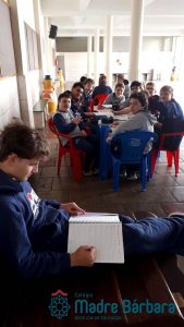 06Os alunos da turma 82 da professora Rosana Fagundes fizeram hoje pela manhã (05) exercícios de revisão de ciências sobre o Sistema Endócrino. As atividades foram realizadas em grupo, no pátio da escola.