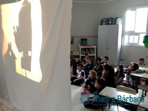 A turma 11 adora ouvir, contar, dramatizar e criar histórias. Foi a partir deste contexto que a professora Jaine propôs aos alunos, que em grupos criassem histórias. Em seguida, as crianças, elaboraram fantoches para ilustrar e apresentar, utilizando o retroprojetor. A professora acredita que é através destes momentos que os alunos conseguem extrair e expressar a potencialidade da imaginação nas suas criações. “Estas situações valorizam o protagonismo e ao mesmo tempo a escuta atenta em relação à apresentação dos colegas”, diz.