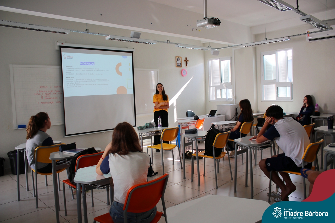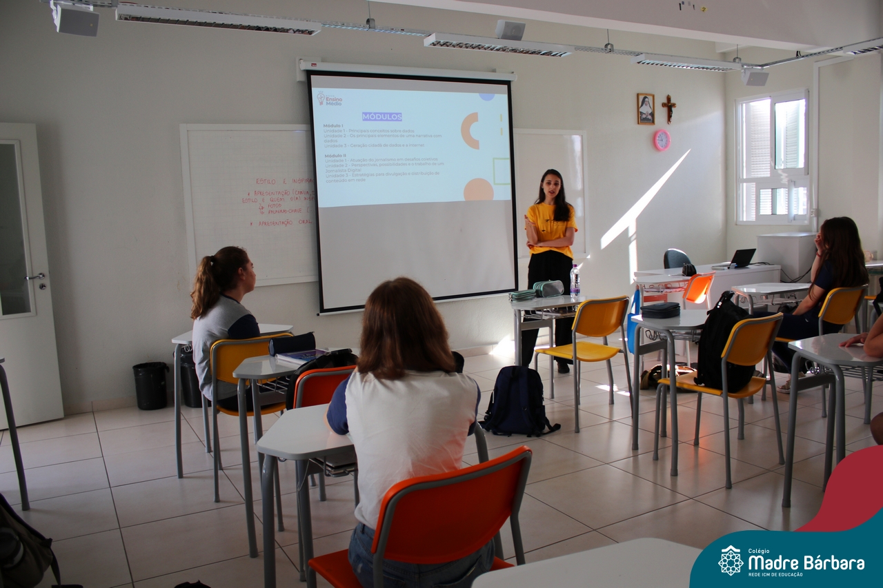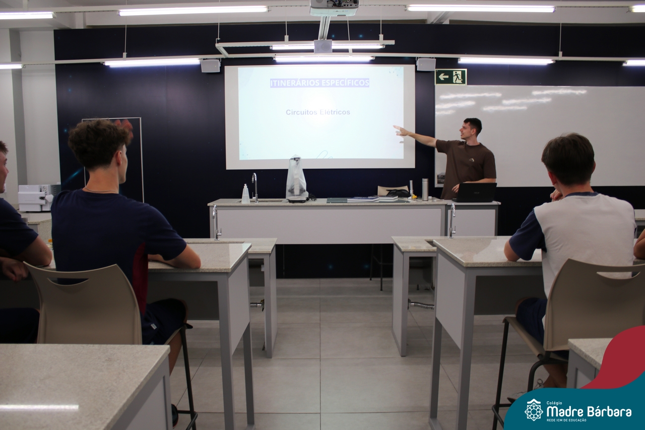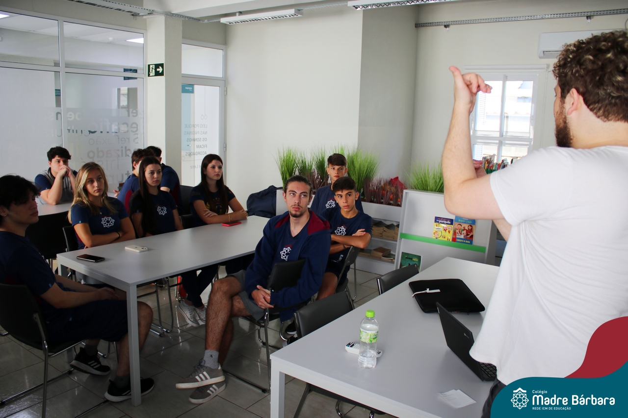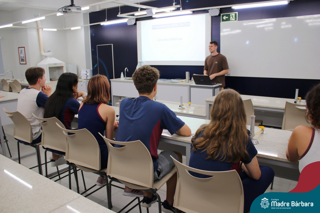 Na tarde de quarta-feira (20.02) os estudantes dos 2ºs e 3ºs anos do Ensino Médio participaram de um momento de apresentação dos Itinerários Formativos com os Professores e Professoras. Entre os Itinerários que serão realizados neste ano estão: para os 2ºs anos: Investigação Forense, Jornalismo Digital, A história das cidades e os desafios urbanos contemporâneos, Moradias: espaços, formas e impactos sociais, além das eletivas: Cultura e identidade, Imunologia e Saúde Pública, Canção Popular e literatura e Gamificação. Para os 3ºs anos: Circuitos Elétricos, Literatura e Sociedade, Aprendizagens interculturais e as eletivas Eficiência energética: entre o passado e o futuro, Oficina de Redação e Sociologia e ciência: desvendando mundos.