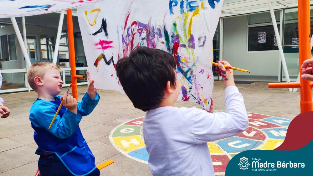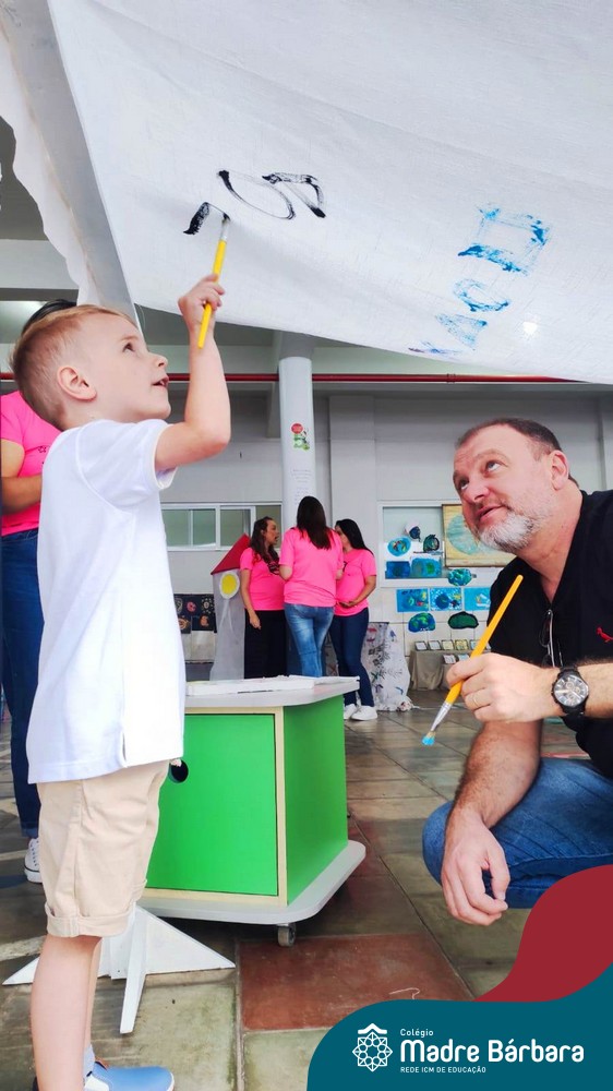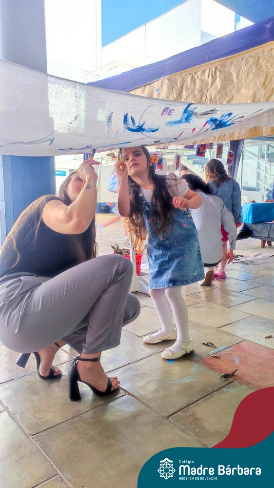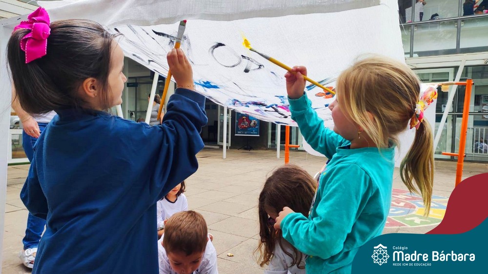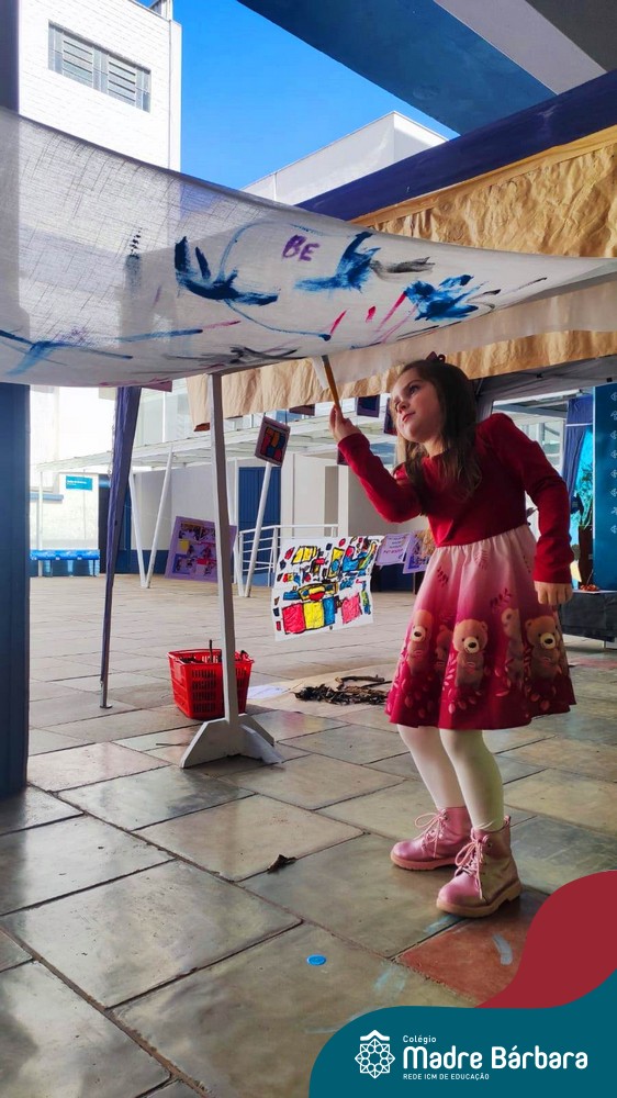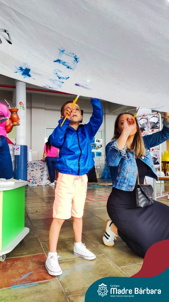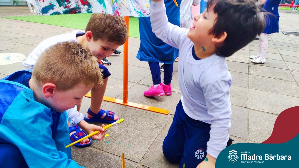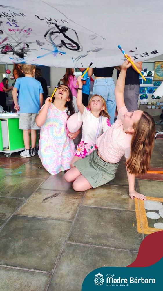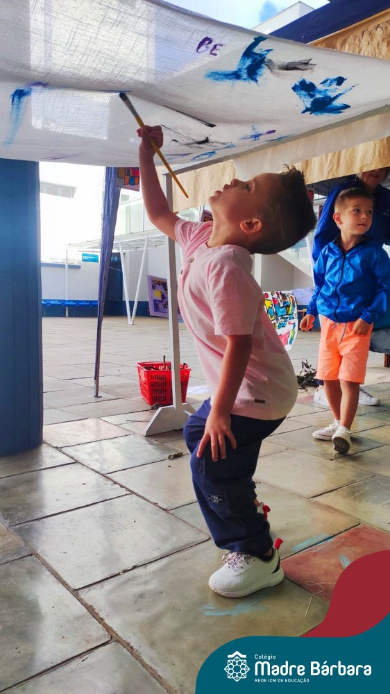 O nível 4A, juntamente com a professora Julia Bresciani e a monitora Aline Diniz estão trabalhando o projeto “Arte por toda parte e de todo o jeito”, um estudo sobre artistas plásticos que, em suas obras, exploram diferentes materiais de diversas formas. Dentre os artistas conhecidos está o pintor italiano Michelangelo. Entre suas principais obras está a pintura do teto da Capela Sistina, no Vaticano e pensando em explorar a pintura de uma nova perspectiva, as crianças foram desafiadas a pintar de baixo para cima, assim como o artista fez em seu ilustre trabalho. A obra foi iniciada na nossa linda Mostra Pedagógica, onde as famílias e as crianças foram convidadas a deixar a sua marca e, nesta semana, a turma finalizou o trabalho, num dia muito gostoso, no pátio da escola. Foi uma diversão total, a vivência foi muito significativa e a turma pode experimentar uma maneira diferente de pintar e se divertir.