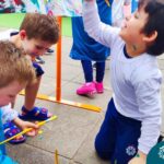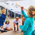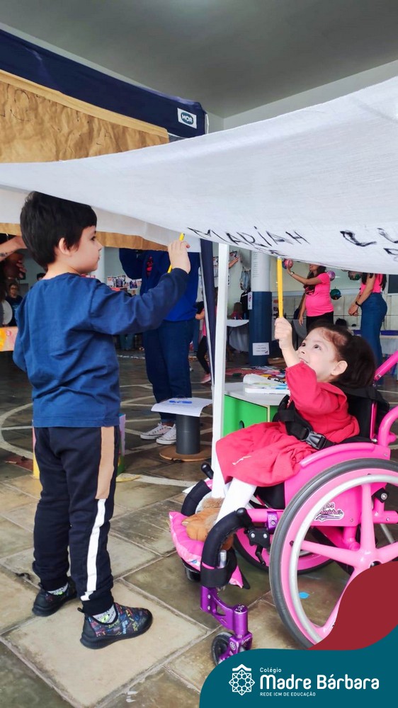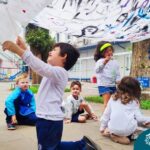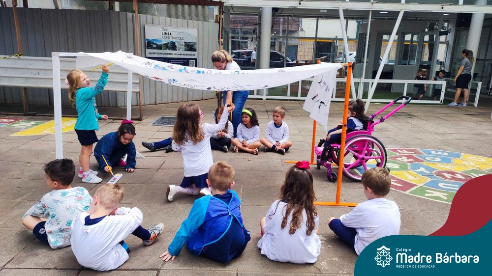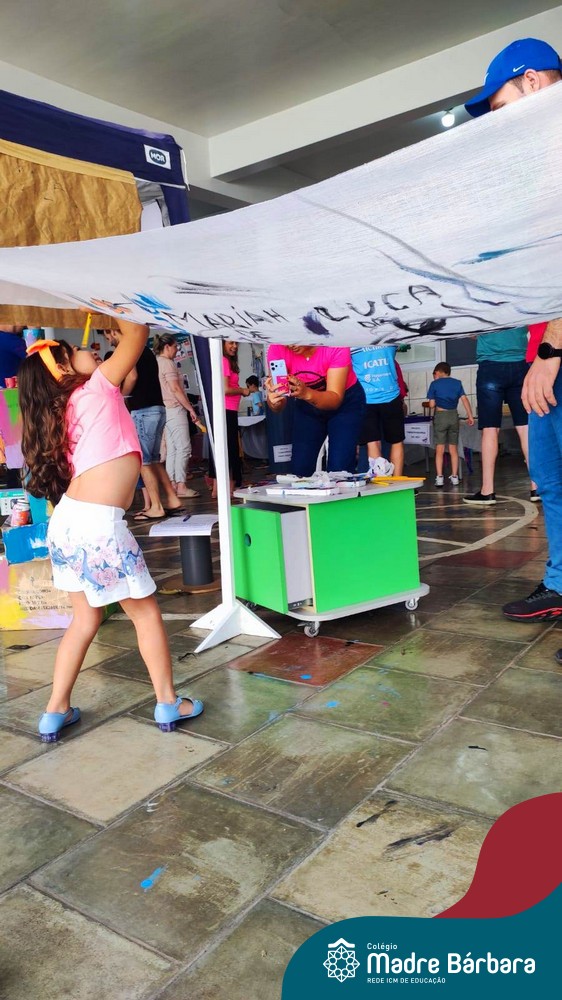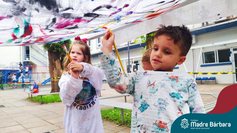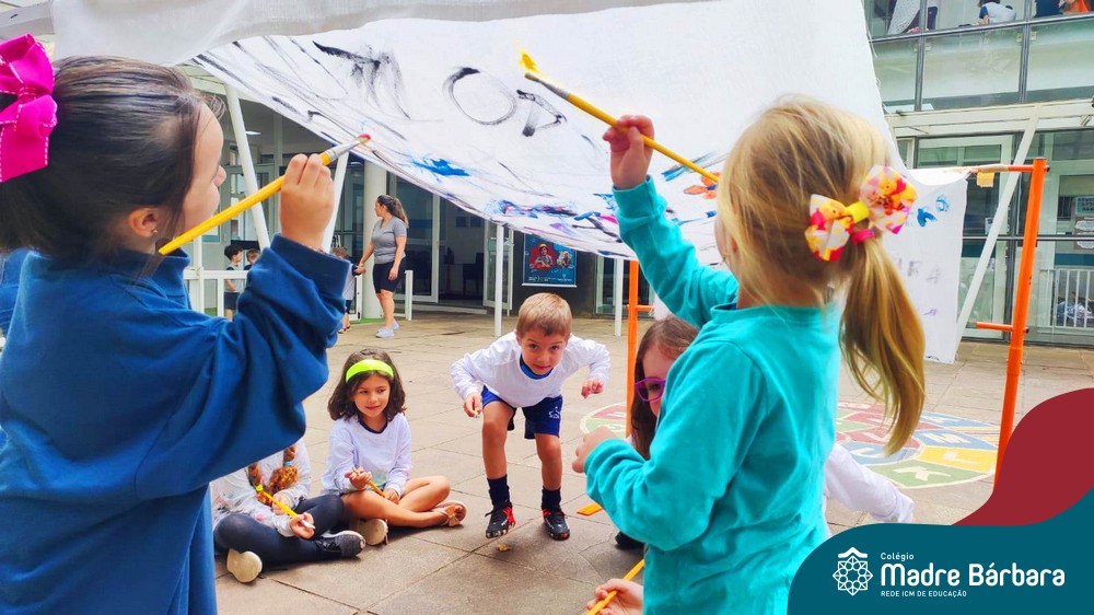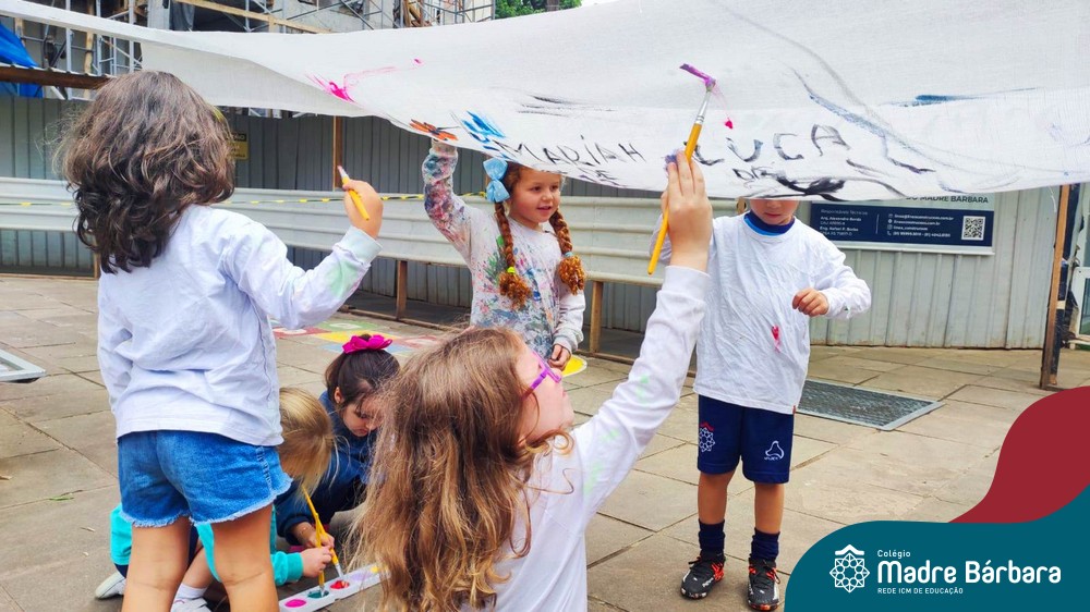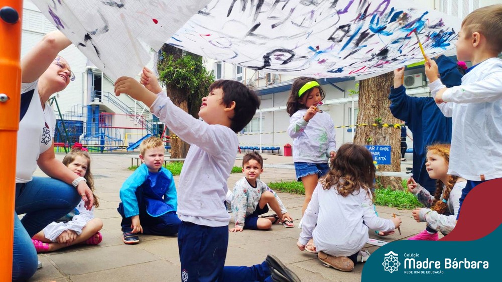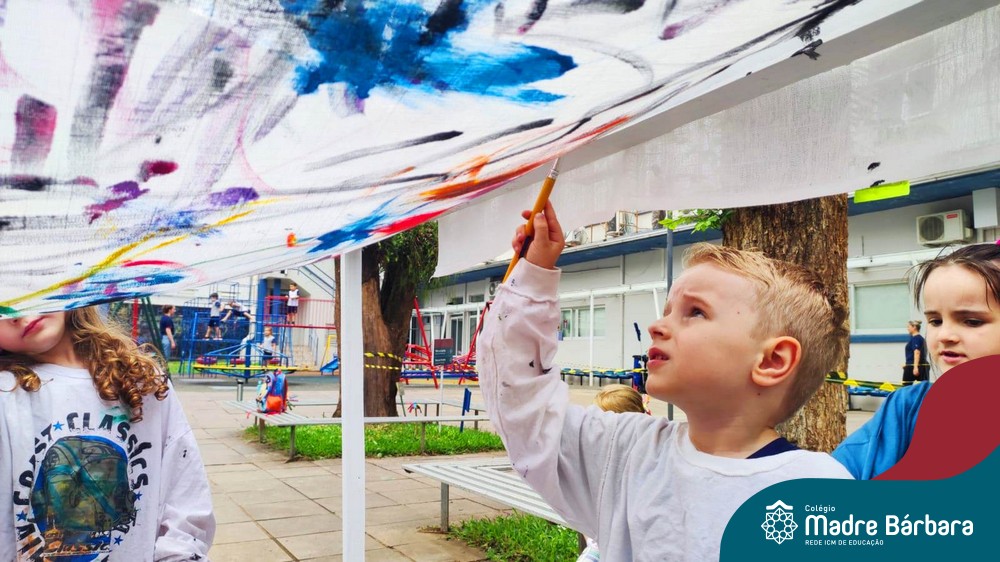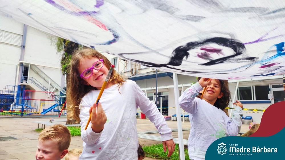 O nível 4A, juntamente com a professora Julia Bresciani e a monitora Aline Diniz estão trabalhando o projeto “Arte por toda parte e de todo o jeito”, um estudo sobre artistas plásticos que, em suas obras, exploram diferentes materiais de diversas formas. Dentre os artistas conhecidos está o pintor italiano Michelangelo. Entre suas principais obras está a pintura do teto da Capela Sistina, no Vaticano e pensando em explorar a pintura de uma nova perspectiva, as crianças foram desafiadas a pintar de baixo para cima, assim como o artista fez em seu ilustre trabalho. A obra foi iniciada na nossa linda Mostra Pedagógica, onde as famílias e as crianças foram convidadas a deixar a sua marca e, nesta semana, a turma finalizou o trabalho, num dia muito gostoso, no pátio da escola. Foi uma diversão total, a vivência foi muito significativa e a turma pode experimentar uma maneira diferente de pintar e se divertir.