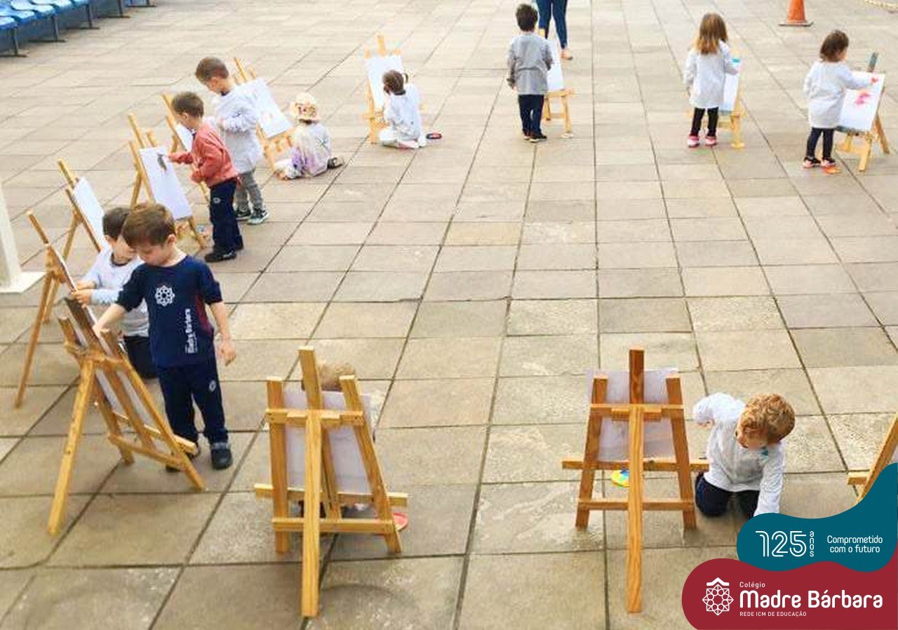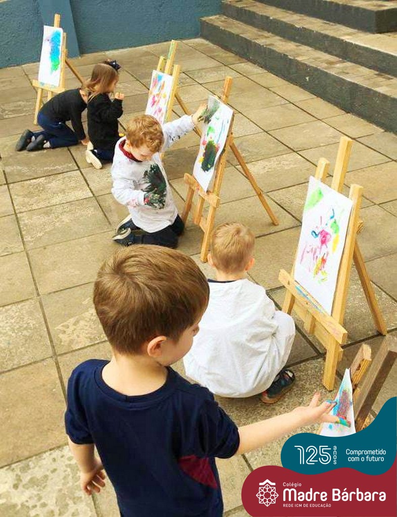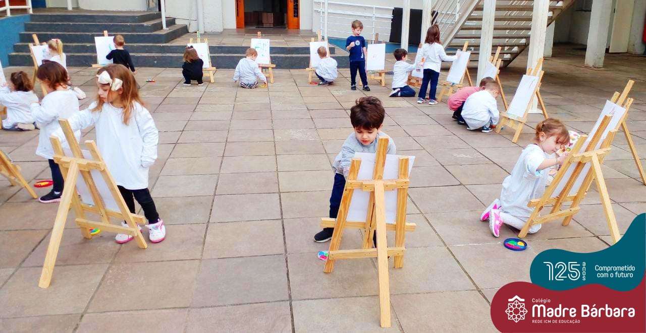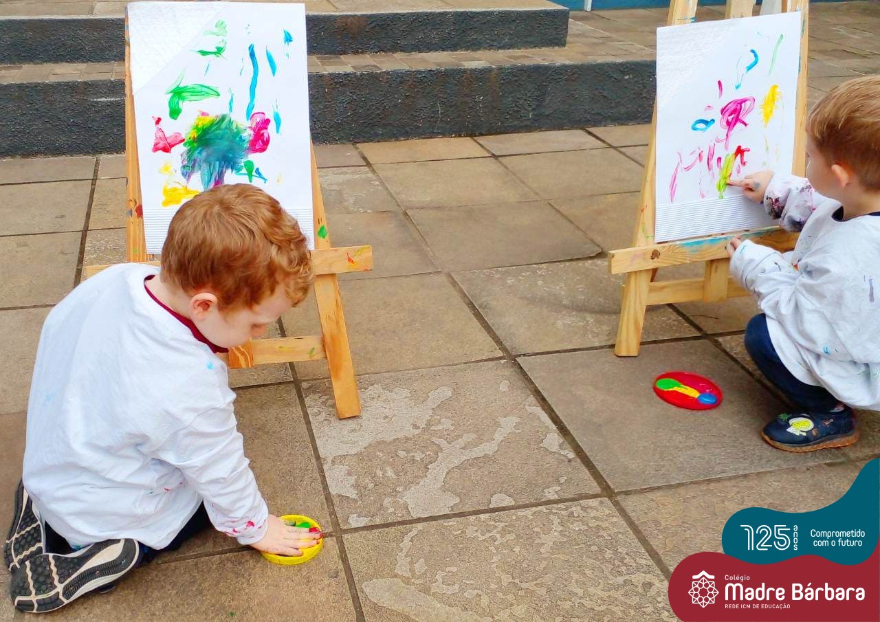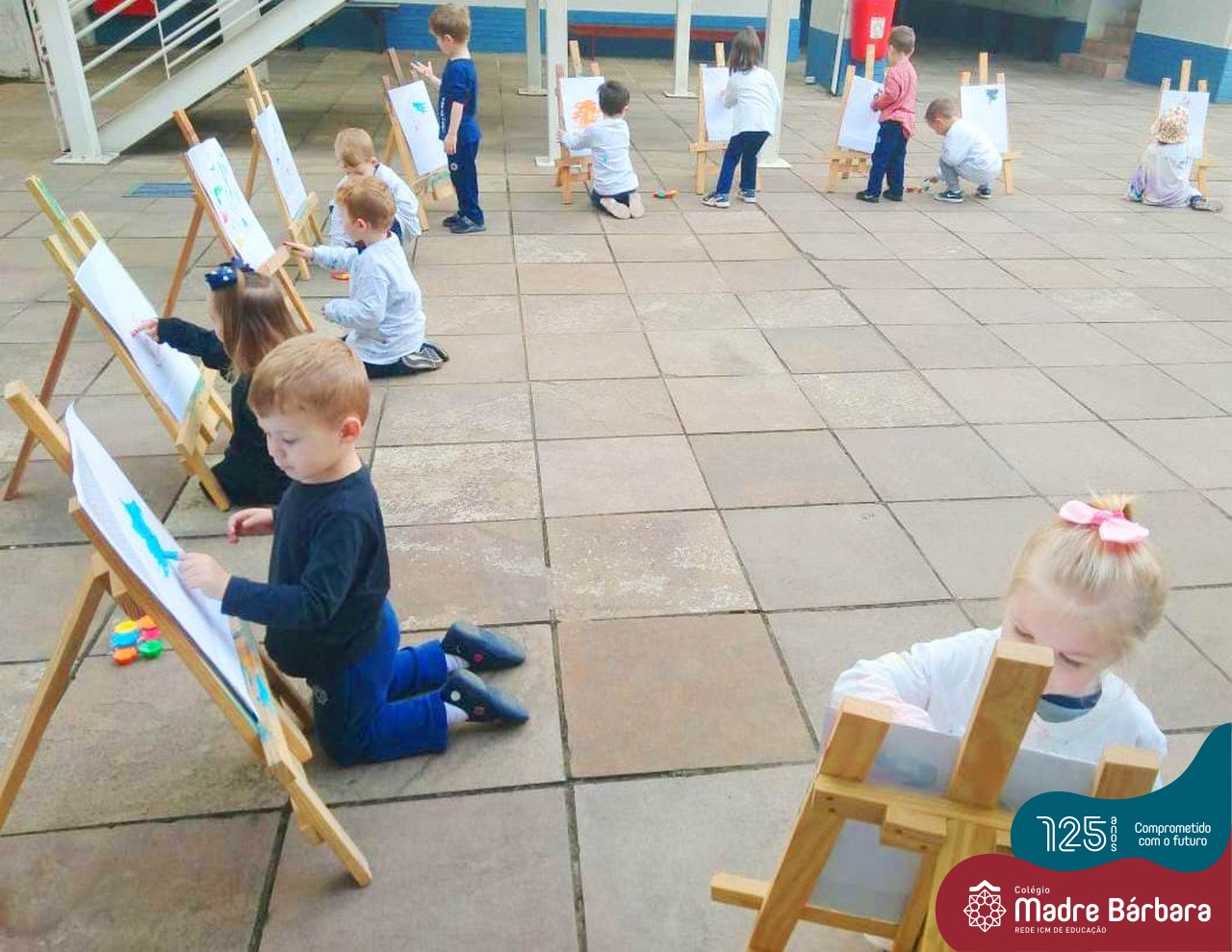 Nesta linda manhã de sol, os níveis 3A e 3B, realizaram um momento de pintura ao ar livre.