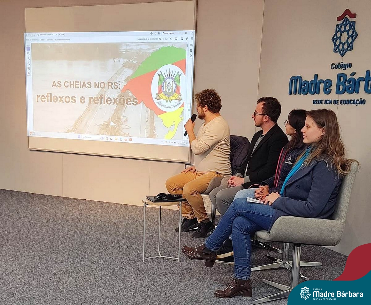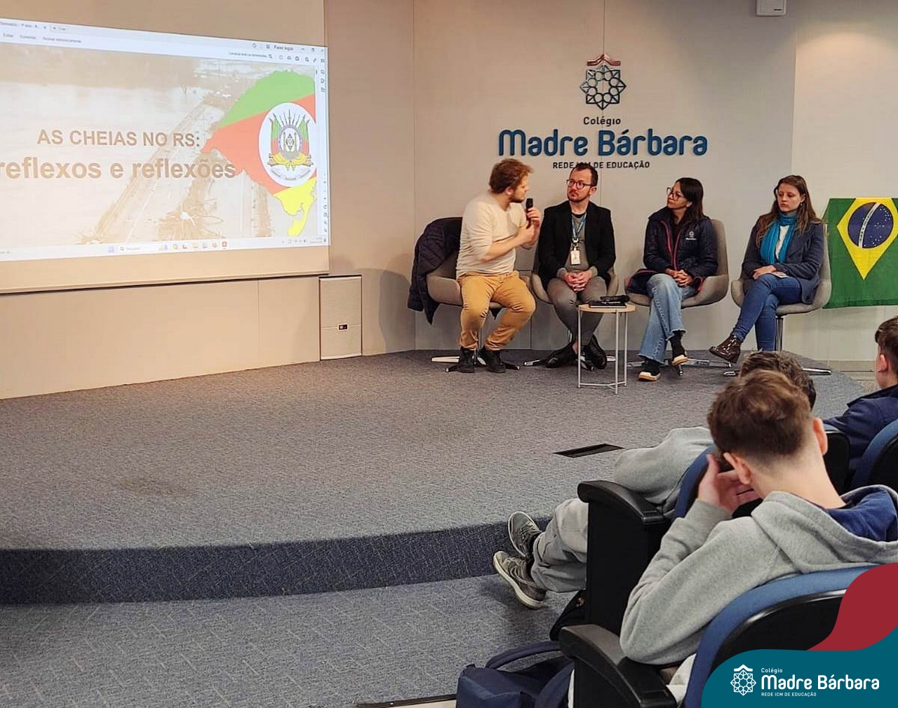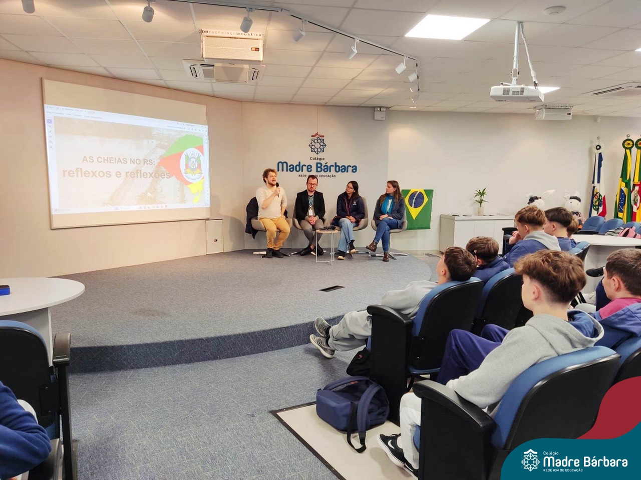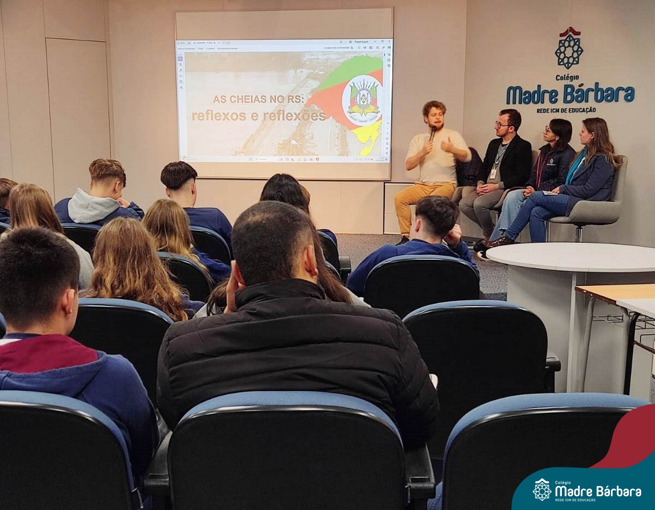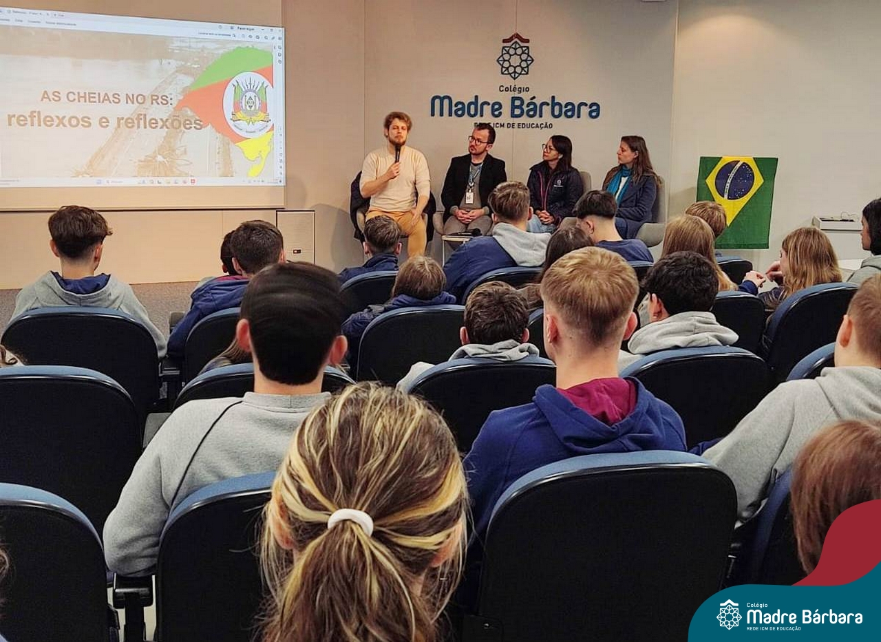 No dia 20 de maio, as turmas de 1°s anos do Ensino Médio tiveram a oportunidade de vivenciar um Painel sobre as inundações do Vale do Taquari/RS, desastre socioambiental ocorrido no final de abril e início de maio em nossa região. Este painel foi organizado pelos professores dos itinerários formativos e disciplinas eletivas, que trouxeram informações científicas, indagações e reflexões nas áreas das Linguagens, da Matemática, das Ciências da Natureza e das Ciências Humanas. Ao final do Painel, os estudantes foram provocados a debater, organizados em grupos, diferentes questionamentos dentro das Áreas do Conhecimento.