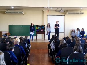 Os alunos do 1º ano do Ensino Médio, orientados pelo professor de geografia Lucas Schneider, construíram maquetes para explicarem, de maneira lúdica, as fases da lua e os eclipses Solar e Lunar. Como as turmas de 5º ano, das professoras Daniela Guizzo e Daniela Secco estão estudando o universo, os alunos foram convidados a entender esses fenômenos de maneira lúdica, a partir da explicação feita pelos alunos “maiores”. Foi um momento de muita aprendizagem e interação, por parte dos grandes e dos pequenos, o que certamente proporcionou aprendizagens significativas para todos os envolvidos.