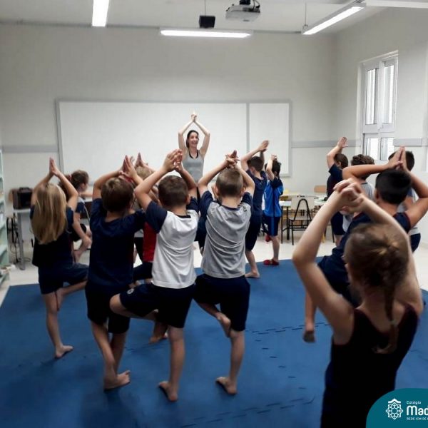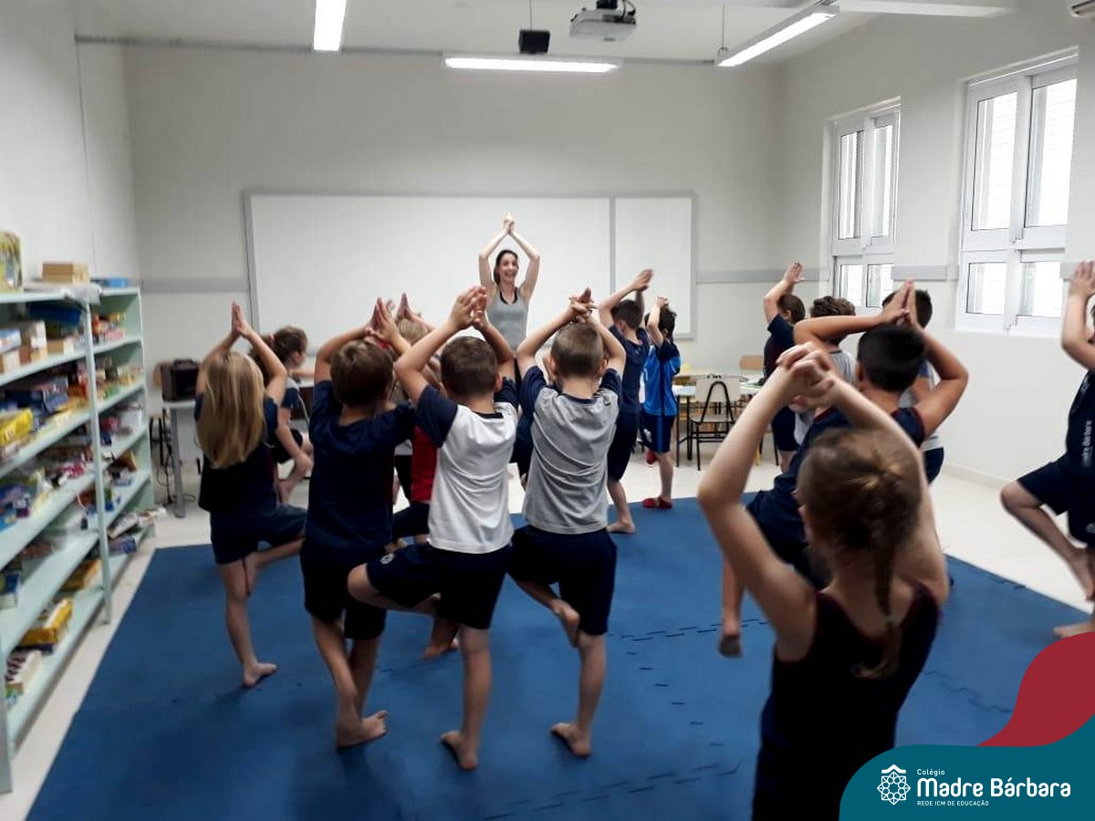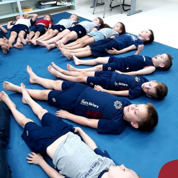 Na última semana de aula a Turma 13, dos Anos Iniciais do Colégio Madre Bárbara, teve uma aula de Ioga para crianças. Foi um momento muito especial e cheio de desafios para conhecerem melhor o corpo, a maneira correta da respiração, de forma divertida e lúdica.