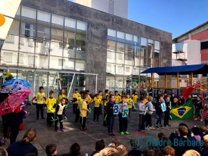 Na quinta-feira (06) as turmas da Educação Infantil se reuniram no pátio da escola para uma aula de música coletiva, encerrando as programações da Semana da Pátria.