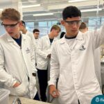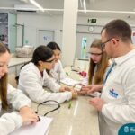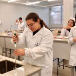 Na última semana, os alunos do 1º ano do Ensino Médio participaram de uma experiência interdisciplinar incrível no Laboratório de Ciências da Natureza! Juntos, os professores Silvana Emer (Matemática) e Aliar Jung (Química) conduziram uma aula prática sobre processo de diluição do HCl com mensuração do pH. Dessa forma, os estudantes identificaram o fator multiplicativo na diluição do HCl, sua relação com as escalas de pH e construíram o modelo matemático a partir dos dados representados graficamente onde identificaram um padrão exponencial.
