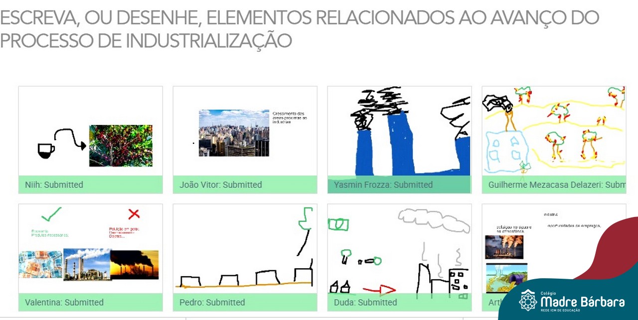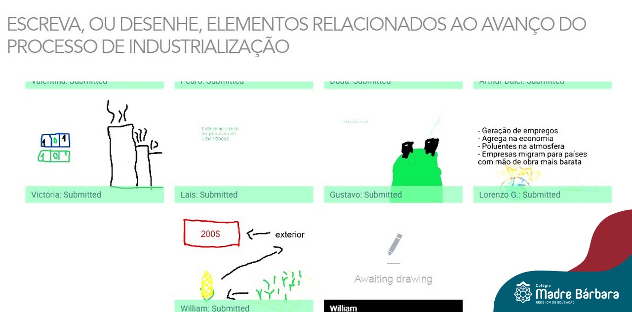 A aula de revisão de geografia das turmas do 7º ano foi movimentada na semana que passou. Através da Plataforma Nearpod os alunos puderam participar e contribuir ativamente nos estudos que eles mesmos listaram para revisão. A Plataforma possibilita a criação de apresentações interativas com conteúdos em formato de texto, vídeo, áudio, arquivos PDF, imagens 3D, incluir Páginas da Web e incluir atividades em forma de Questões Abertas, Questões de Múltipla Escolha, Quizzes, completar frases, Teste de memória , entre outras.