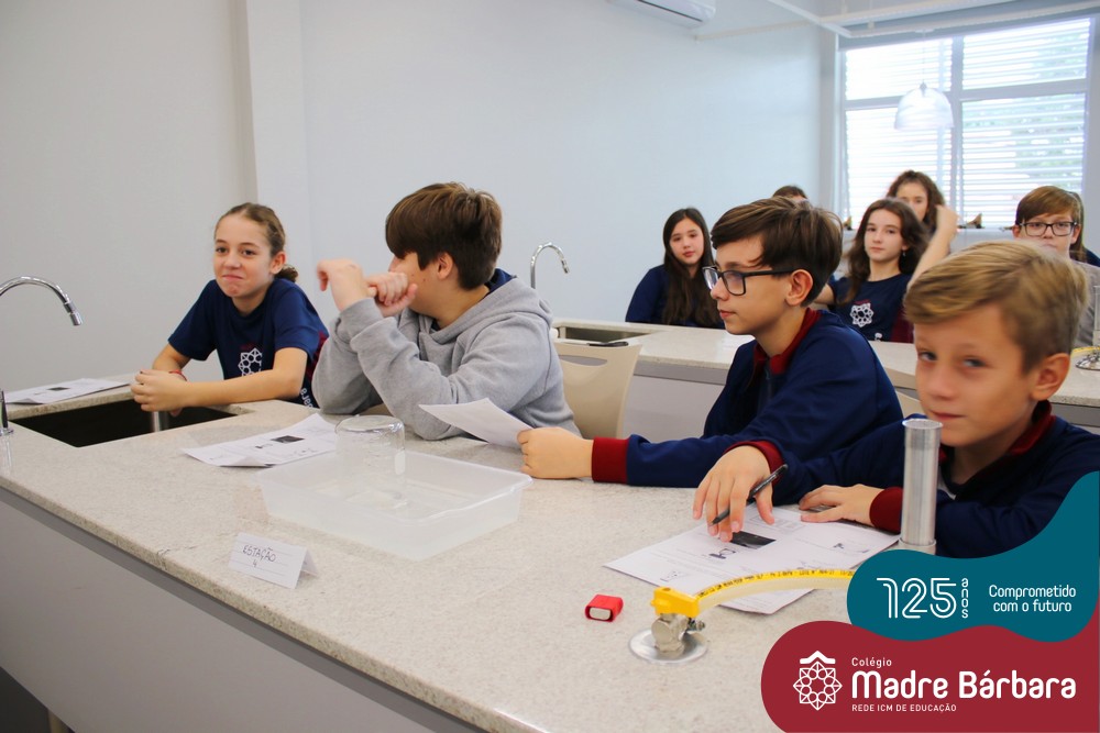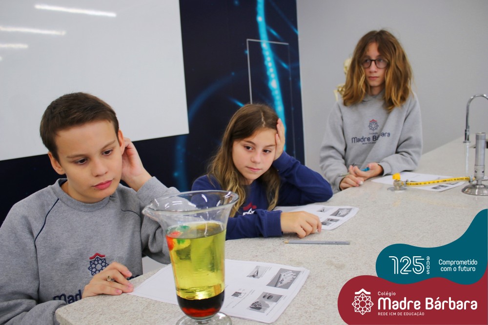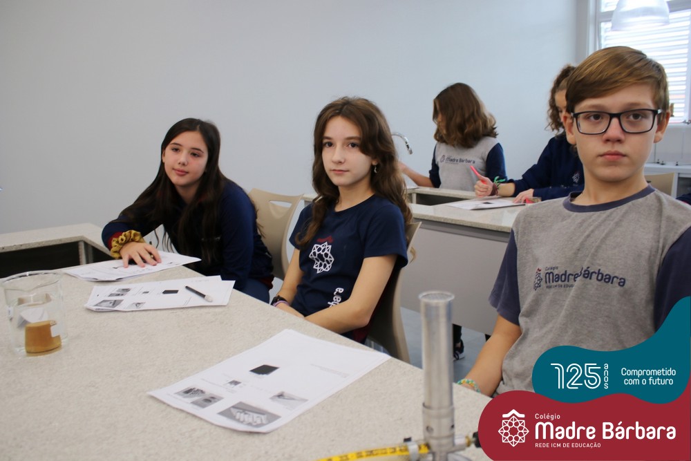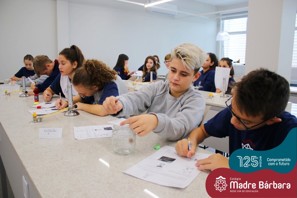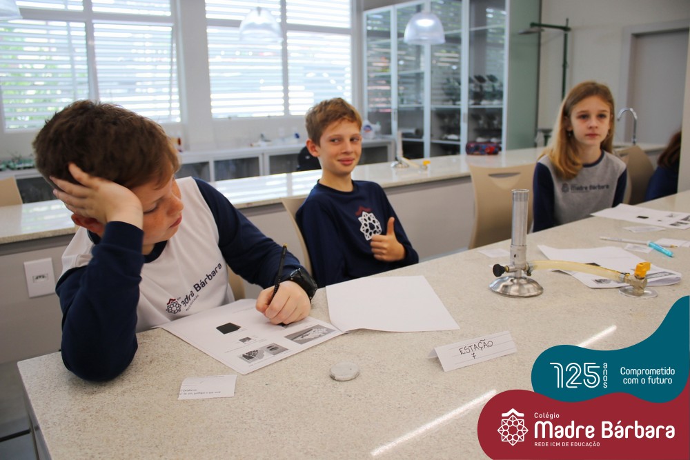 As turmas dos 6ºs anos do Ensino Fundamental – Anos Finais realizaram uma Aula Prática de Ciências sobre as Propriedades da Matéria baseada em “Estações”, onde em cada uma delas os alunos seguiam etapas descritas, em material entregue antecipadamente, faziam experiências e relatavam o tipo de propriedade. Ao todo, foram 10 estações e a 11º era um Desafio, que na prática demonstrava três propriedades em um mesmo experimento.