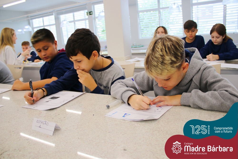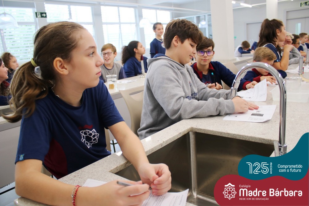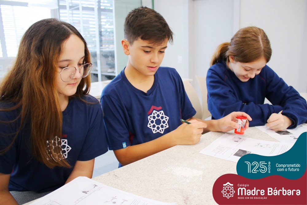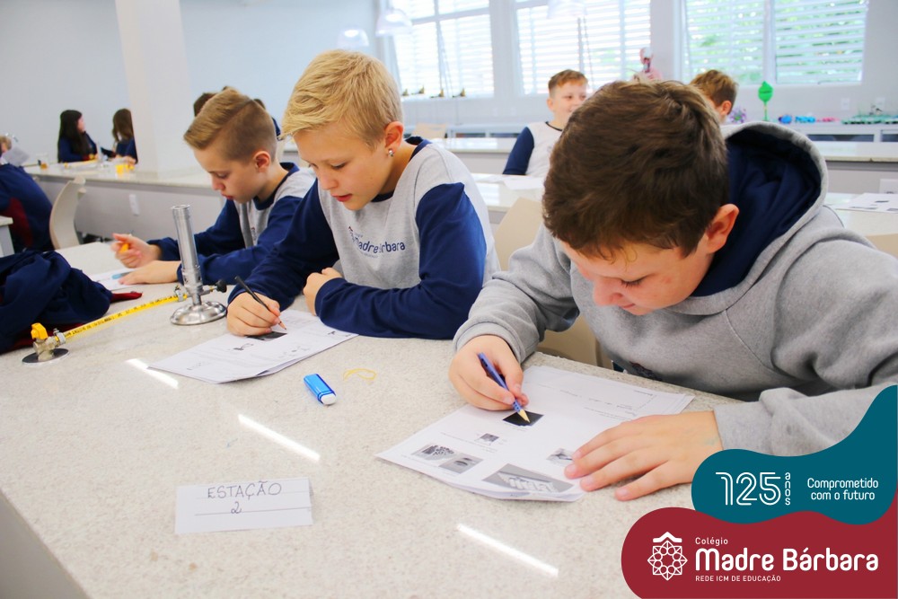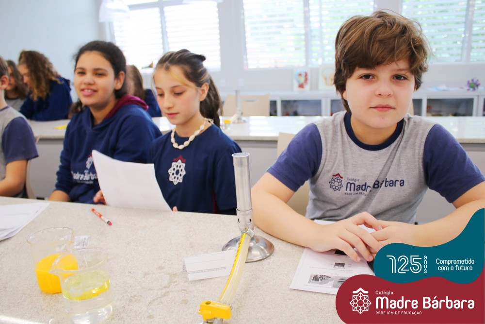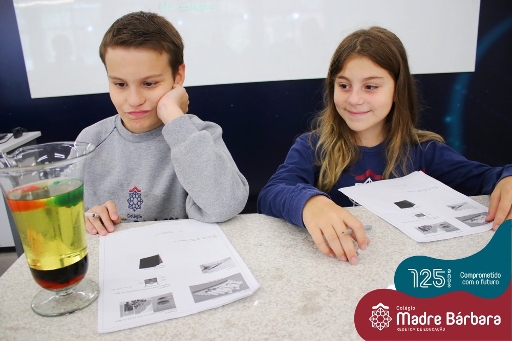 As turmas dos 6ºs anos do Ensino Fundamental – Anos Finais realizaram uma Aula Prática de Ciências sobre as Propriedades da Matéria baseada em “Estações”, onde em cada uma delas os alunos seguiam etapas descritas, em material entregue antecipadamente, faziam experiências e relatavam o tipo de propriedade. Ao todo, foram 10 estações e a 11º era um Desafio, que na prática demonstrava três propriedades em um mesmo experimento.
