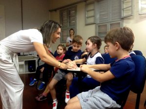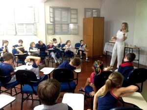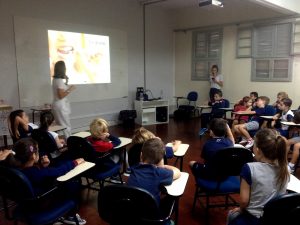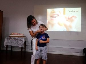 Na manhã de quinta-feira, dia 10 de maio, a turma 11 recebeu a visita da Odontopediatra Cláudia Reali Zarth, também mãe do aluno Antônio, que conversou sobre: “Higiene Bucal”. A palestra concluiu o projeto sobre Higiene, desenvolvido pela turma.